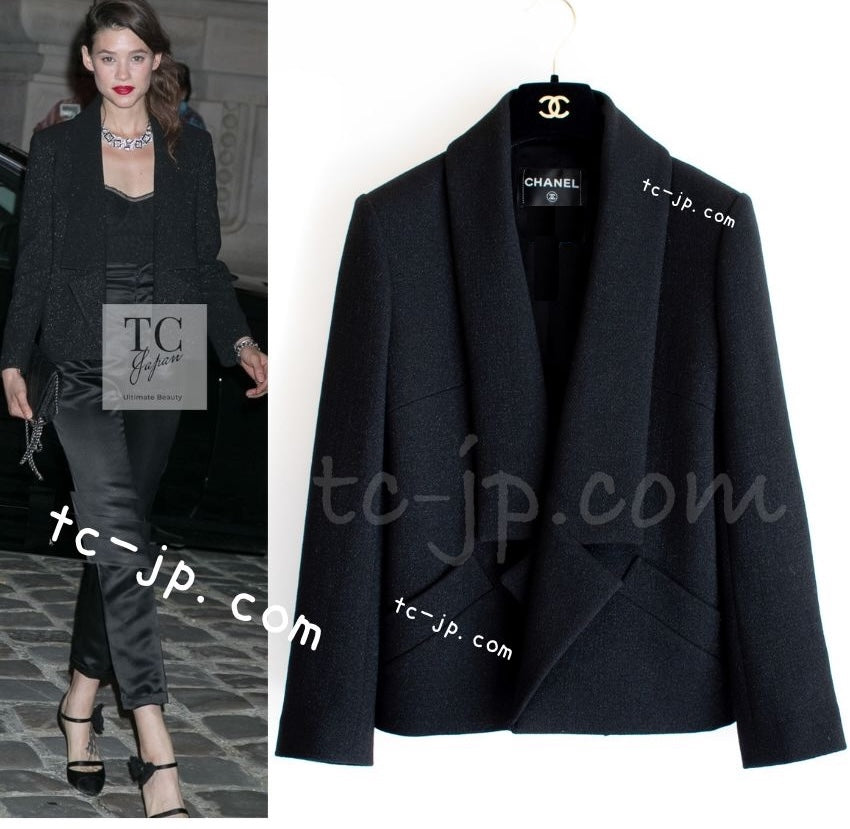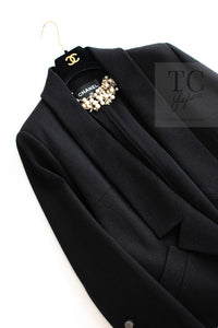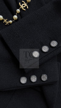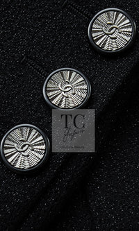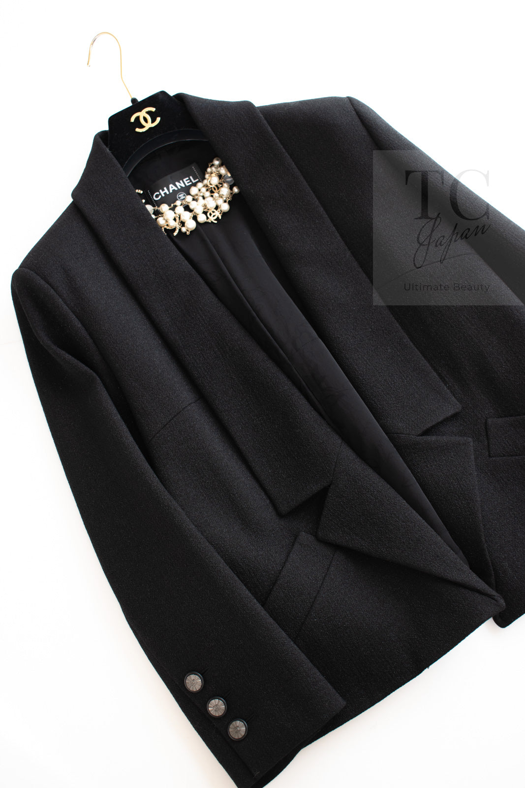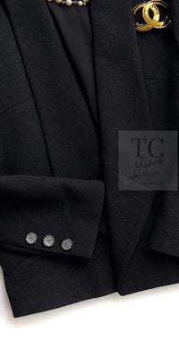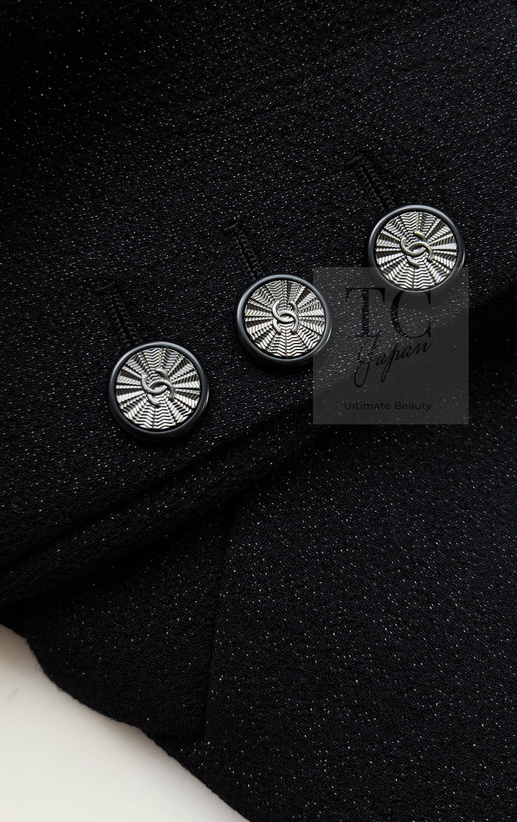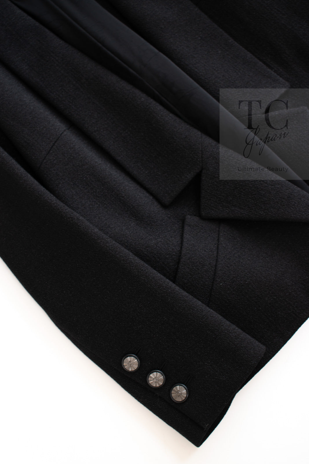CHANEL 14B Black Metallic CC Buttons Wool Tweed Blazer Jacket 42 シャネル ブラック メタリック ココボタン ウール ツイード ブレザー ジャケット 即発