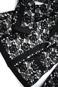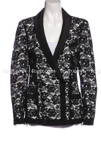 CHANEL 14C Black White Floral Lace Party Double Jacket 34 36 シャネル ブラック ホワイト フローラル レース パーティー ダブル ジャケット 即発