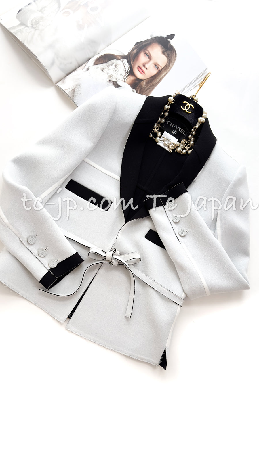 CHANEL 14S Off White Black Jacket 34 36 シャネル オフホワイト ブラック ジャケット 即発