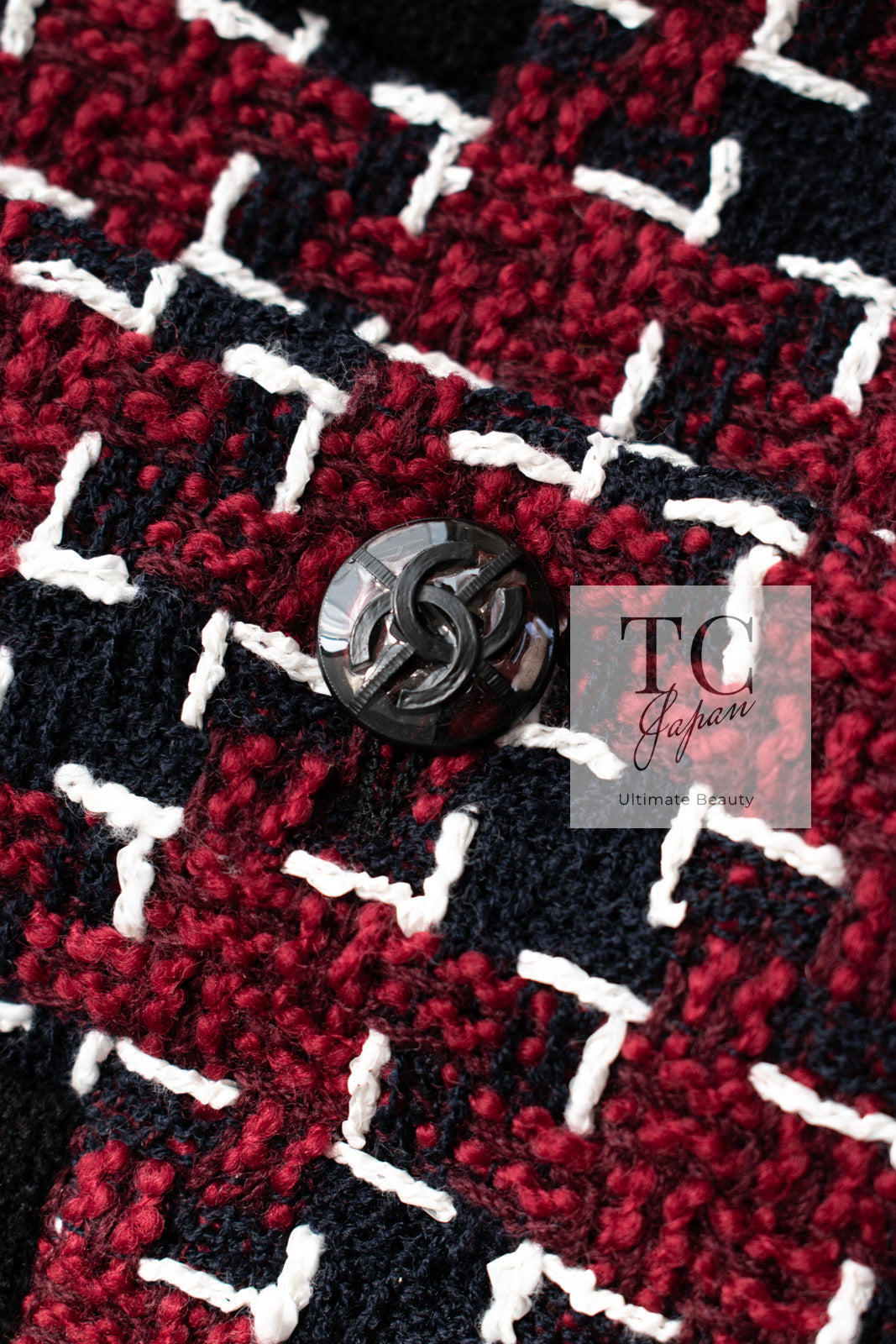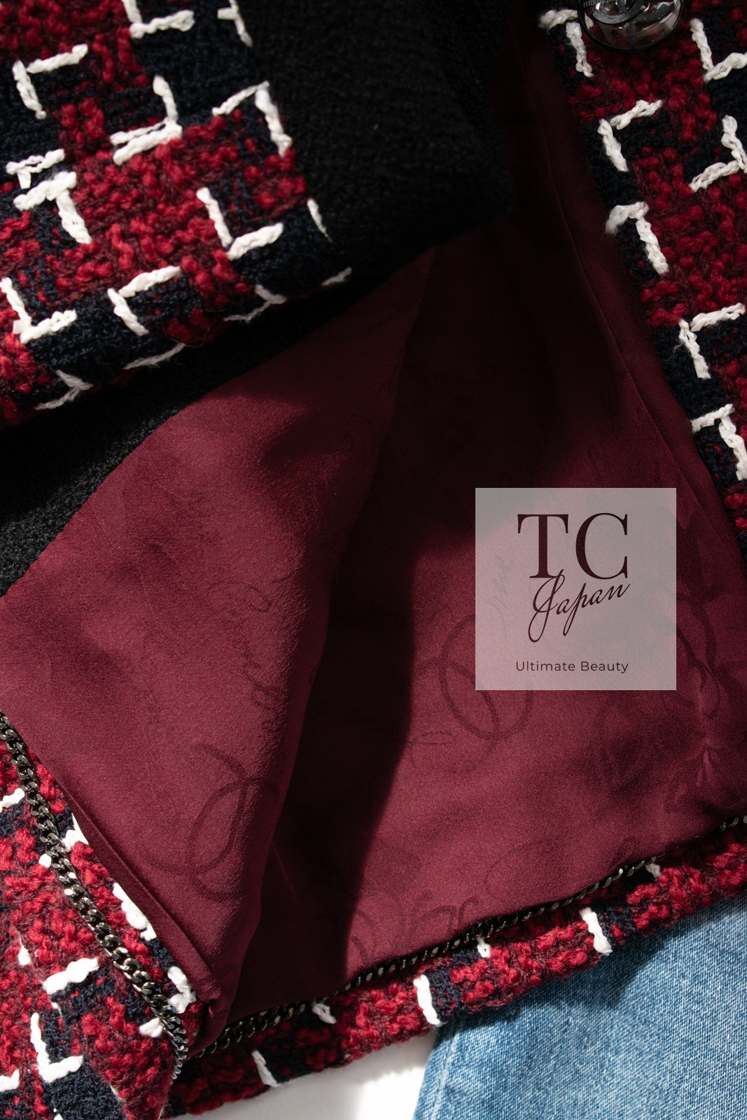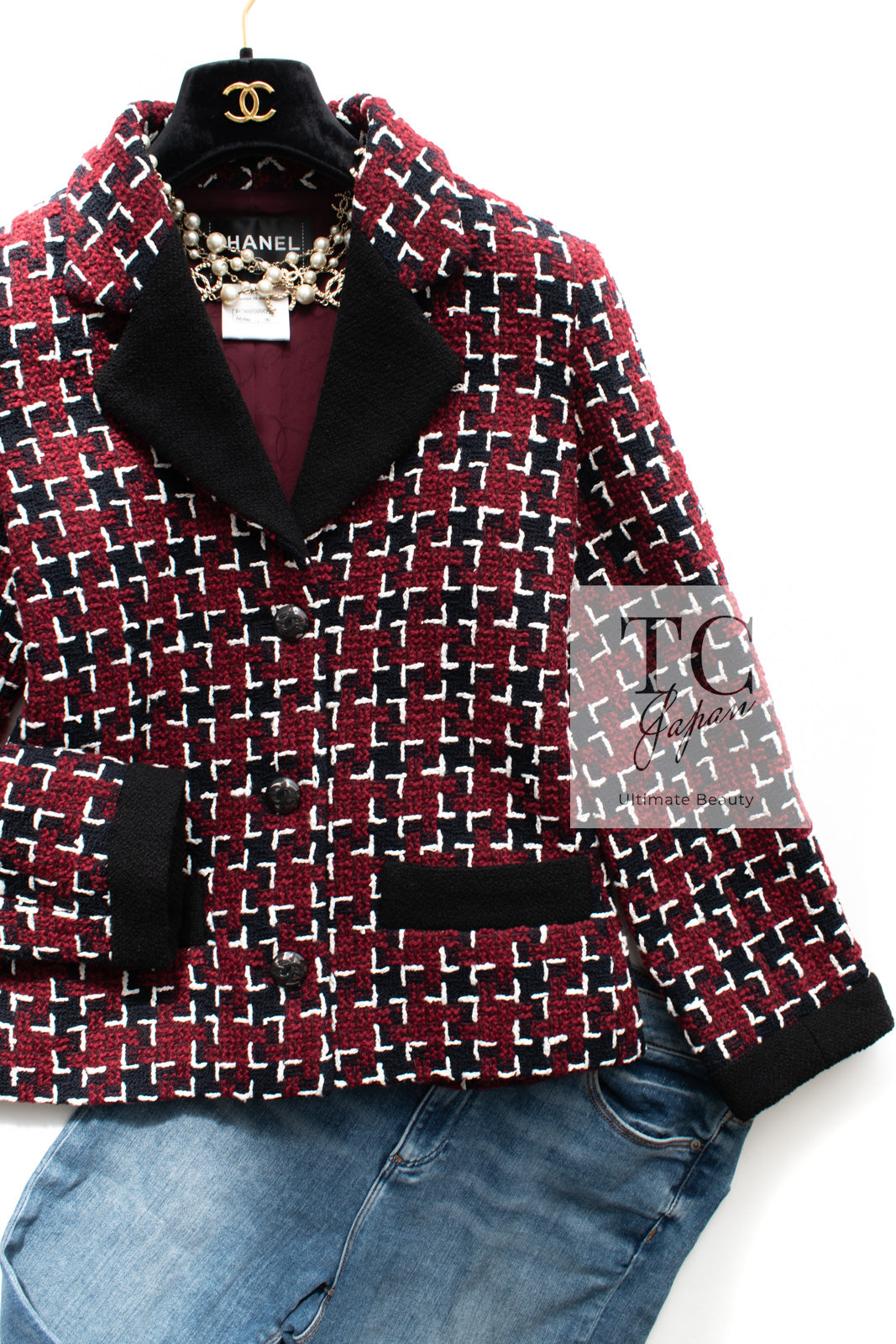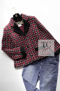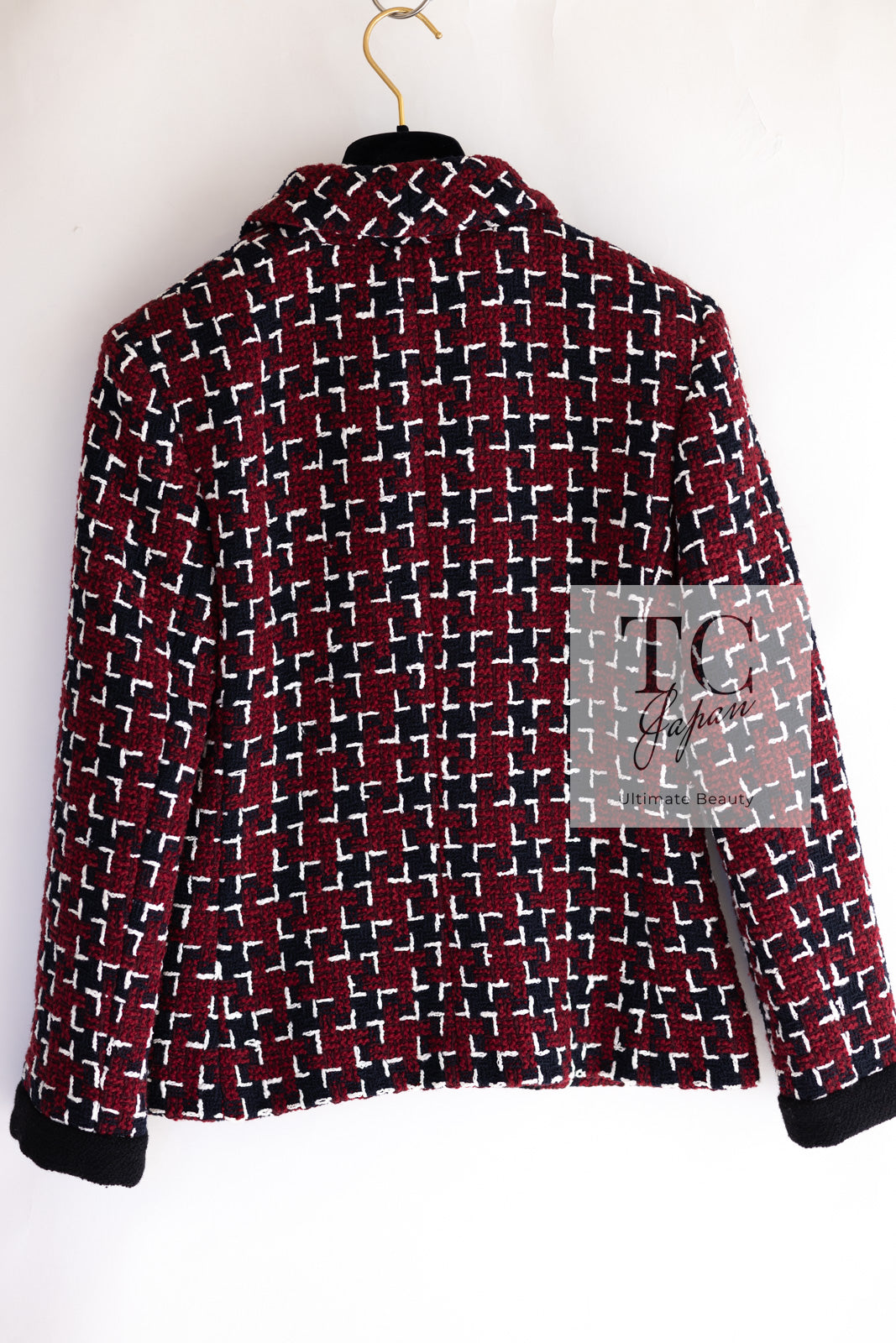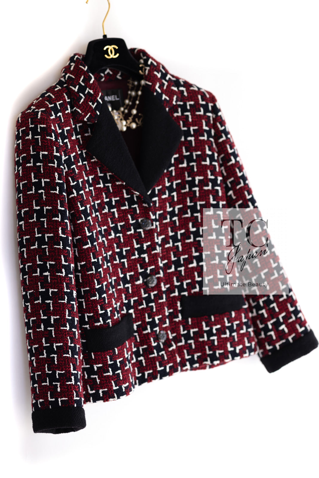 CHANEL 15A Burgundy Red Black Wool Tweed Jacket 36 38 シャネル バーガンディー レッド ブラック ウール ジャケット 即発