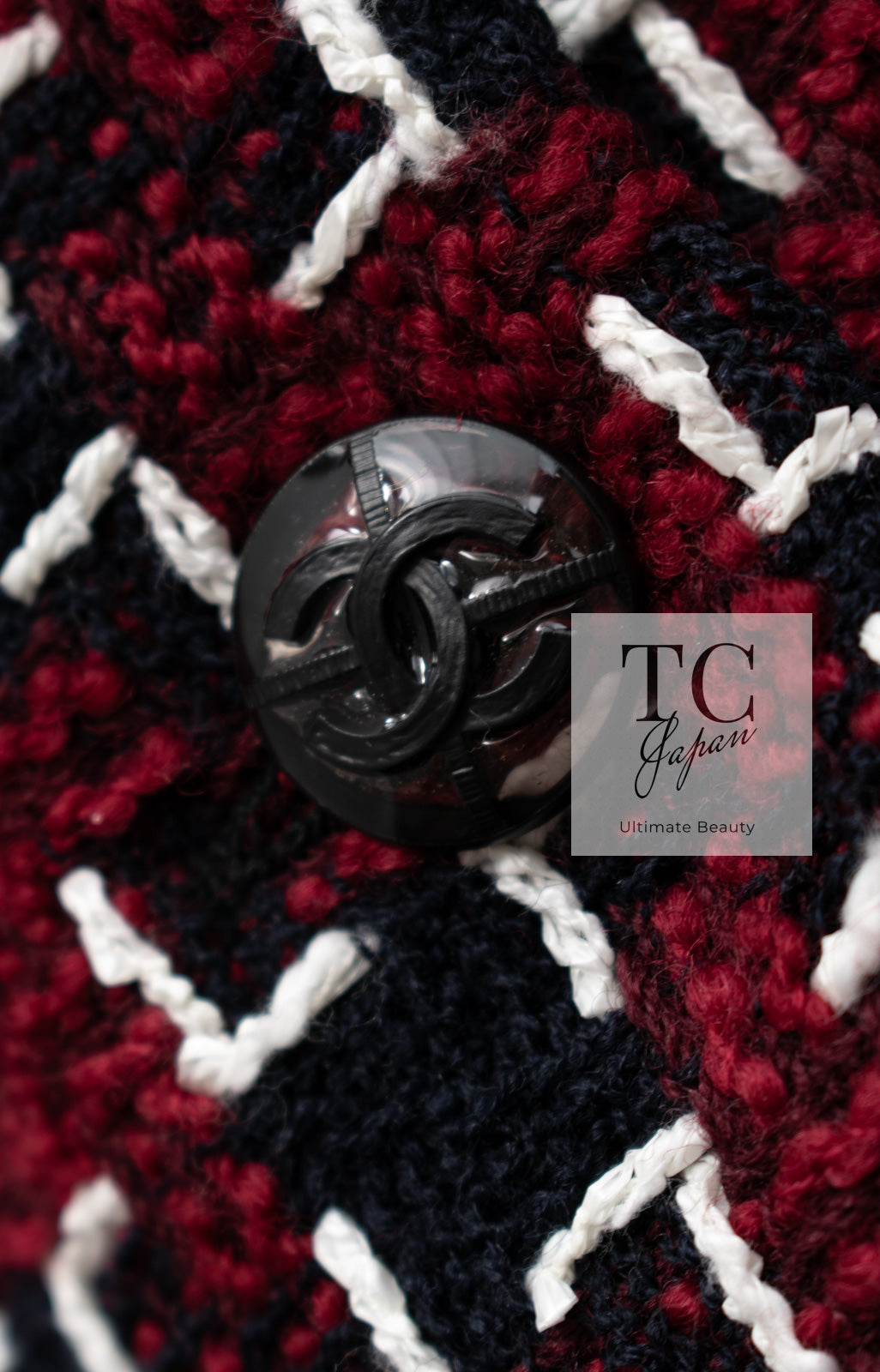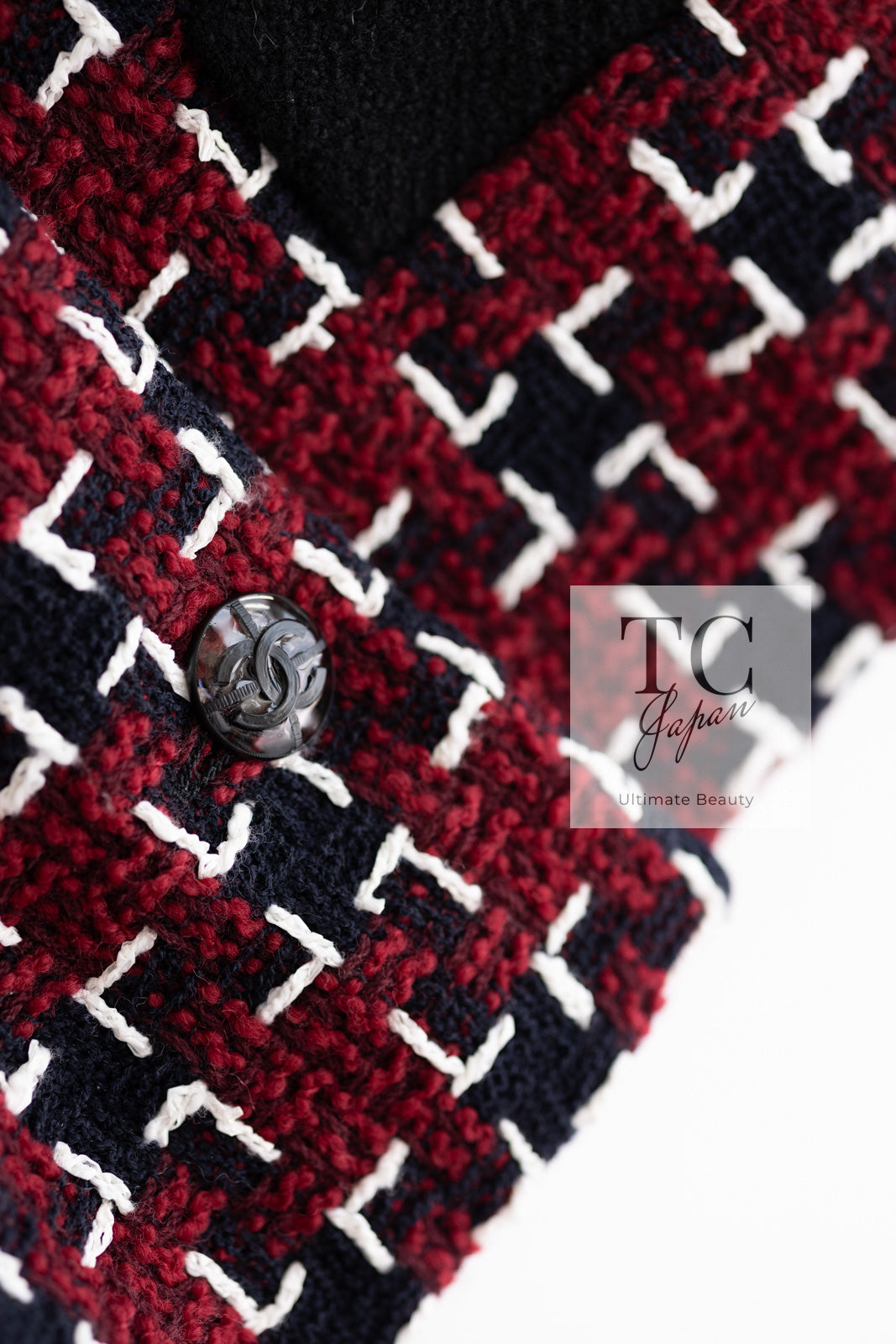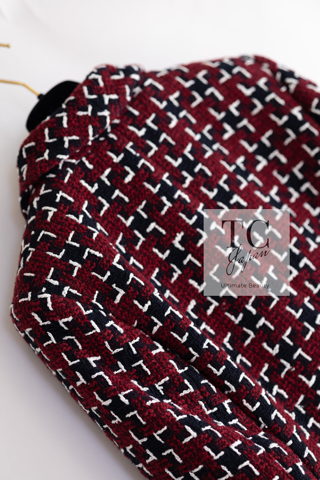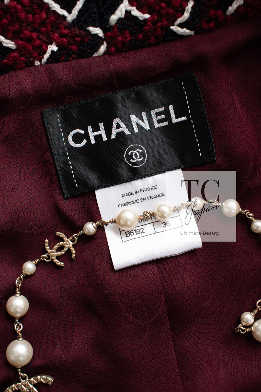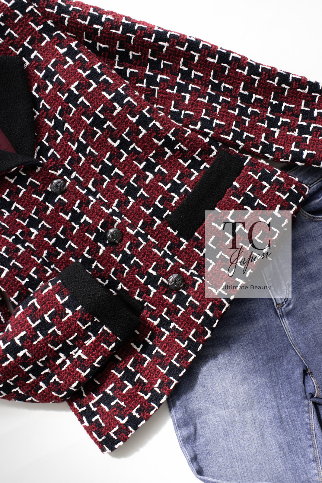 CHANEL 15A Burgundy Red Black Wool Tweed Jacket 36 38 シャネル バーガンディー レッド ブラック ウール ジャケット 即発