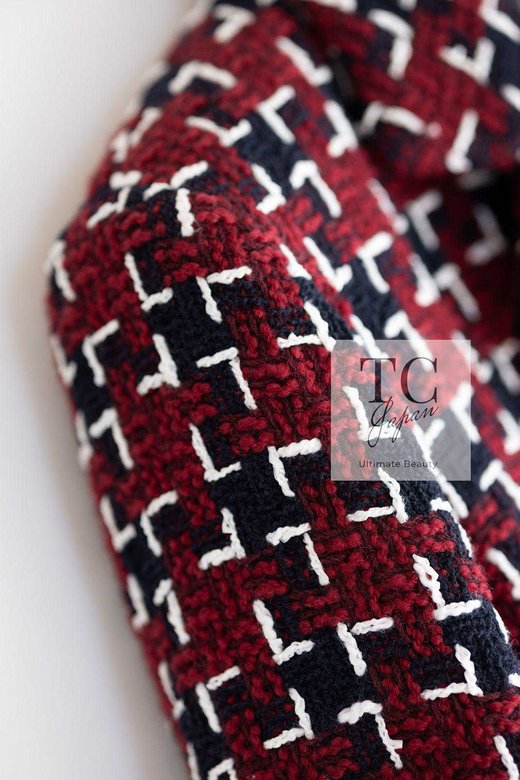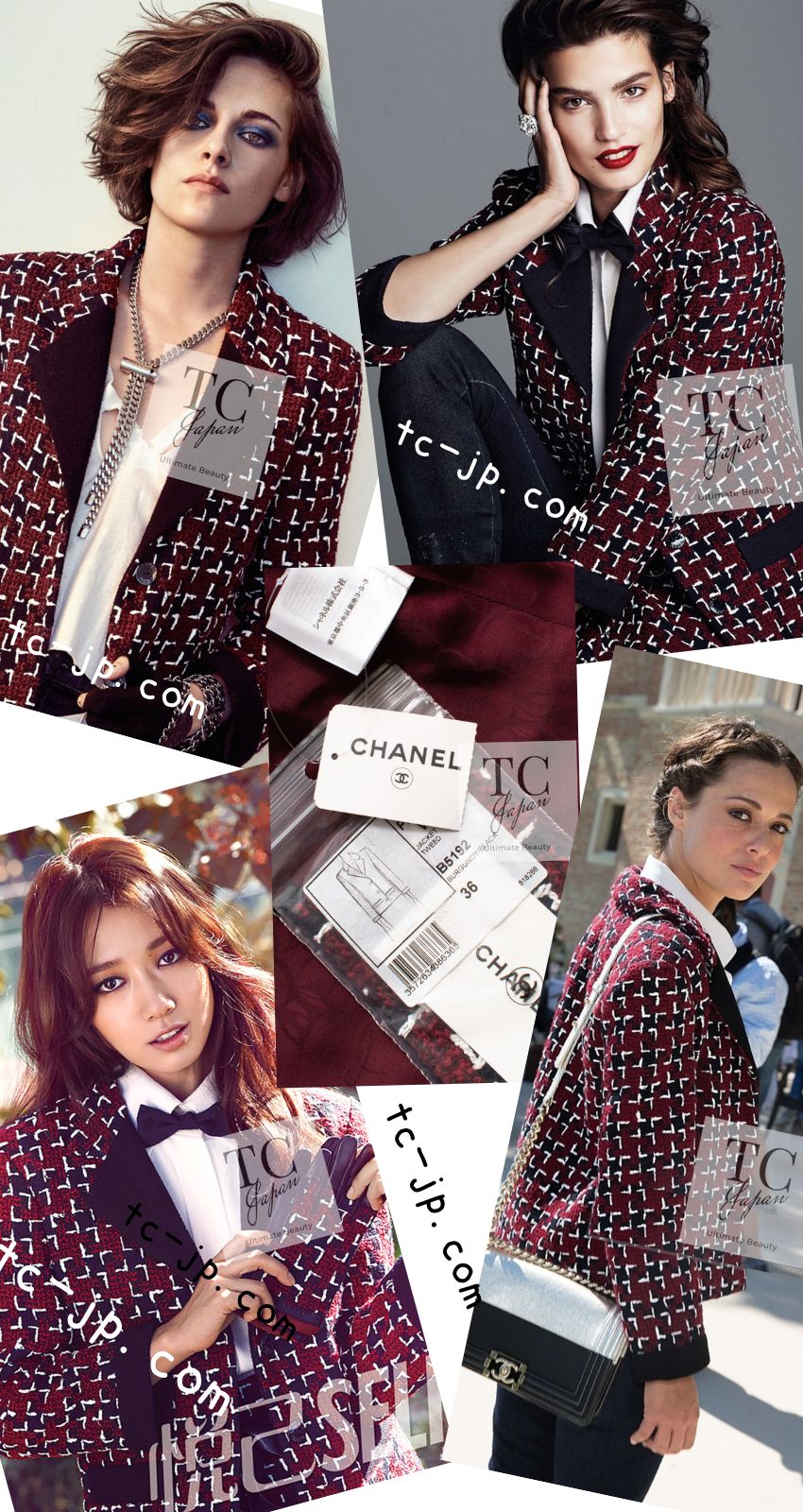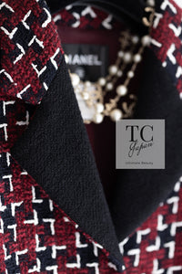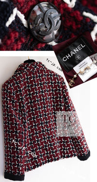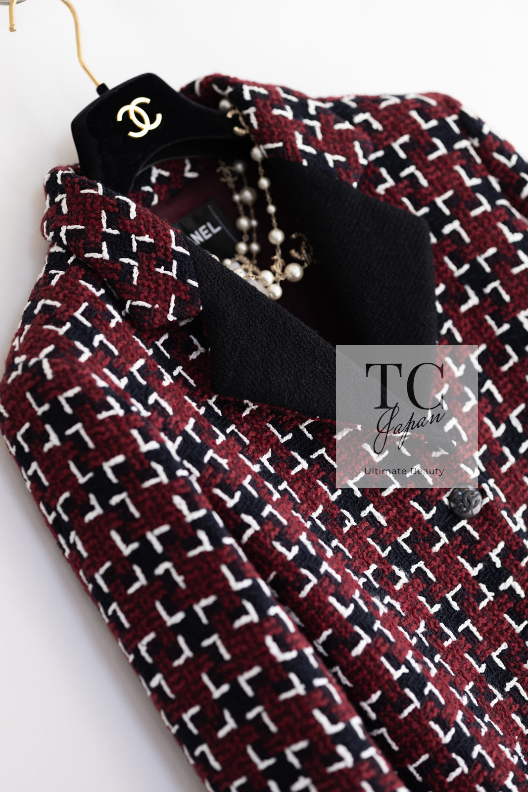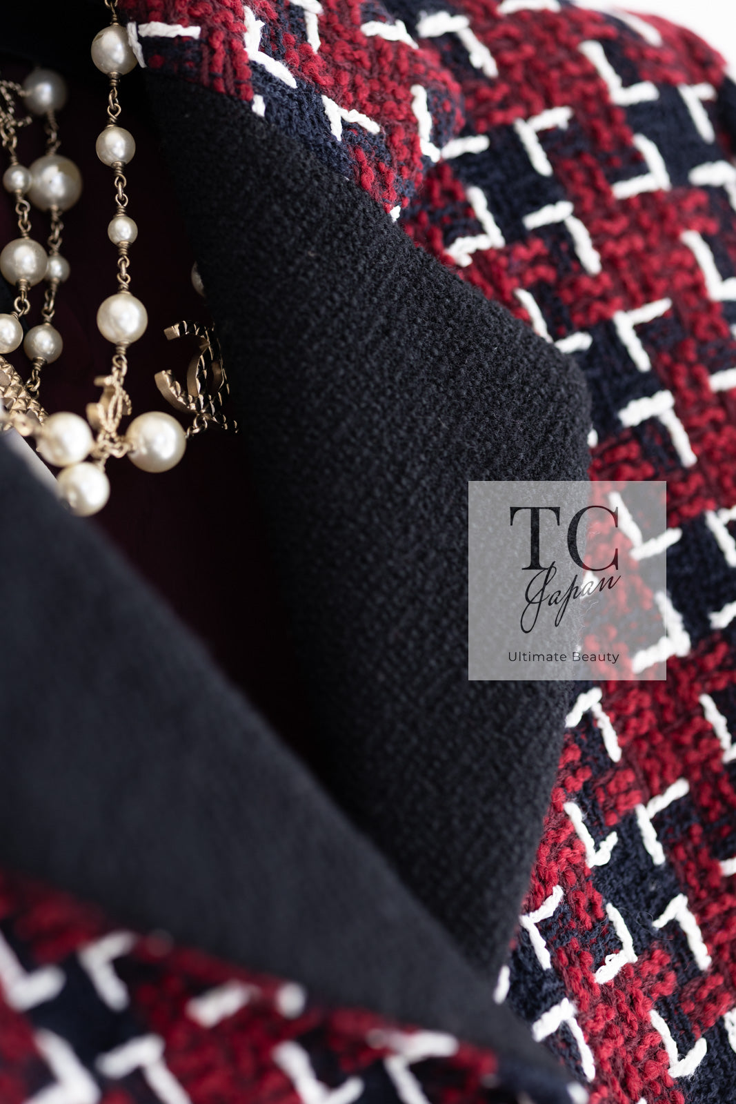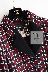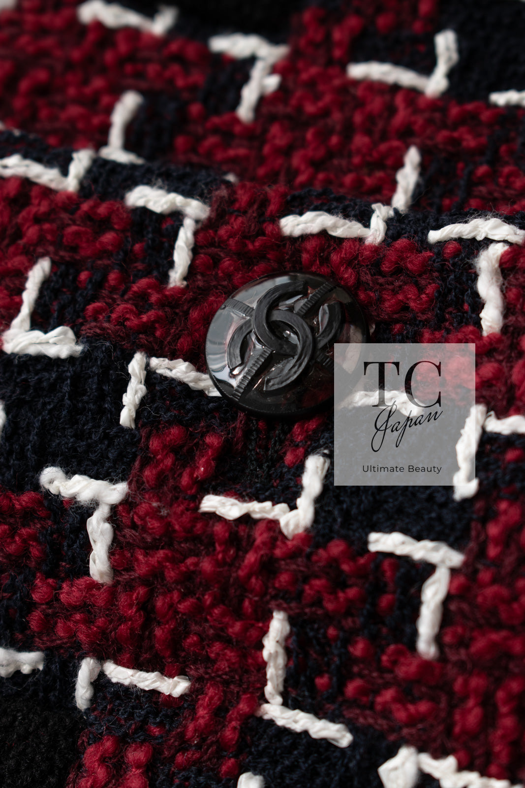 CHANEL 15A Burgundy Red Black Wool Tweed Jacket 36 38 シャネル バーガンディー レッド ブラック ウール ジャケット 即発