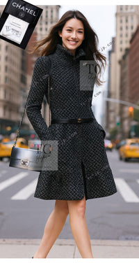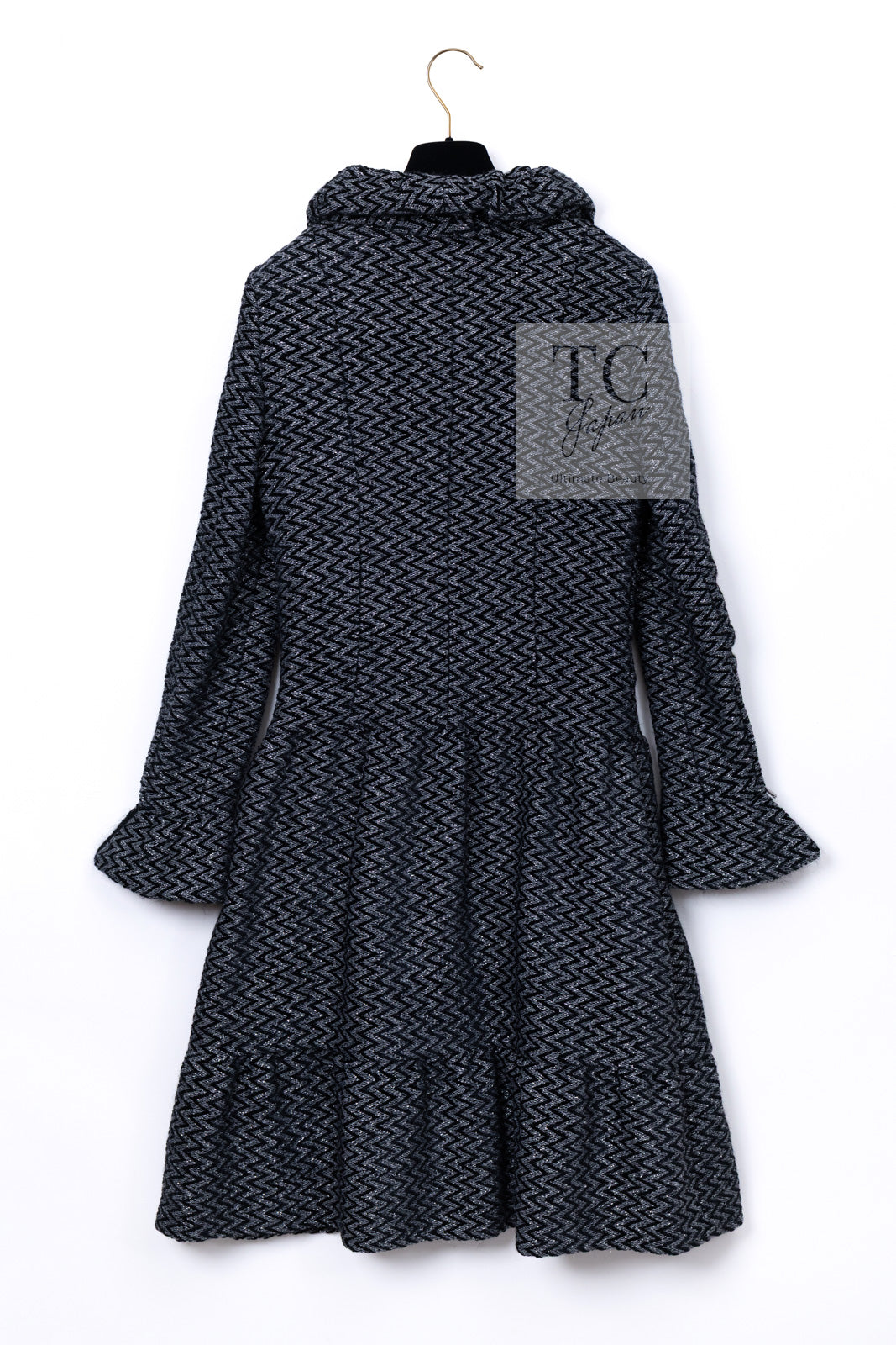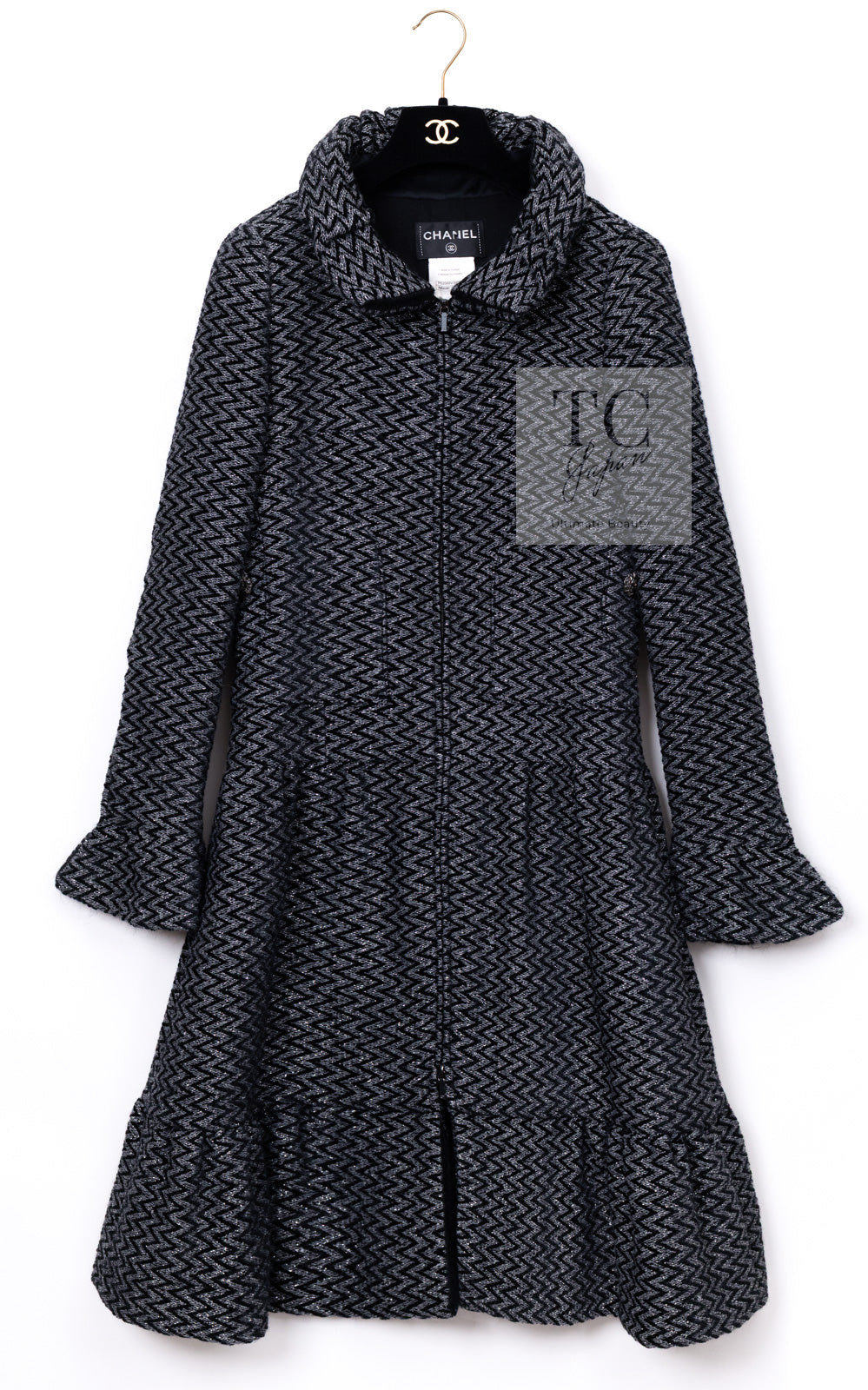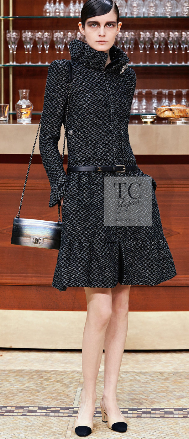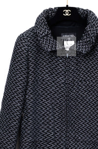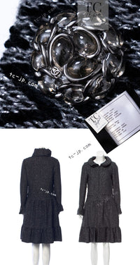 CHANEL 15A Gray Black Metallic Zipper Dress Coat 36 シャネル グレー ブラック メタリック ジッパー ツイード ワンピース コート 即発