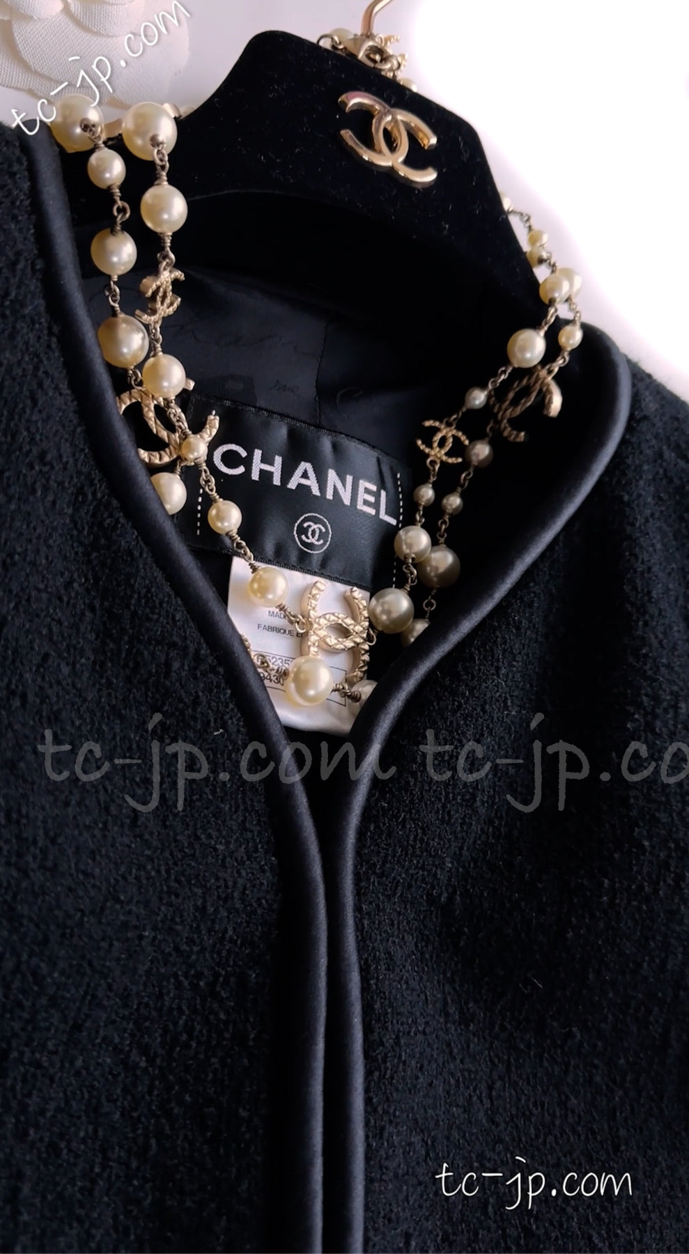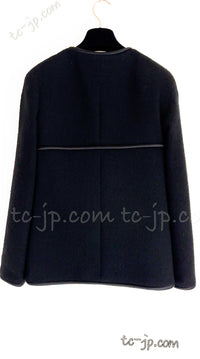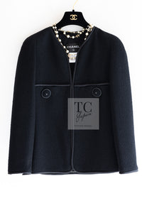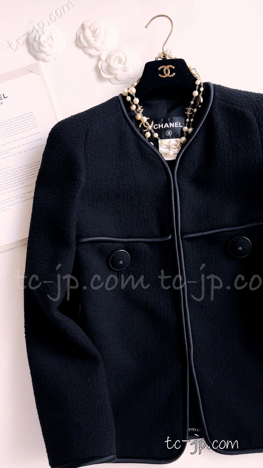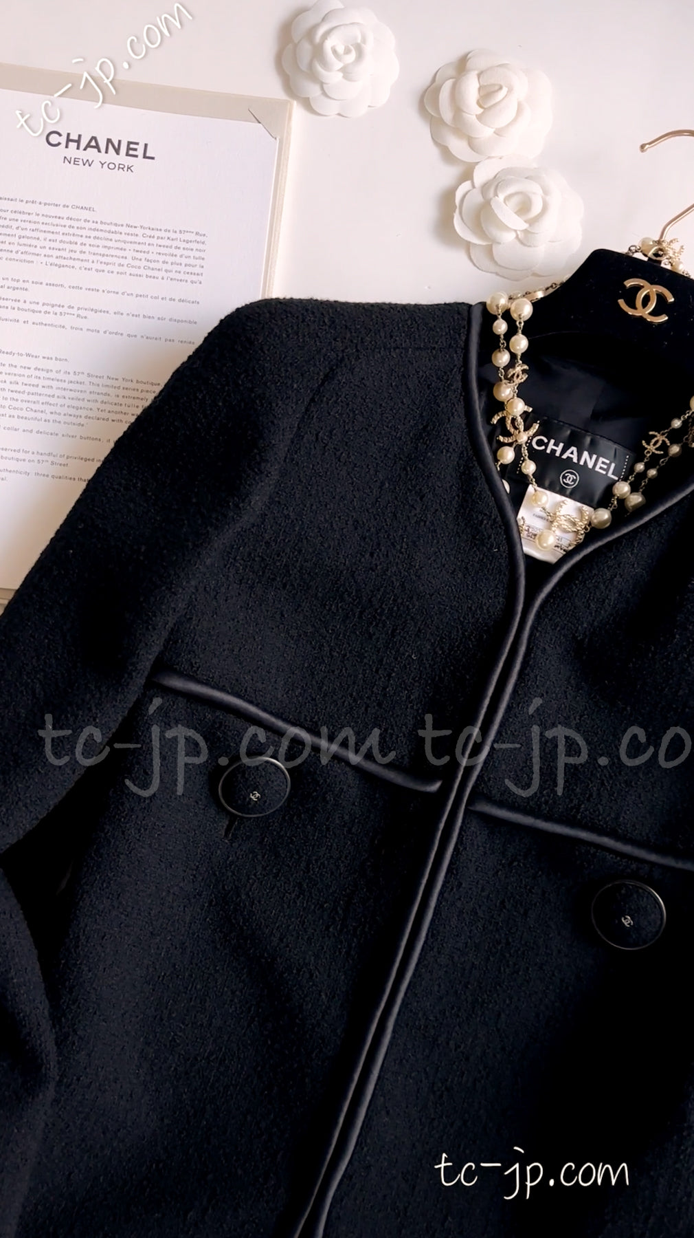 CHANEL 15B Black Wool Piping Collarless Jacket 34 36 38 シャネル ブラック ウール パイピング ノーカラー ジャケット 即発