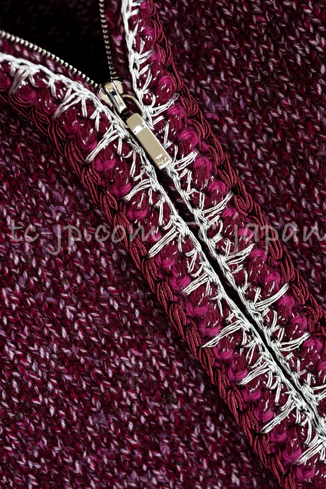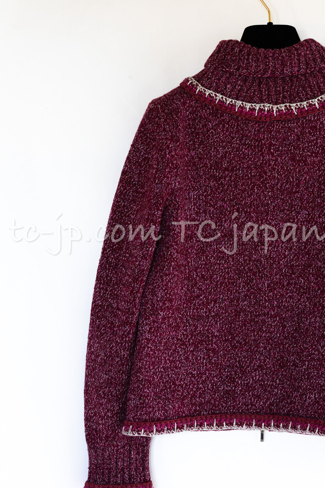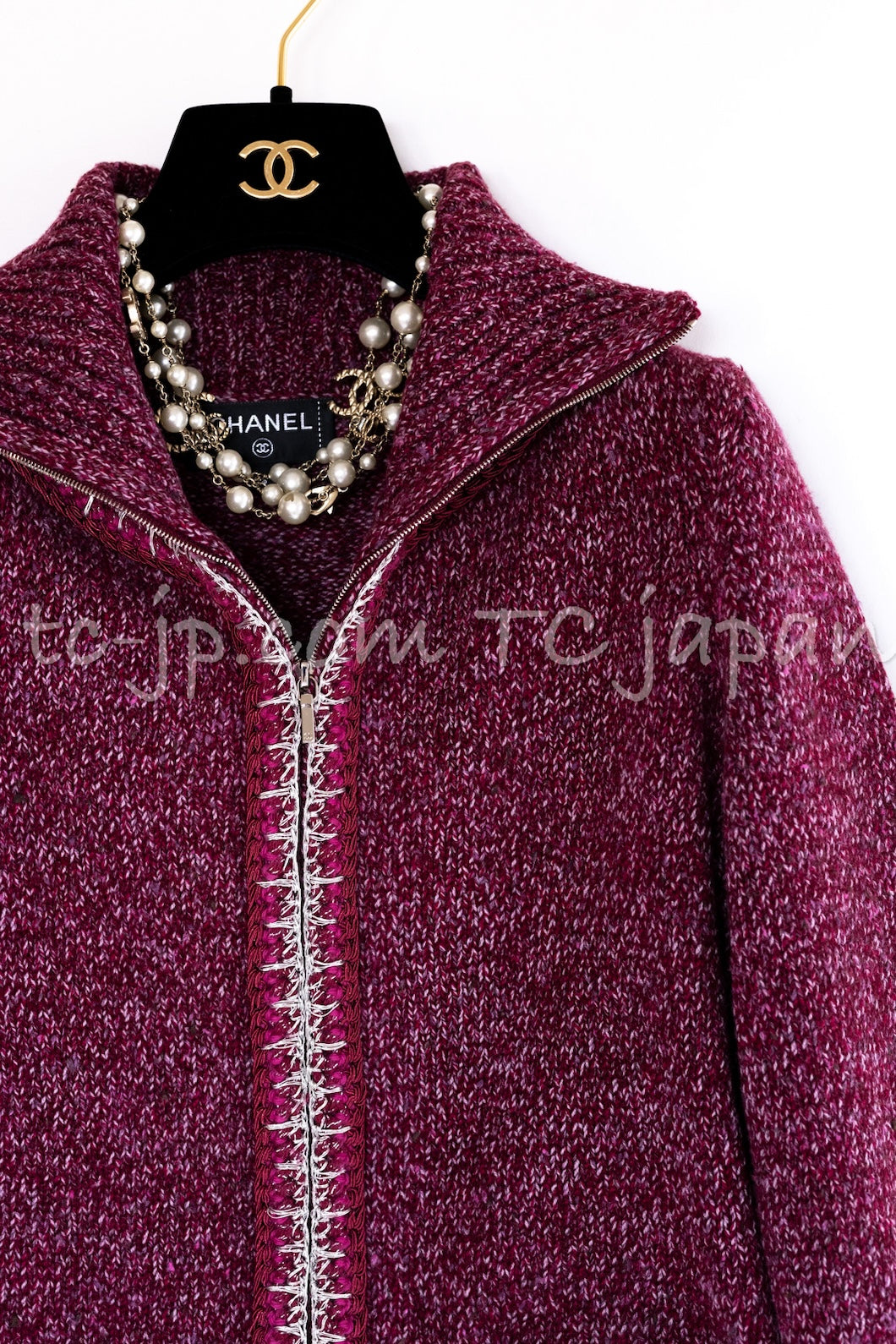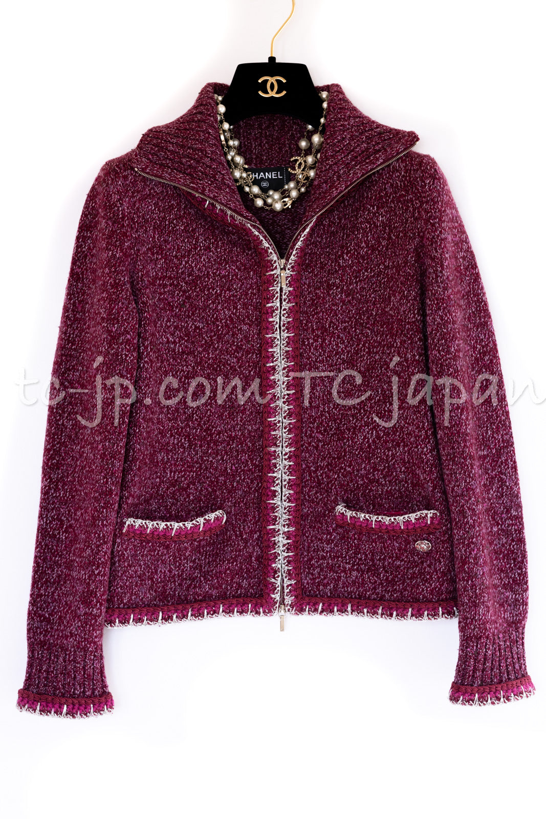 CHANEL 16A Plum Wine Red Cashmere Silk Zipper Knit Cardigan 36 38 シャネル プラム ワイン レッド カシミヤ シルク ジッパー ニット カーディガン 即発