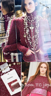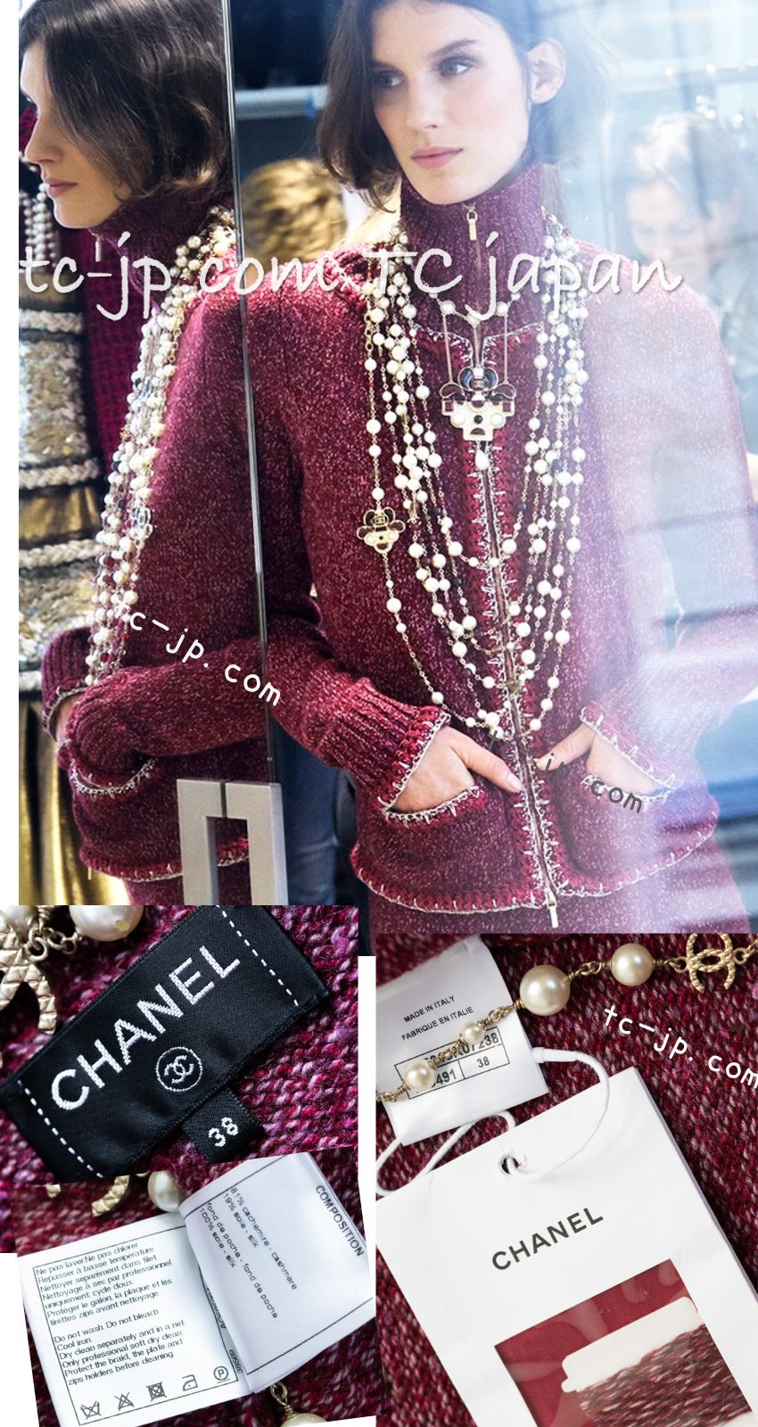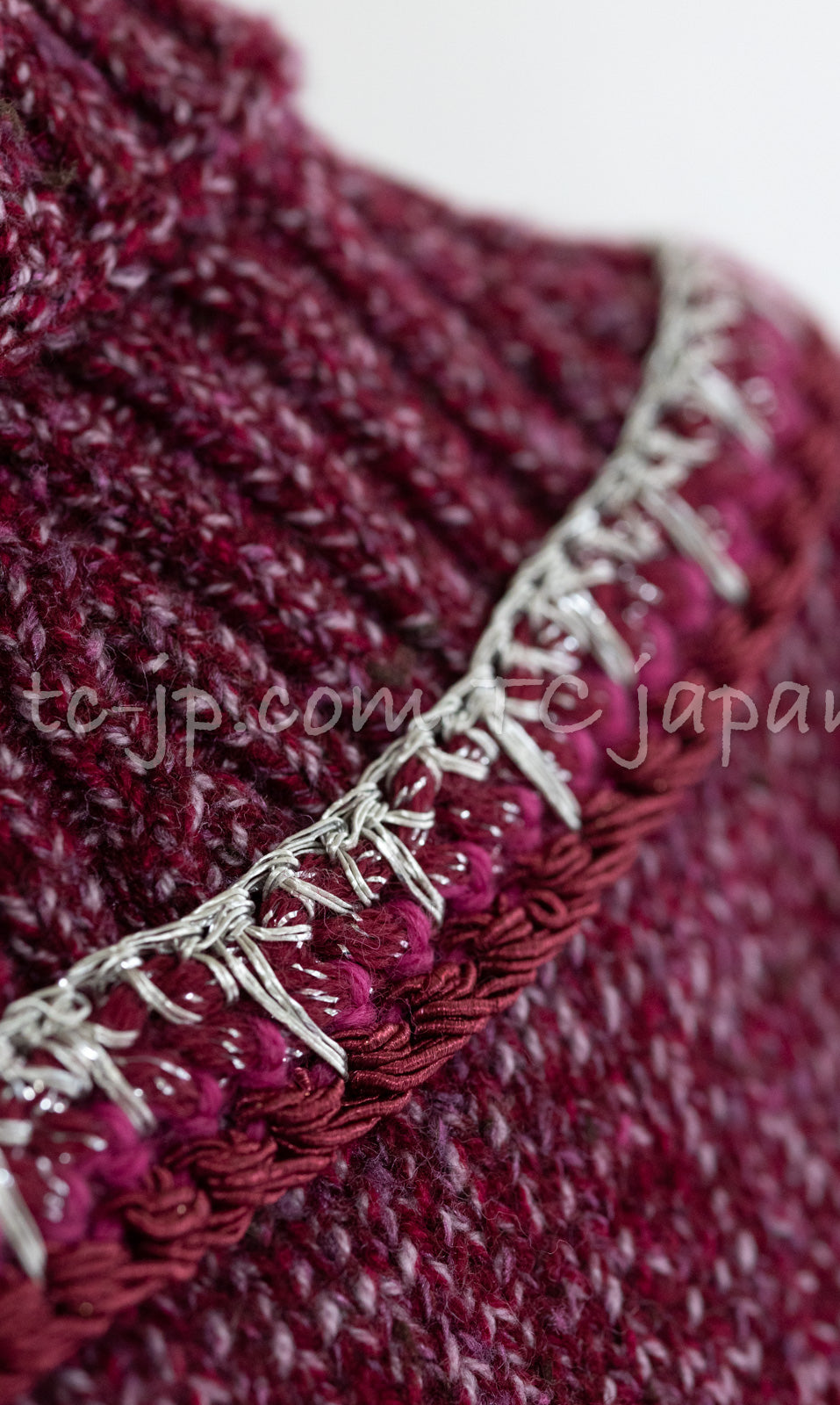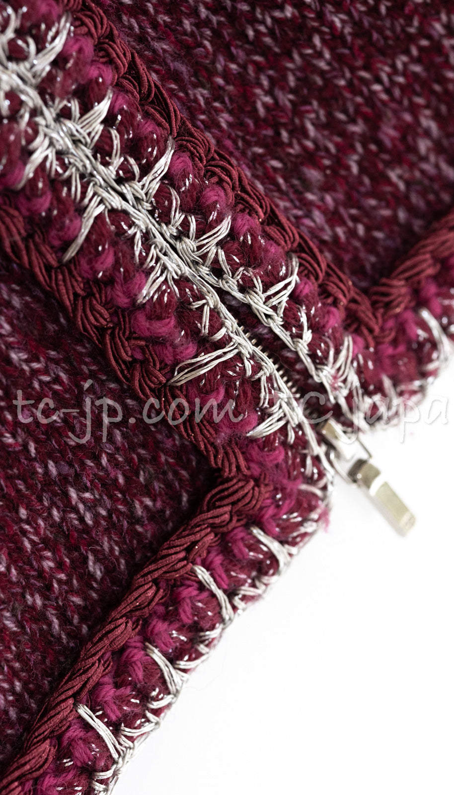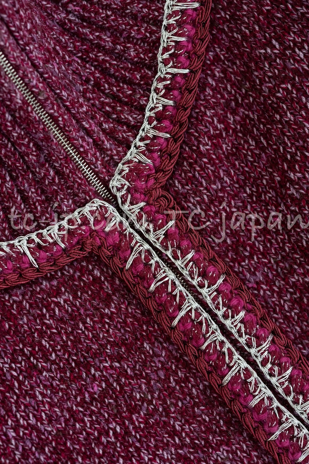 CHANEL 16A Plum Wine Red Cashmere Silk Zipper Knit Cardigan 36 38 シャネル プラム ワイン レッド カシミヤ シルク ジッパー ニット カーディガン 即発