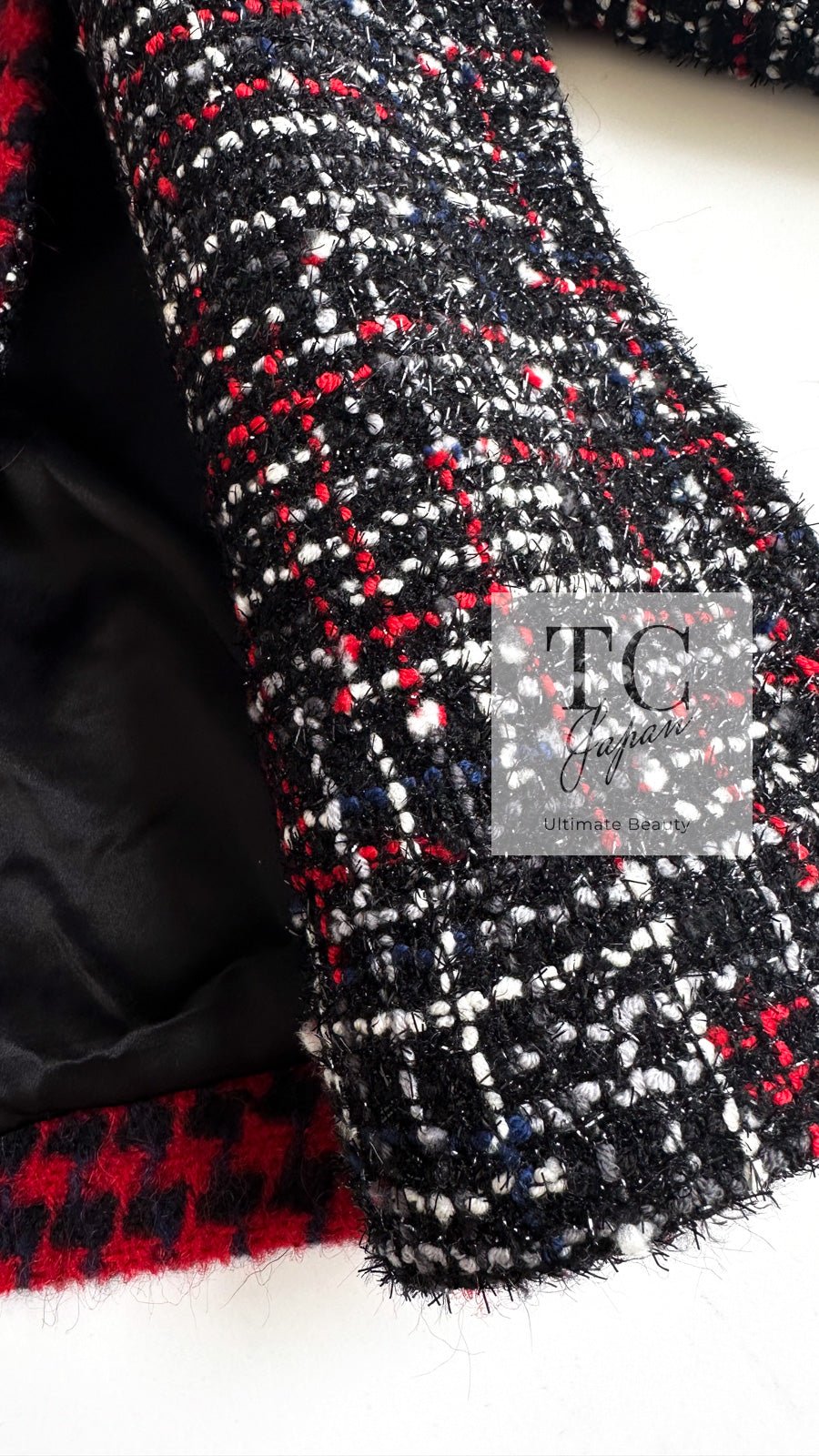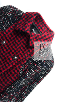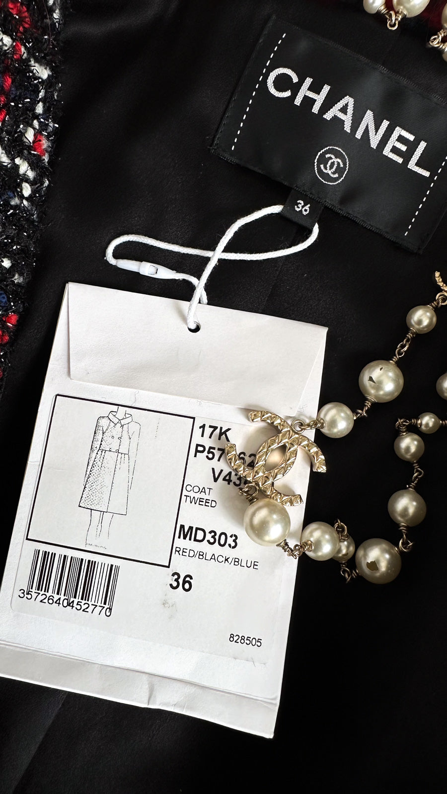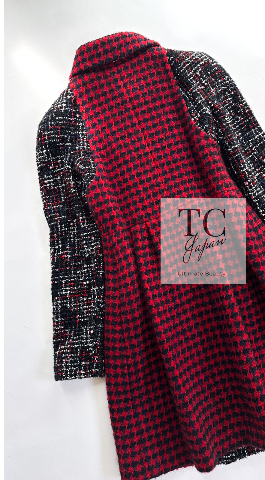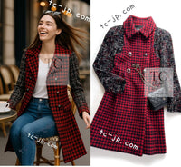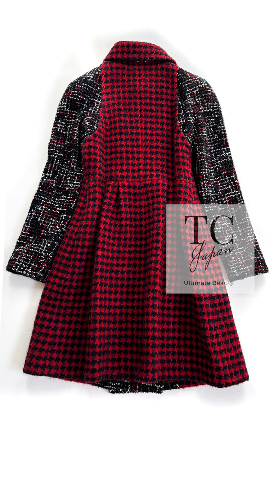 CHANEL 17A Red Black Double Wool Tweed Coat 36 シャネル レッド ブラック ダブル ウール ツイード コート 即発