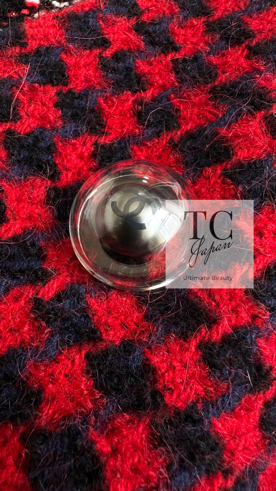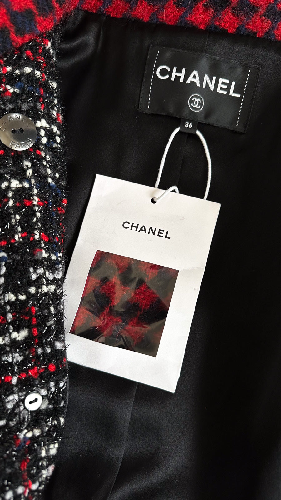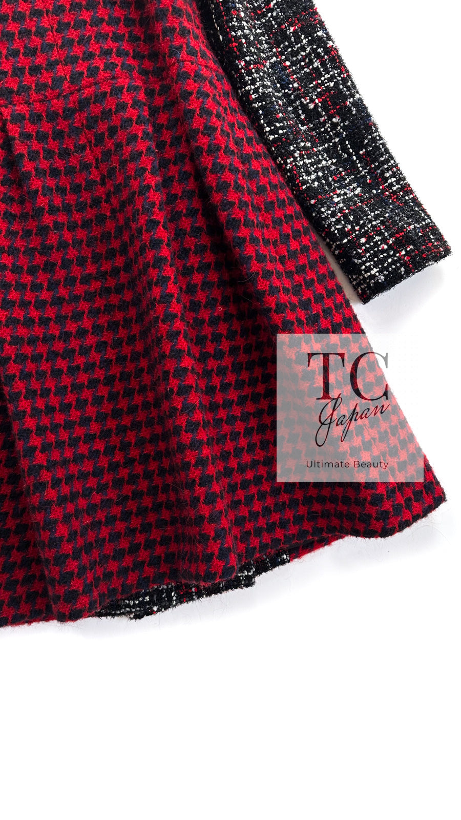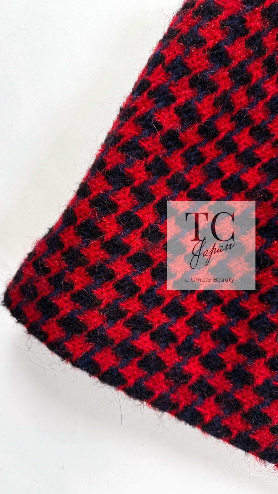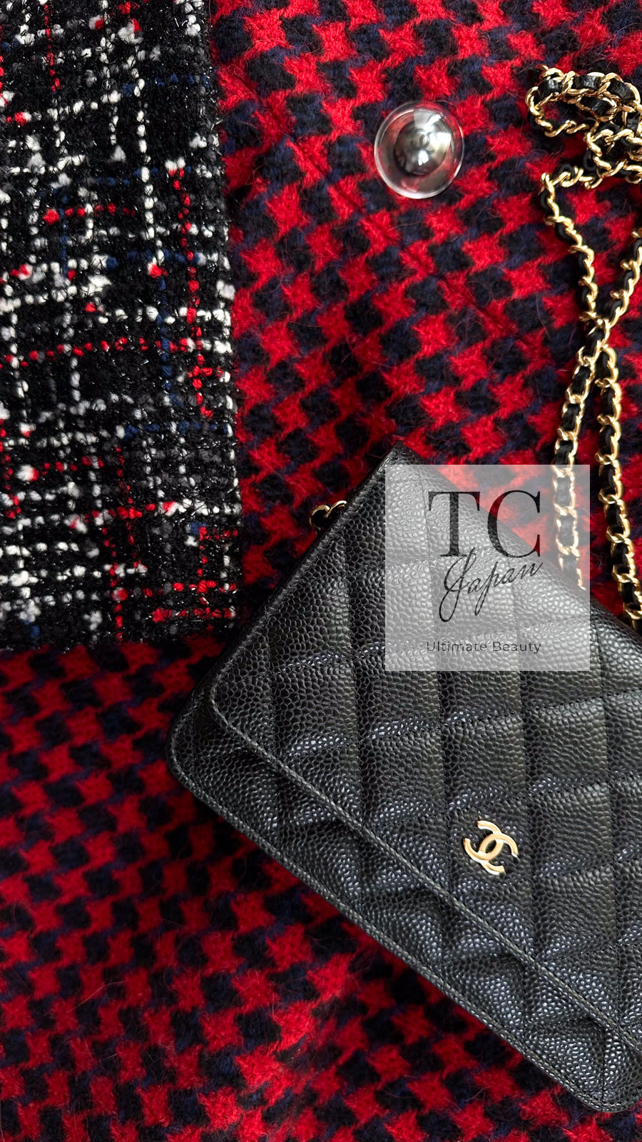 CHANEL 17A Red Black Double Wool Tweed Coat 36 シャネル レッド ブラック ダブル ウール ツイード コート 即発