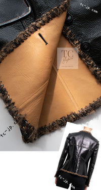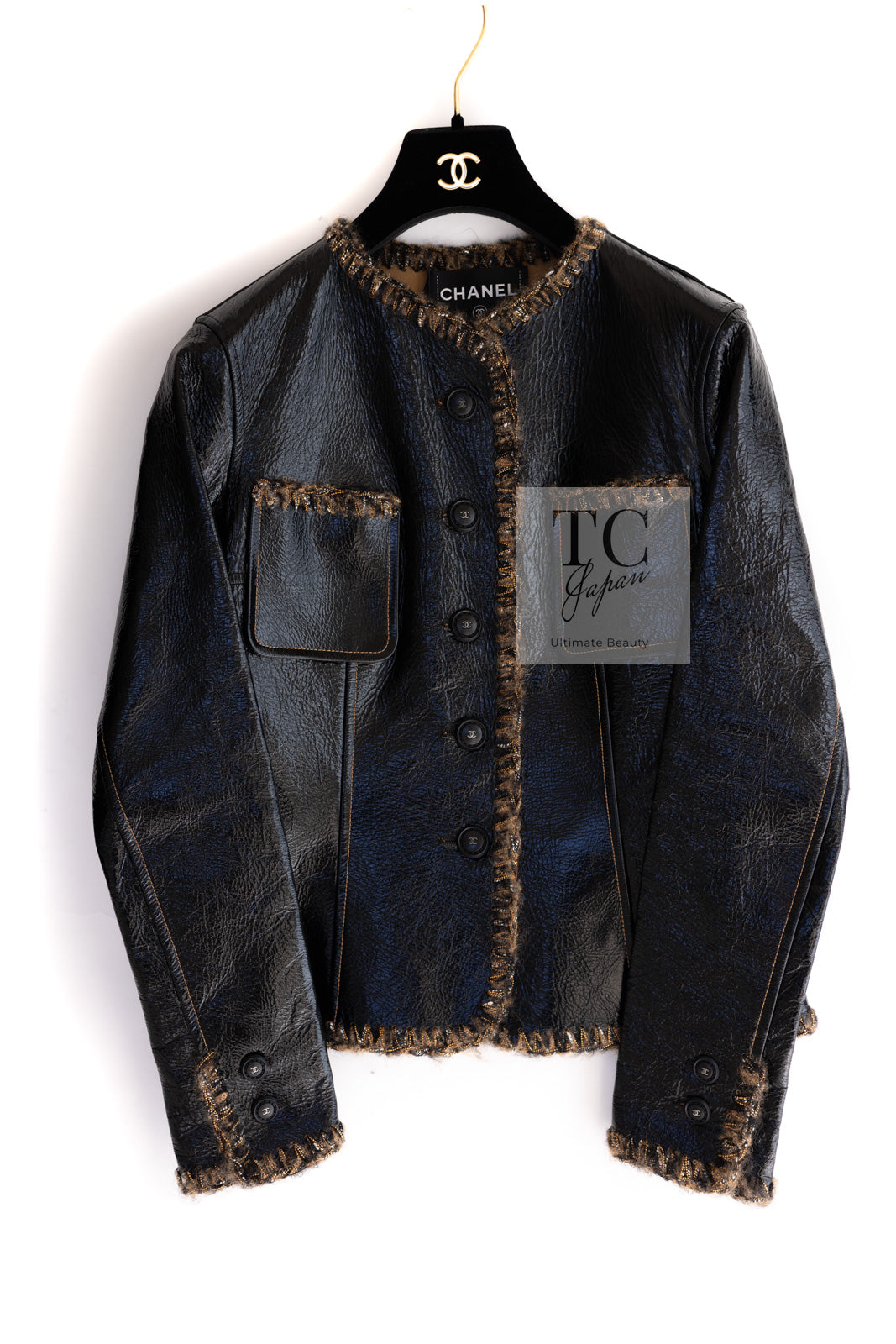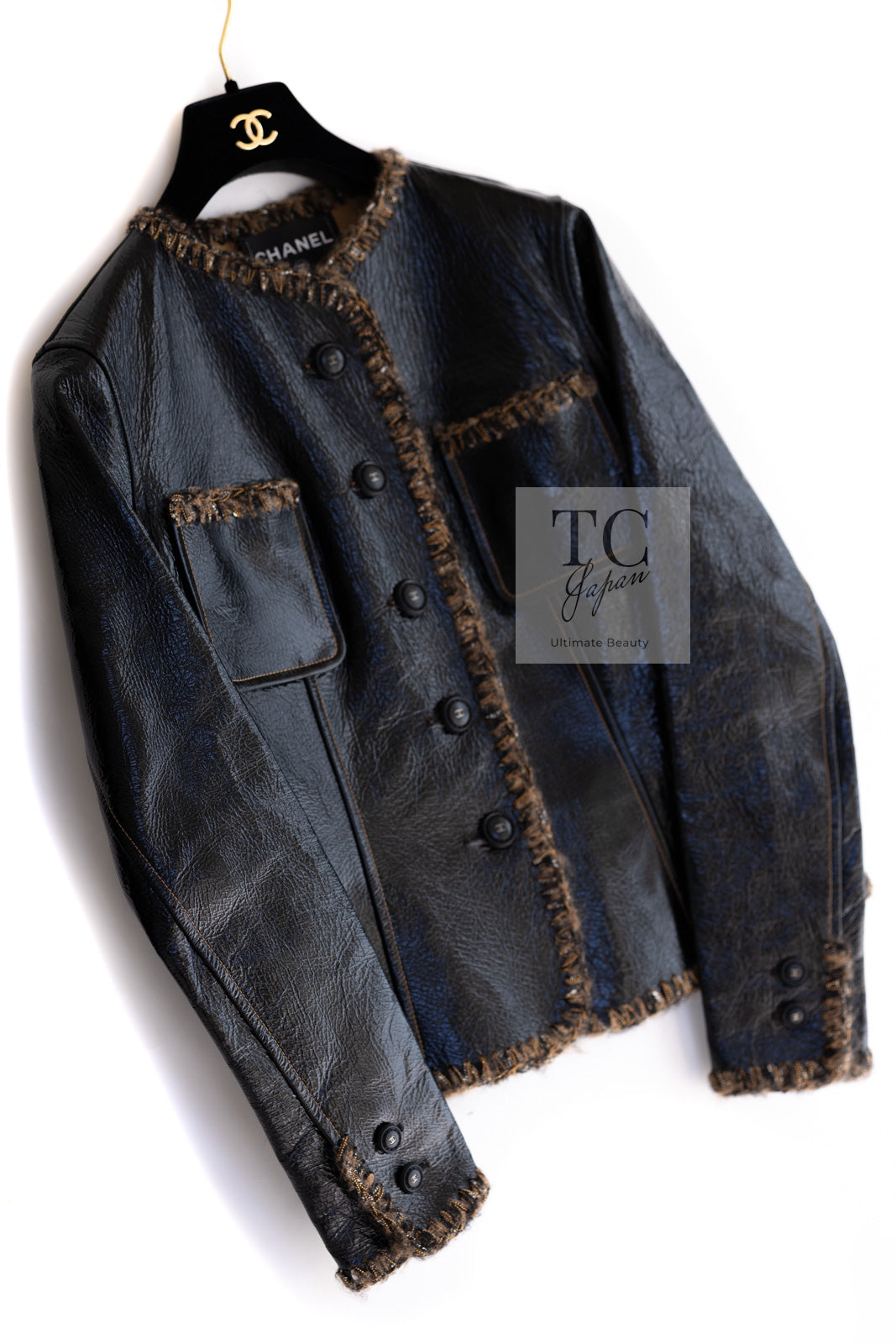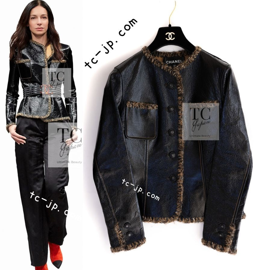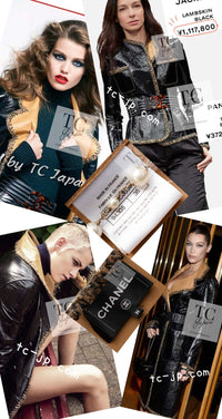 CHANEL 17B Black Lambskin Leather Chain Trim Jacket 36 シャネル ブラック ラム スキン レザー チェーン トリム ジャケット 即発