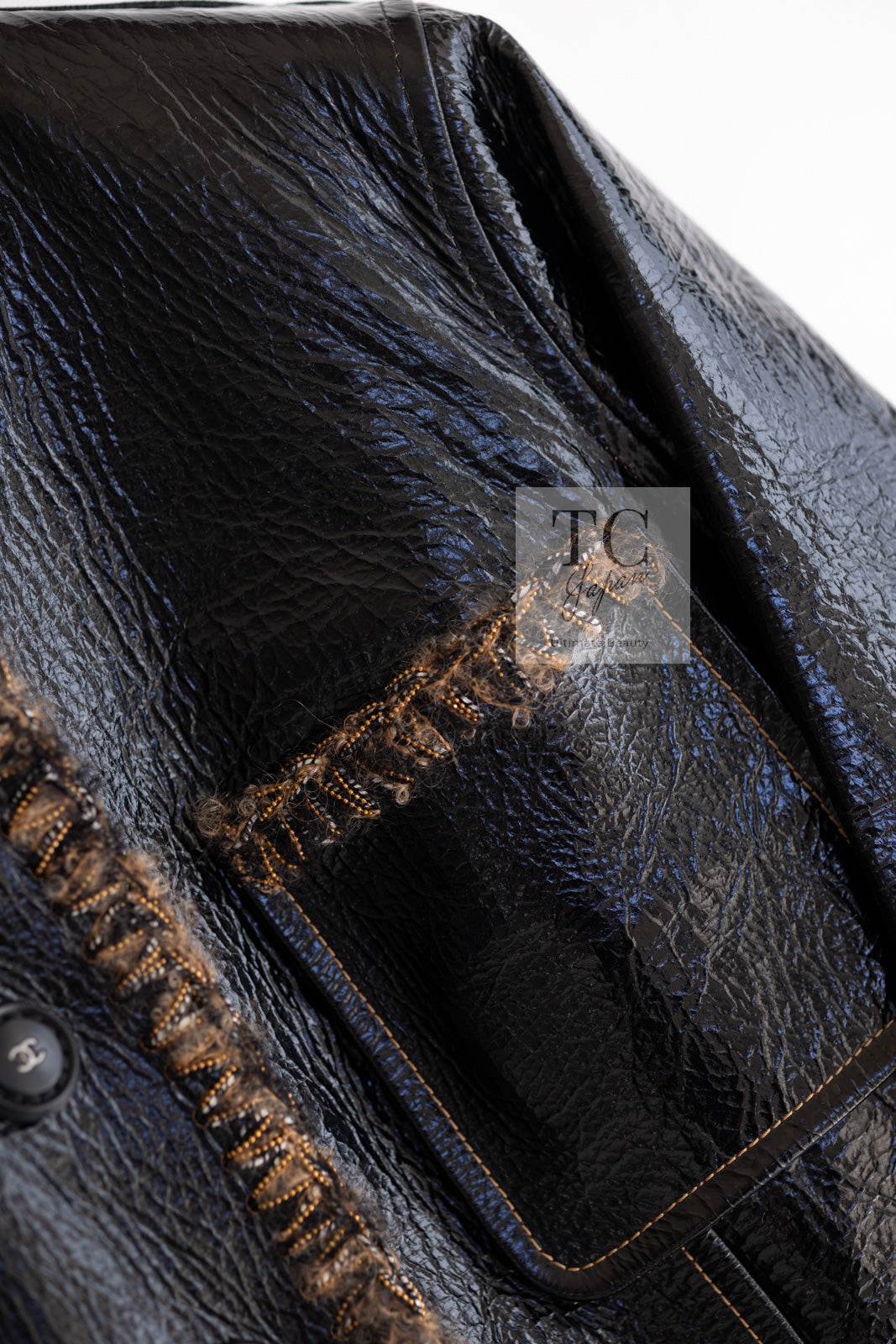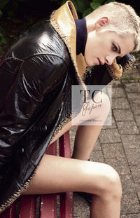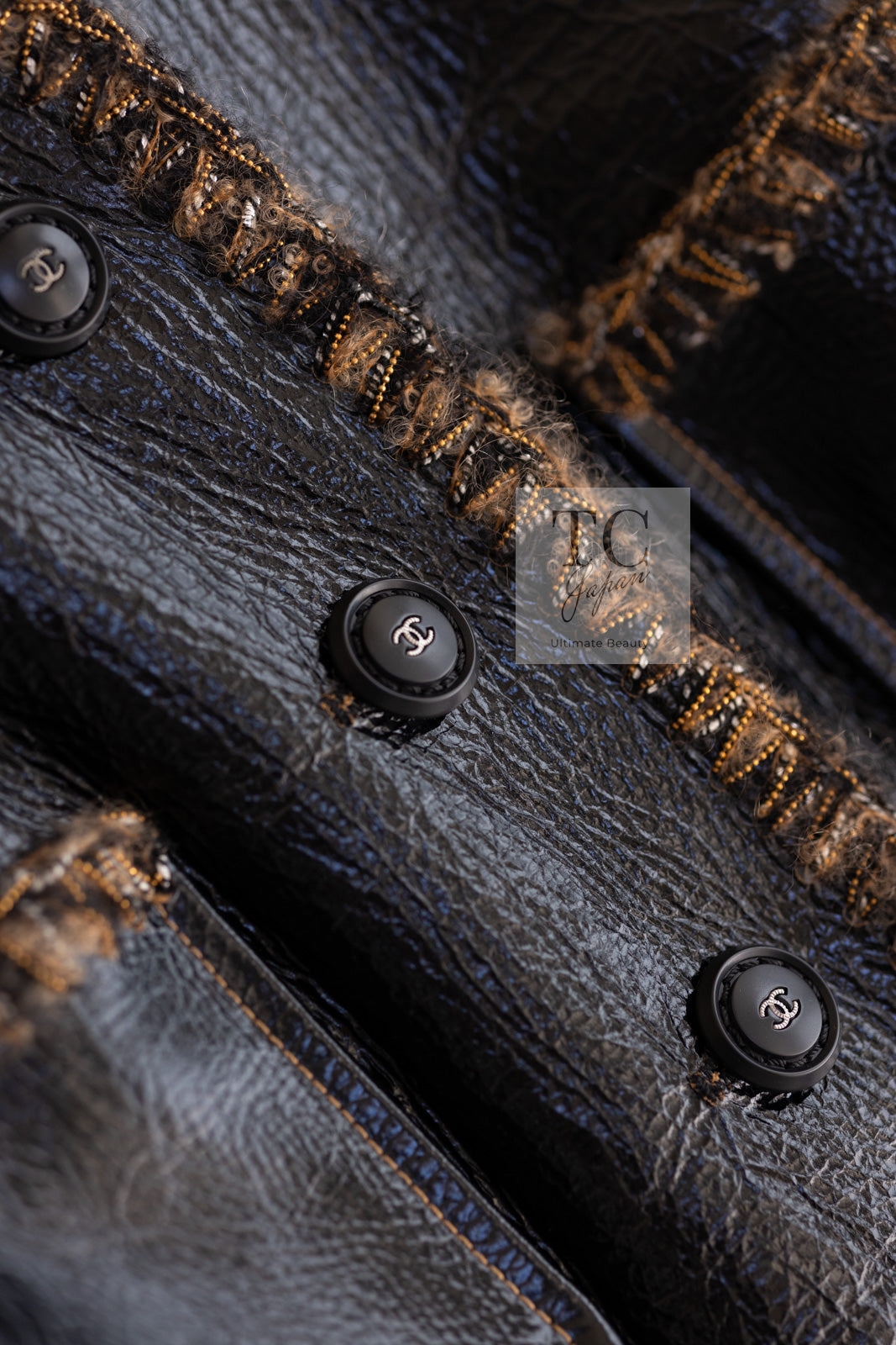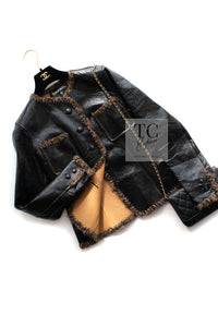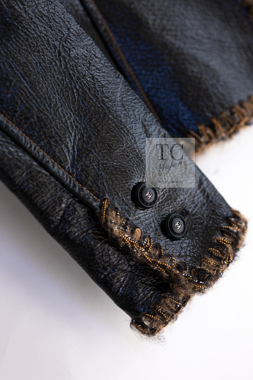 CHANEL 17B Black Lambskin Leather Chain Trim Jacket 36 シャネル ブラック ラム スキン レザー チェーン トリム ジャケット 即発