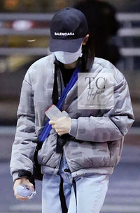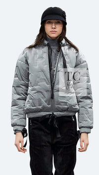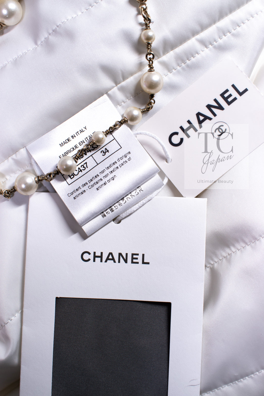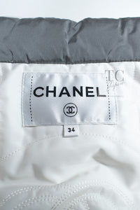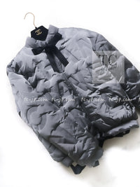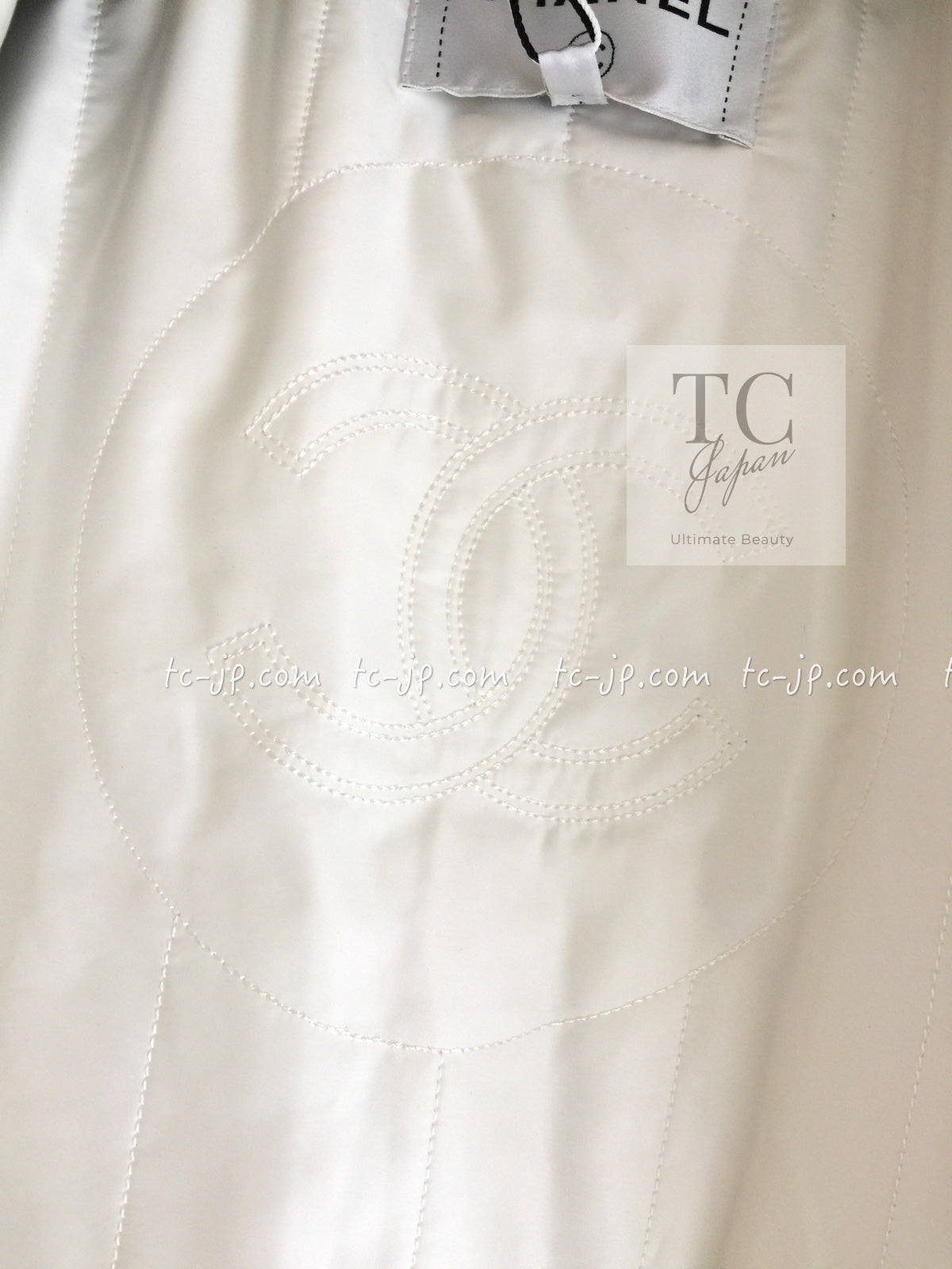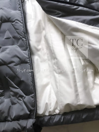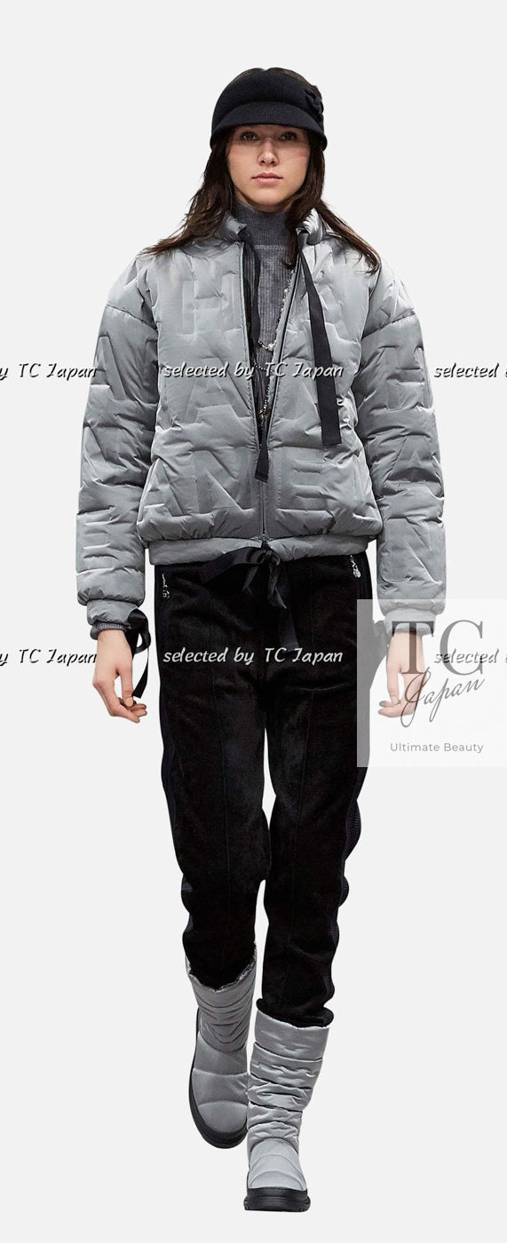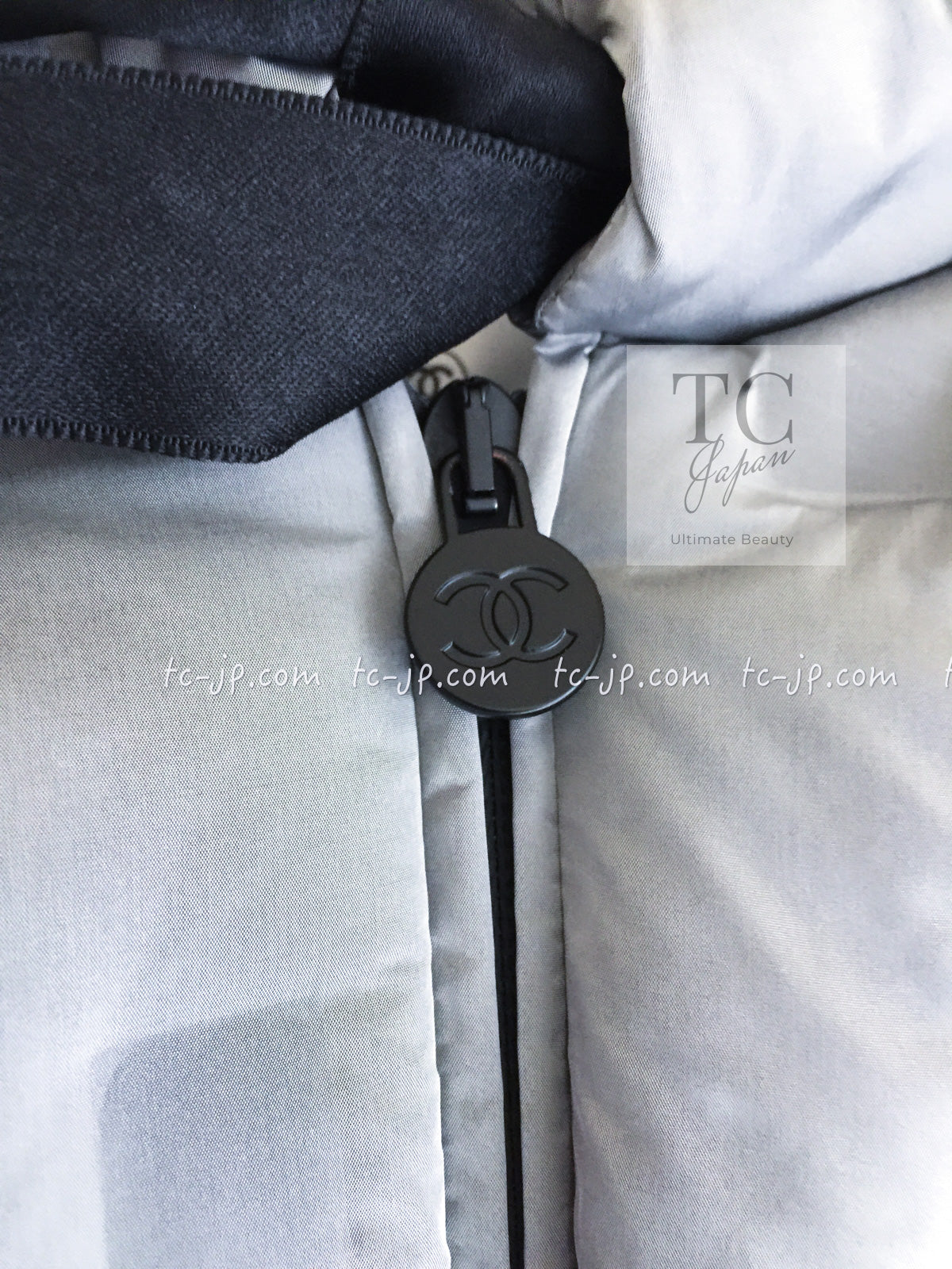 CHANEL 17B Light Grey Black Bow Logo Down Coat Jacket 34 36 38 シャネル ライトグレー ブラック リボン ロゴ ダウン ジャケット コート 即発