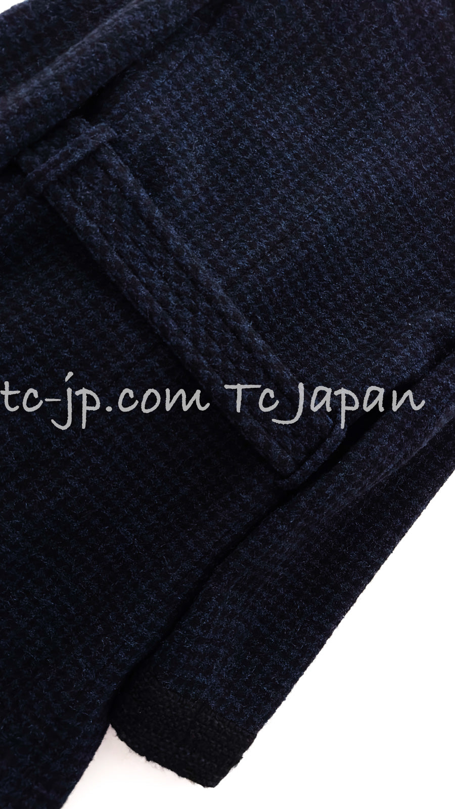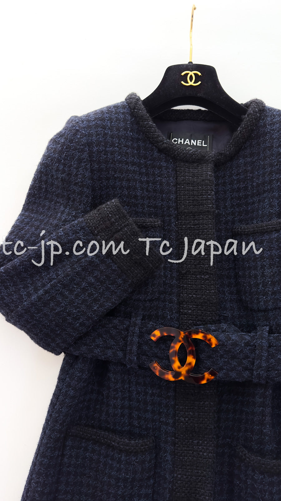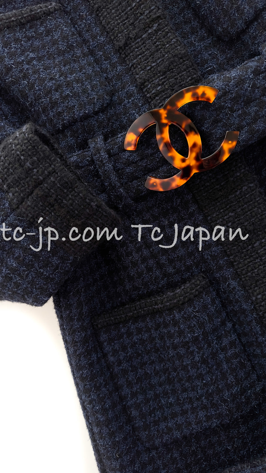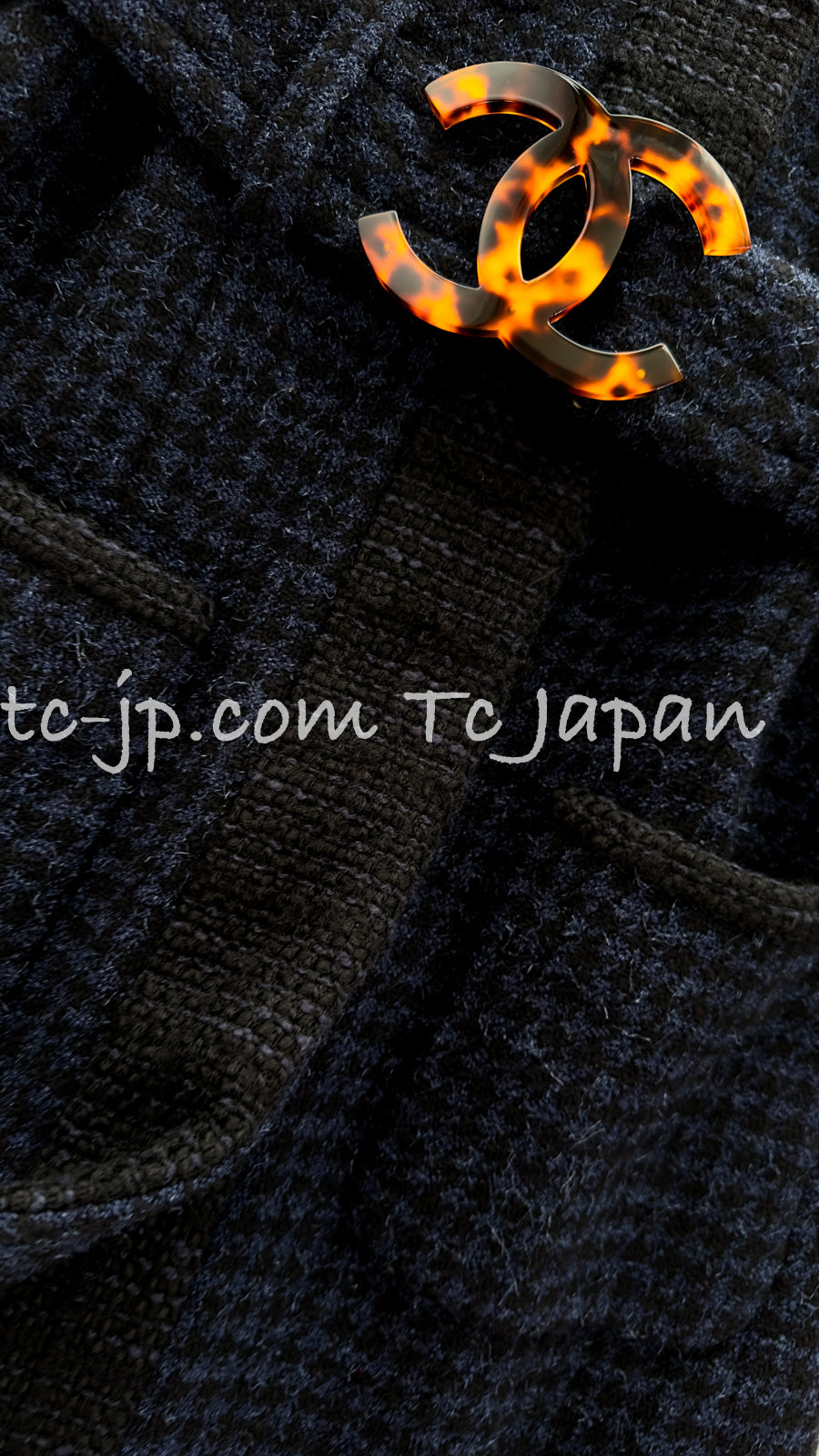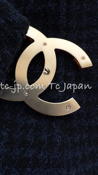 CHANEL 17B Navy Black BIG CC Logo Belt Jacket Coat 36 シャネル ネイビー ブラック ビッグ CC ロゴ ベルト付 ノーカラー ジャケット コート 即発