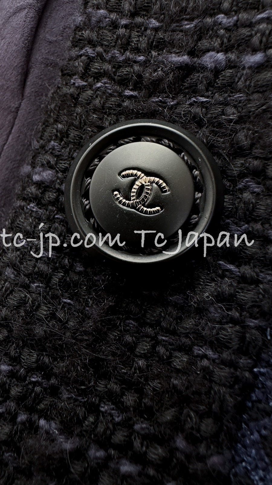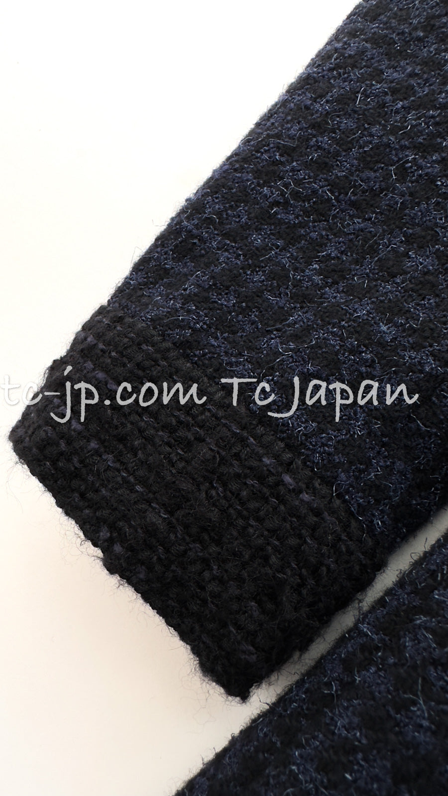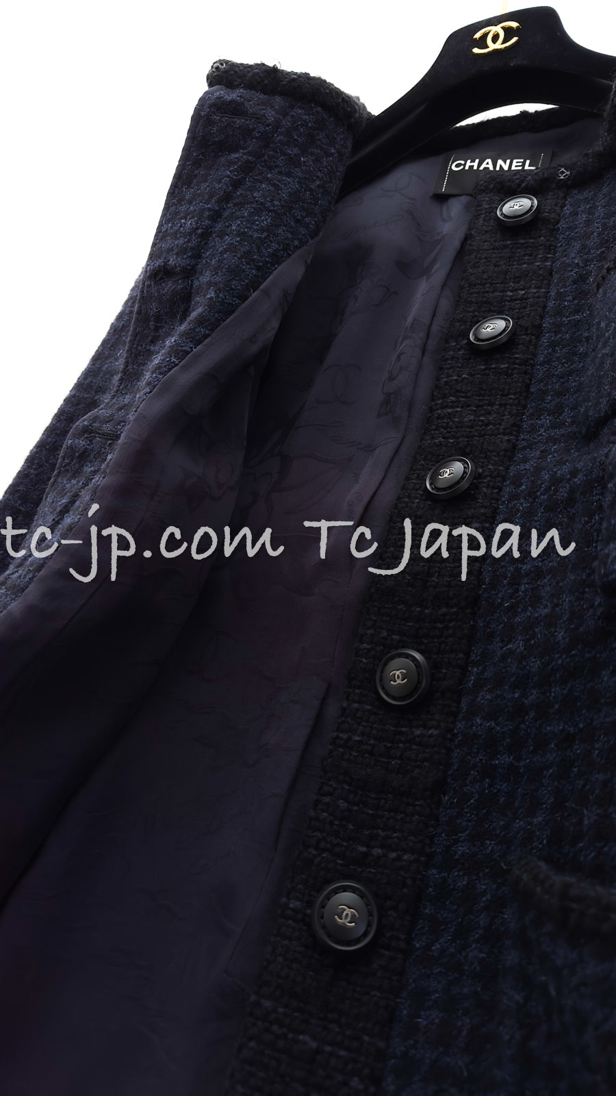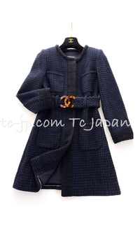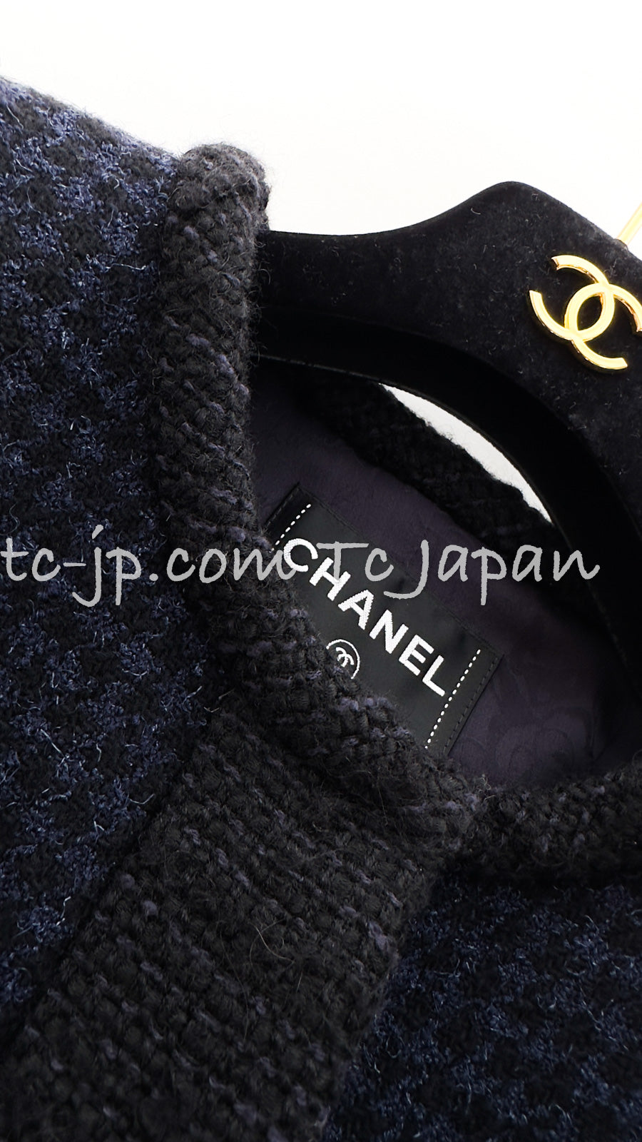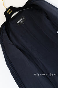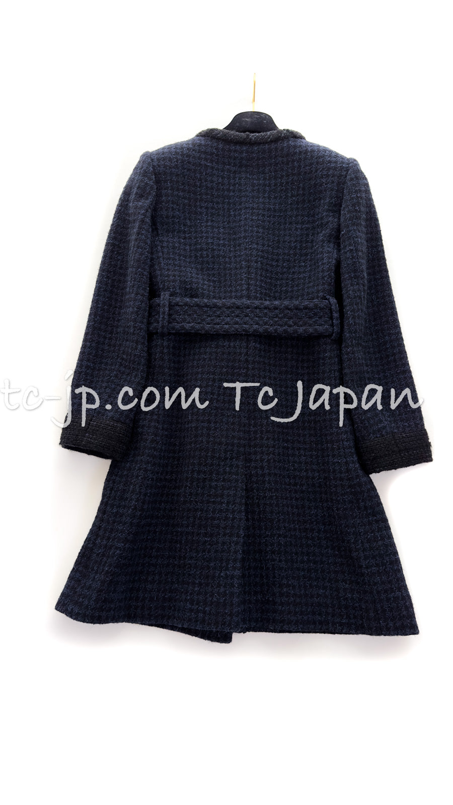 CHANEL 17B Navy Black BIG CC Logo Belt Jacket Coat 36 シャネル ネイビー ブラック ビッグ CC ロゴ ベルト付 ノーカラー ジャケット コート 即発
