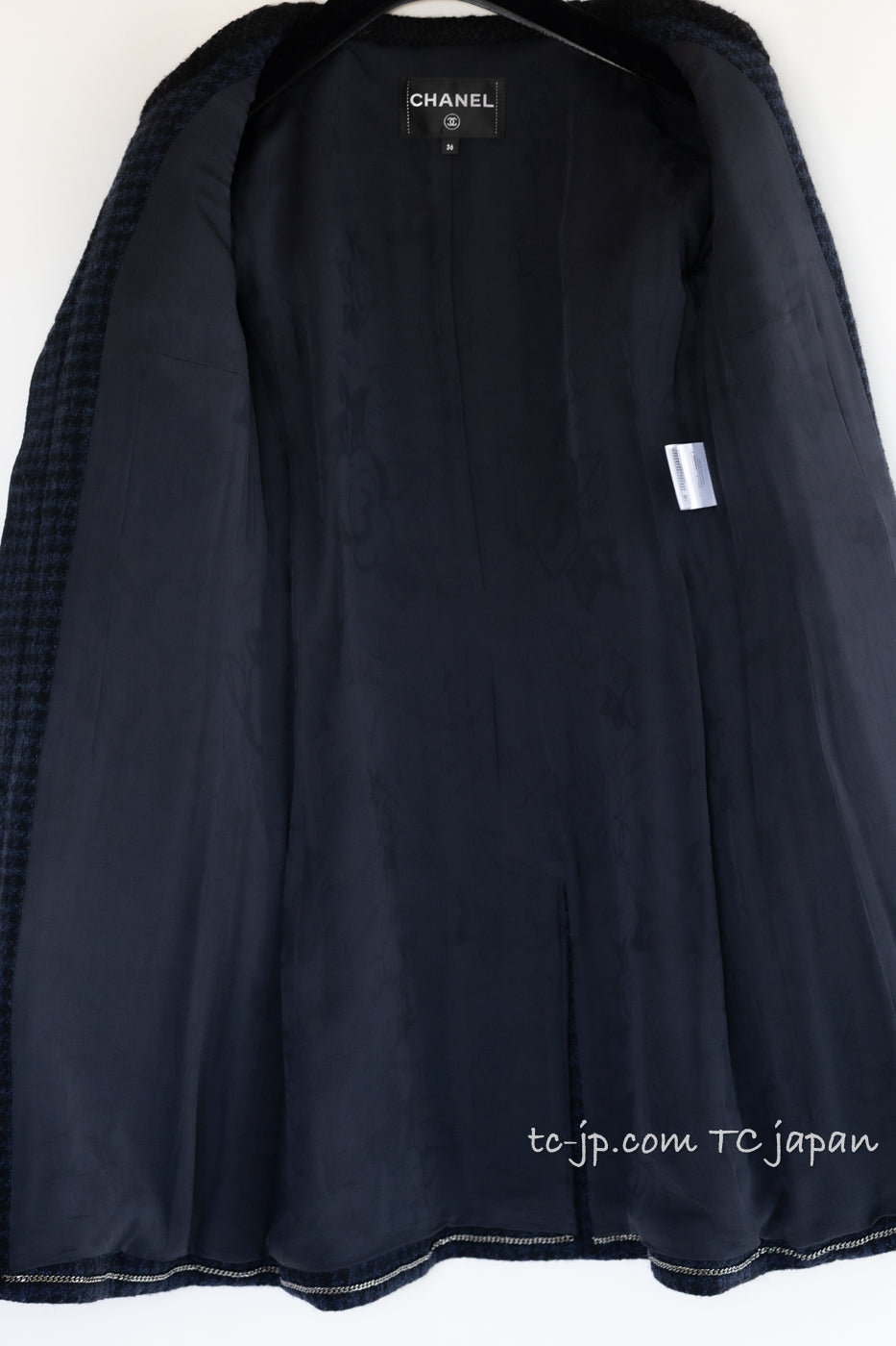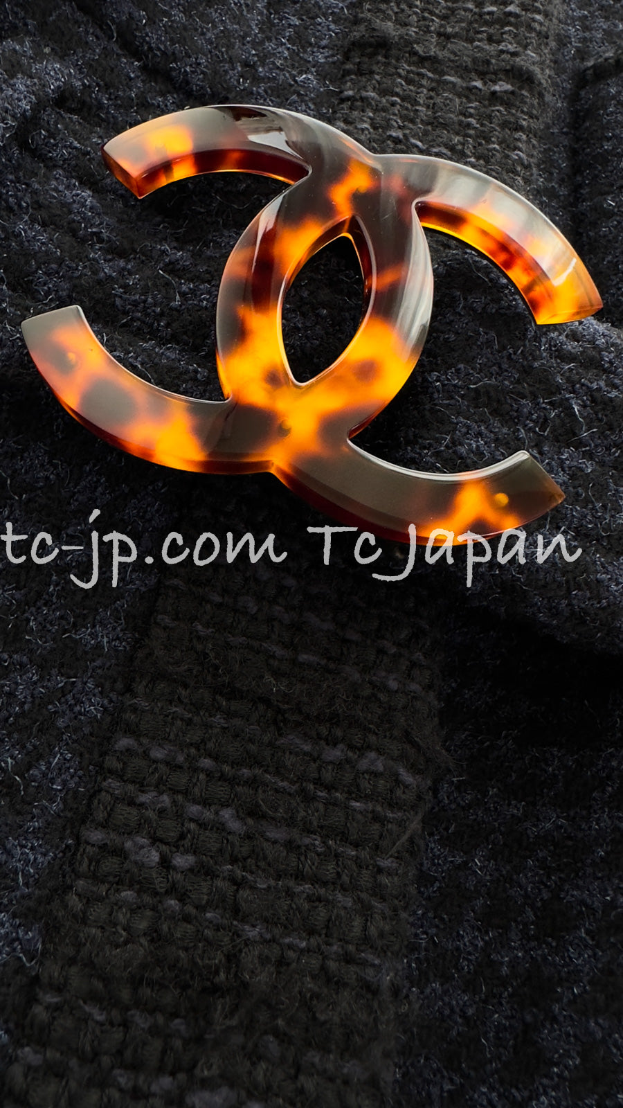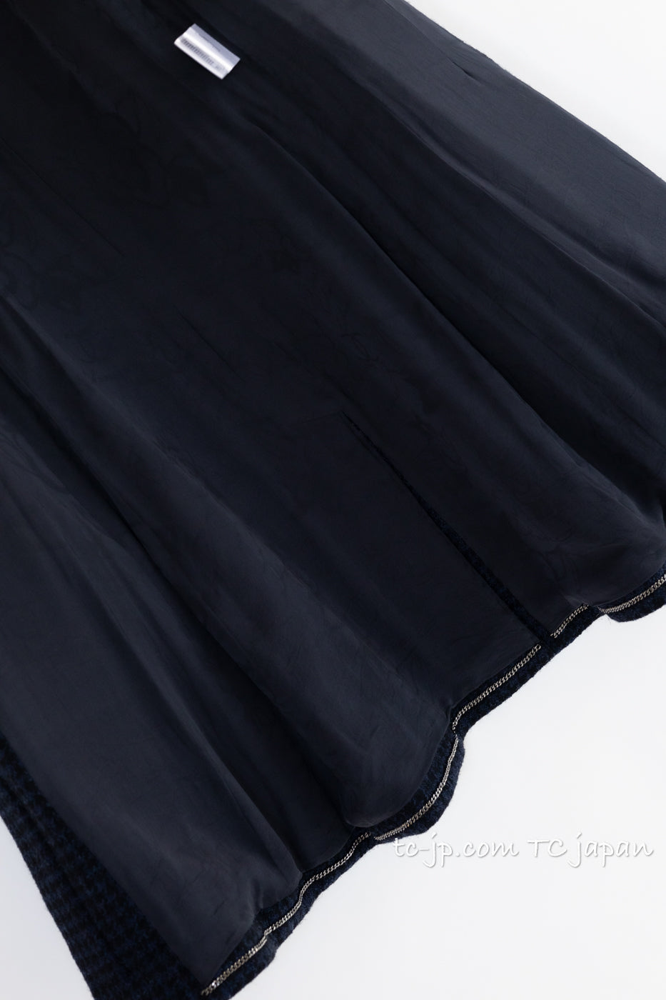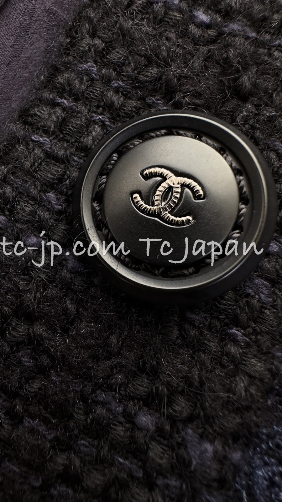 CHANEL 17B Navy Black BIG CC Logo Belt Jacket Coat 36 シャネル ネイビー ブラック ビッグ CC ロゴ ベルト付 ノーカラー ジャケット コート 即発