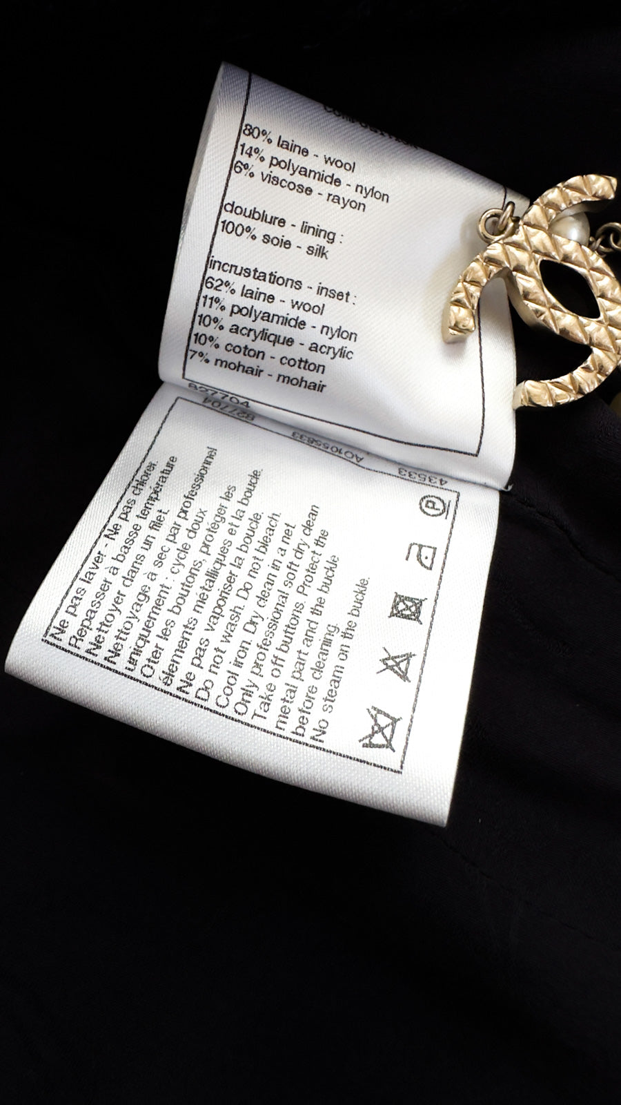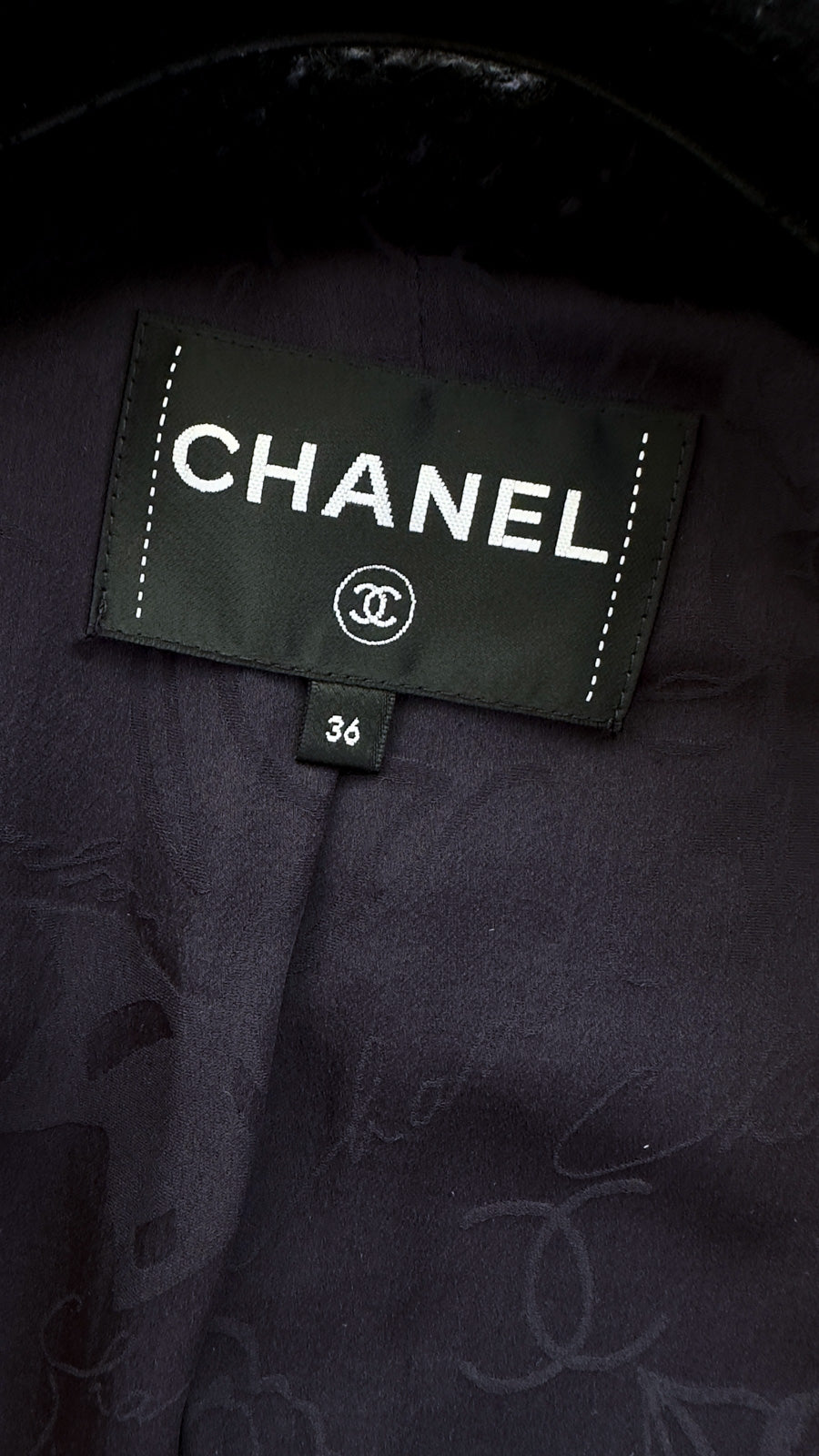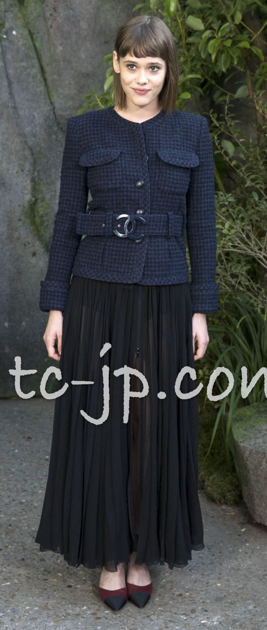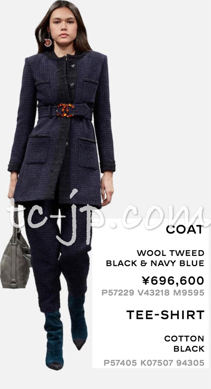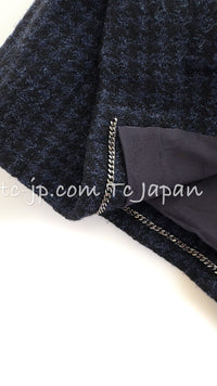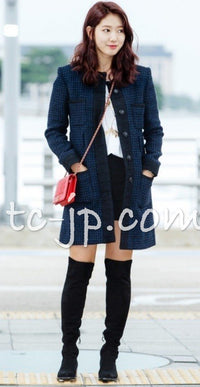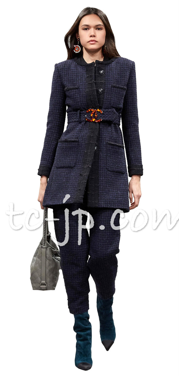 CHANEL 17B Navy Black BIG CC Logo Belt Jacket Coat 36 シャネル ネイビー ブラック ビッグ CC ロゴ ベルト付 ノーカラー ジャケット コート 即発