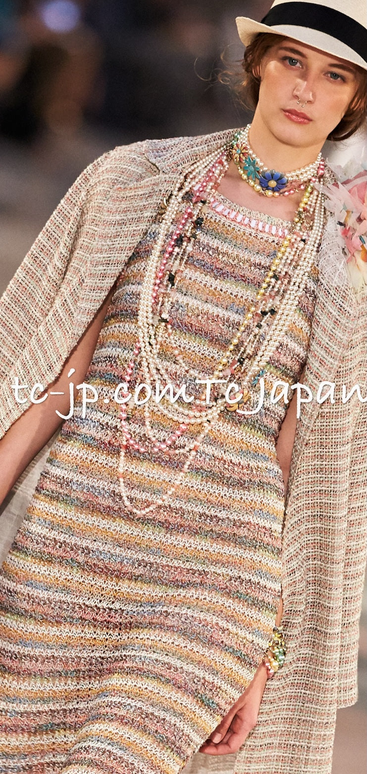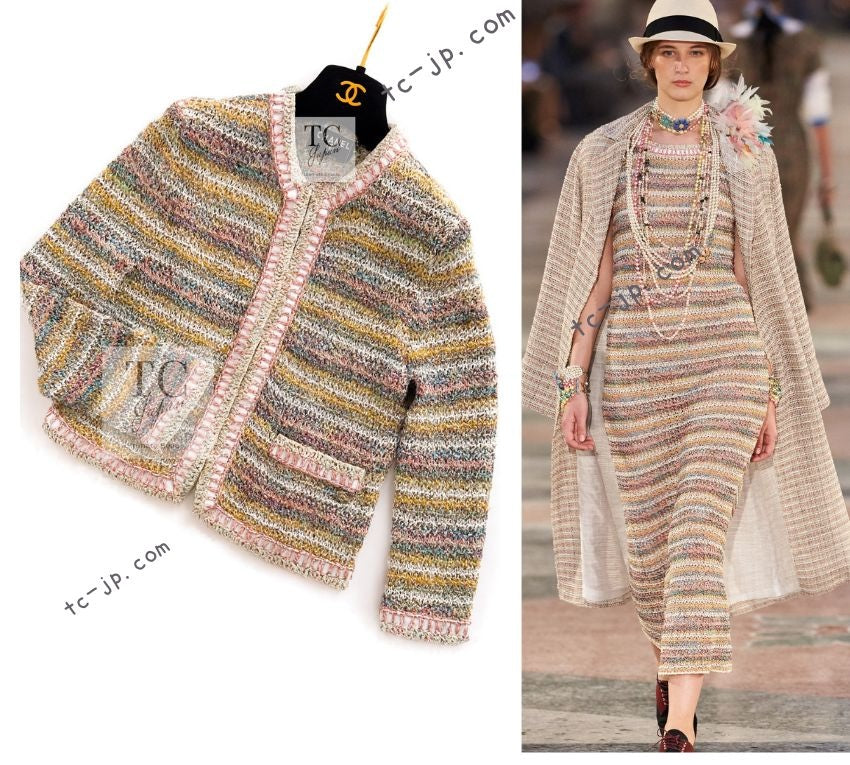 CHANEL 17C Creme Marigold Multi Cotton Cardigan 34 36 シャネル クリーム マリゴールド コットン ストレッチ テープ トリム カーディガン 即発