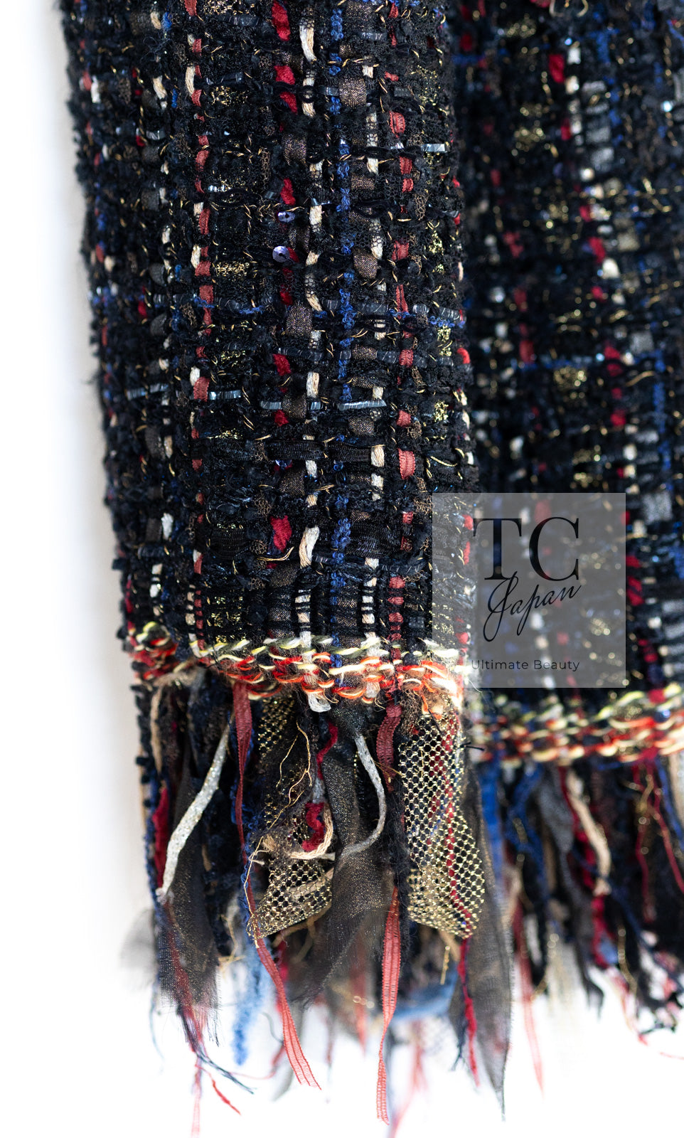 CHANEL 17PF Black Red Blue Mix Fantasy Tweed Jacket 34 ブラック レッド ブルー ミックス ファンタジー ツイード ジャケット 即発