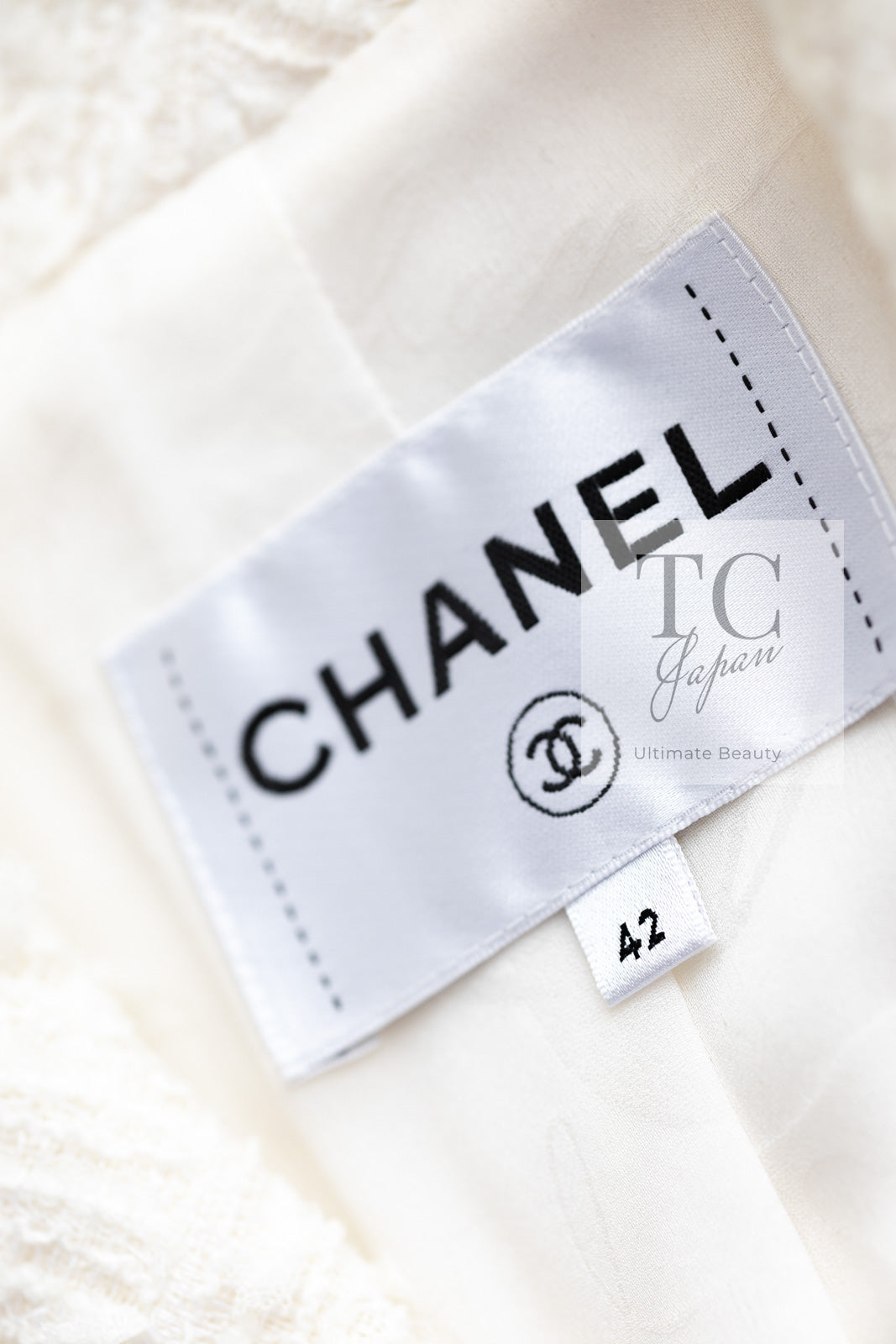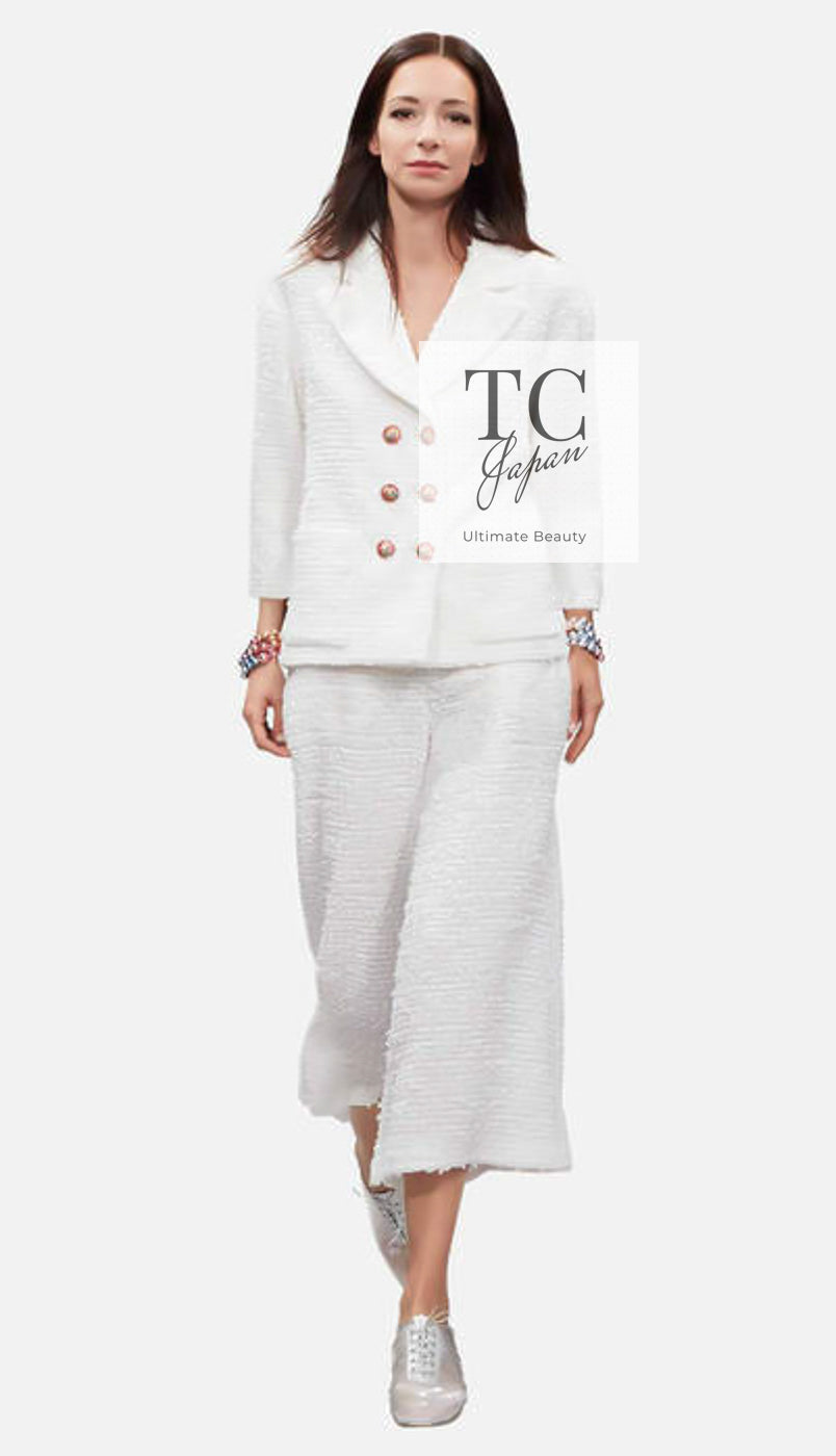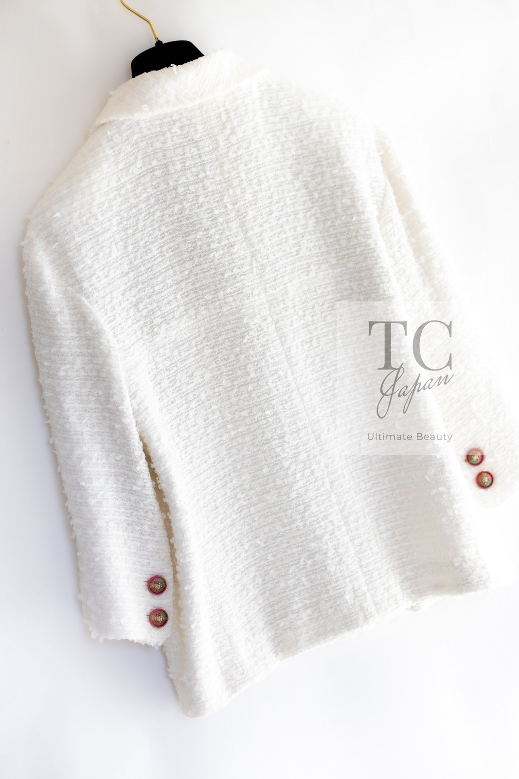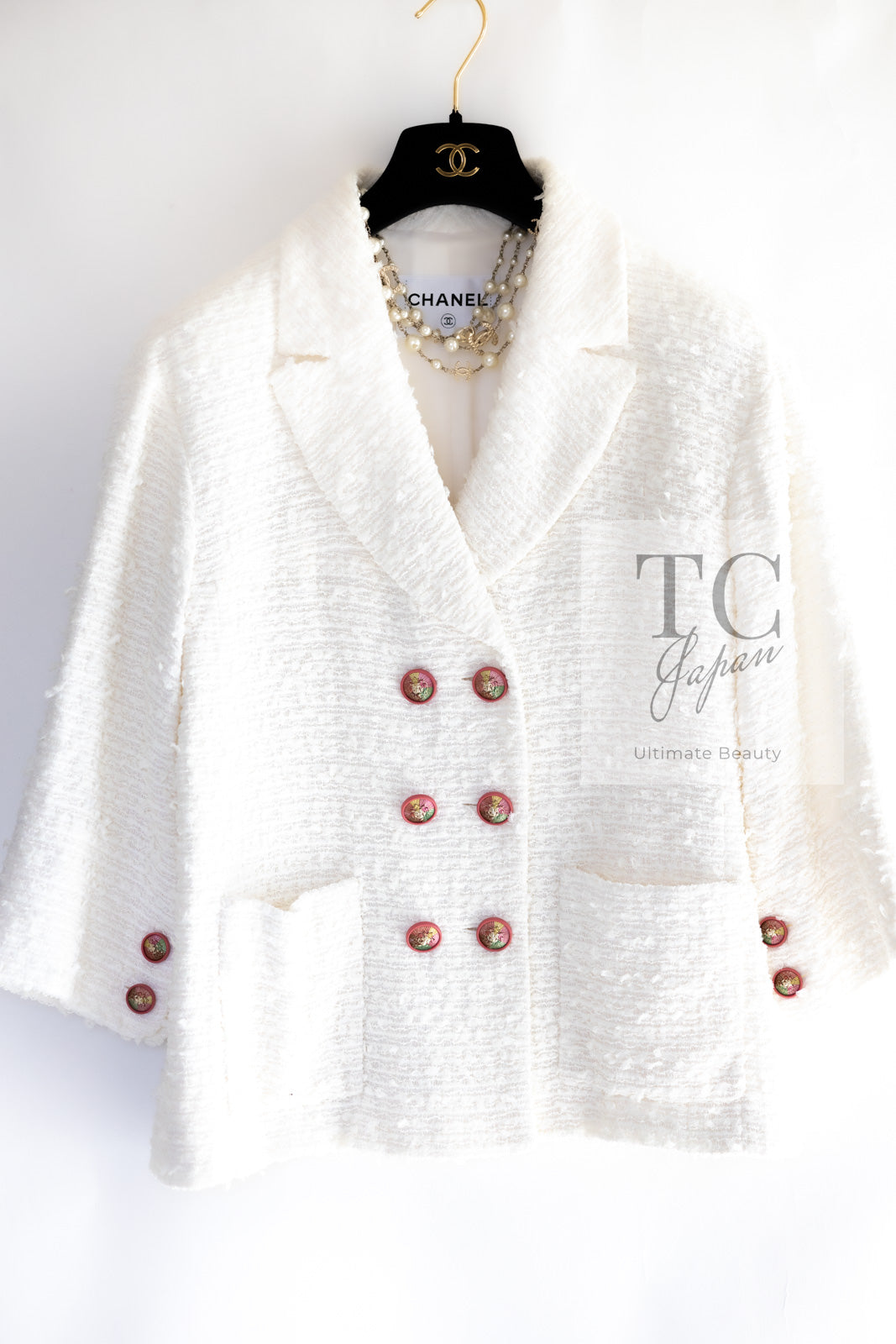 CHANEL 17PS White Ivory Lion CC Button Tweed Double Jacket 42 44 シャネル ホワイト アイボリー ライオン CC ボタン ツイード ダブル ジャケット 即発