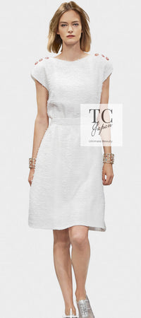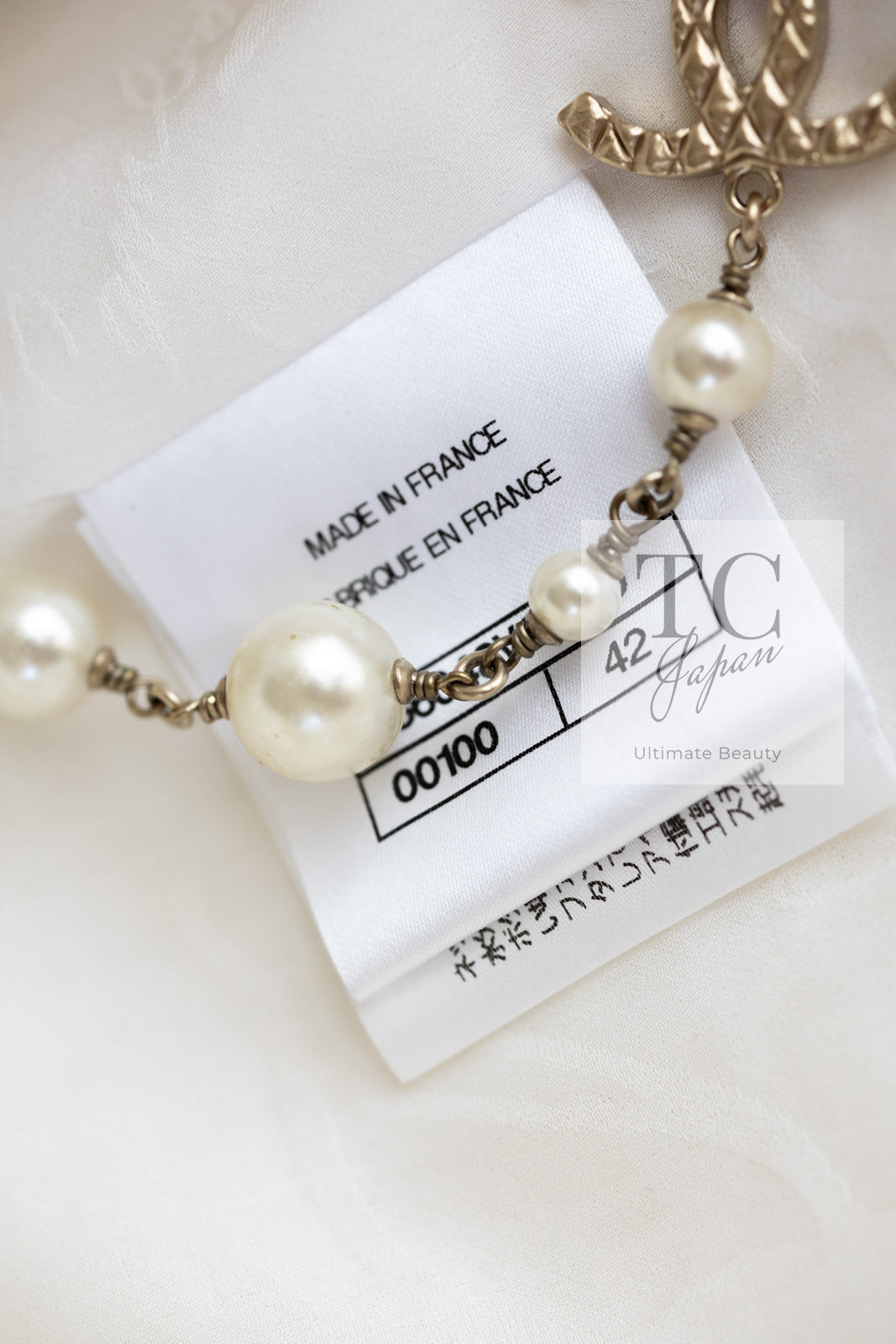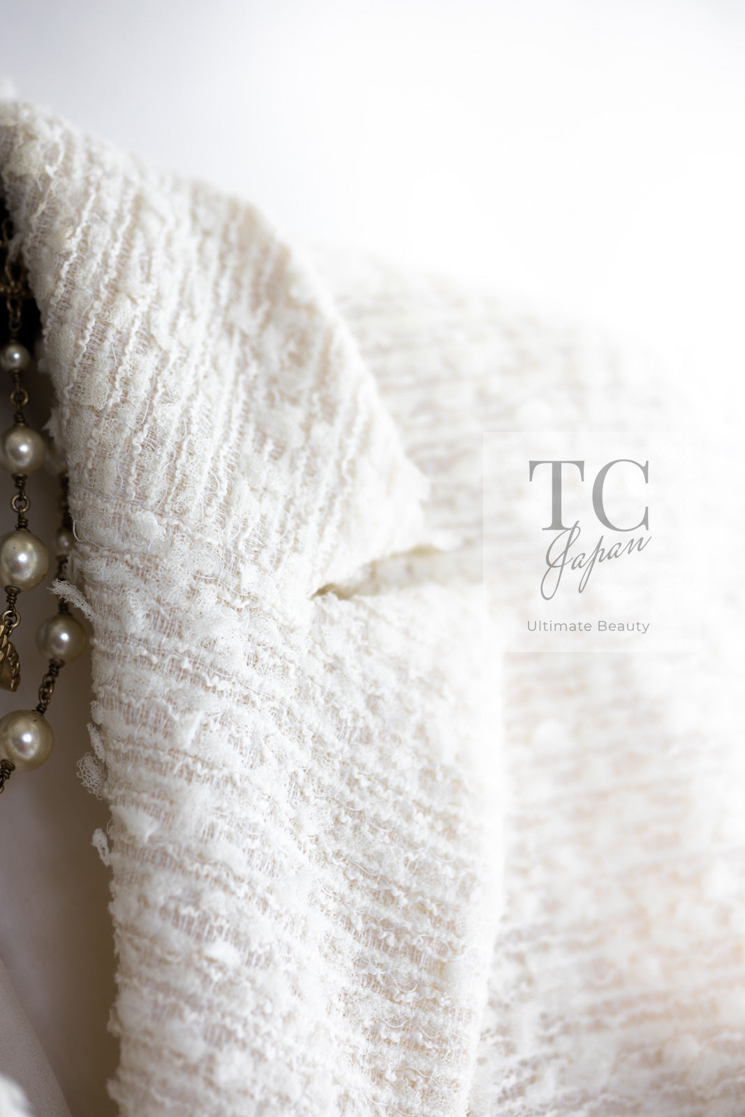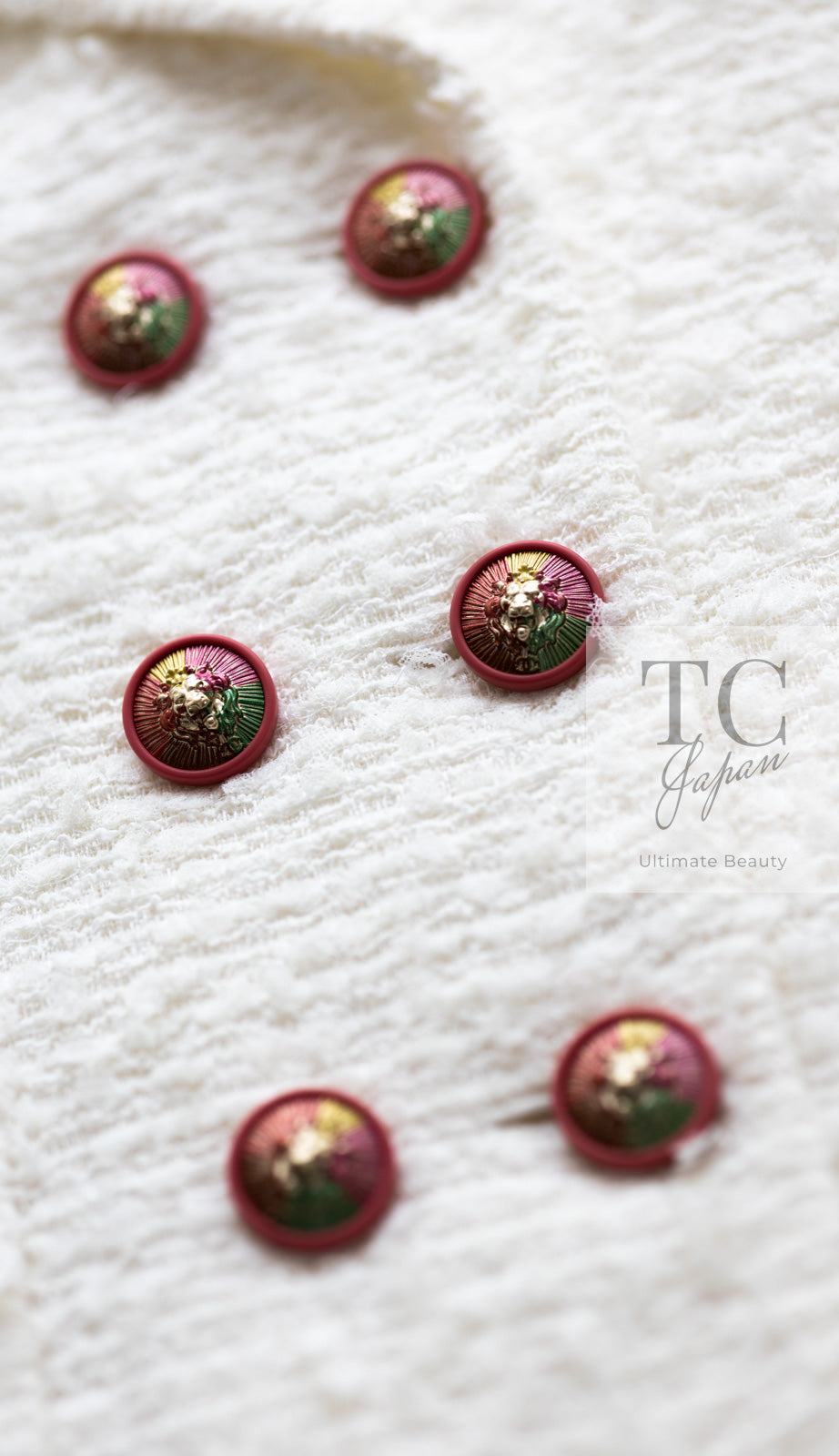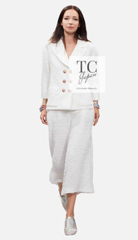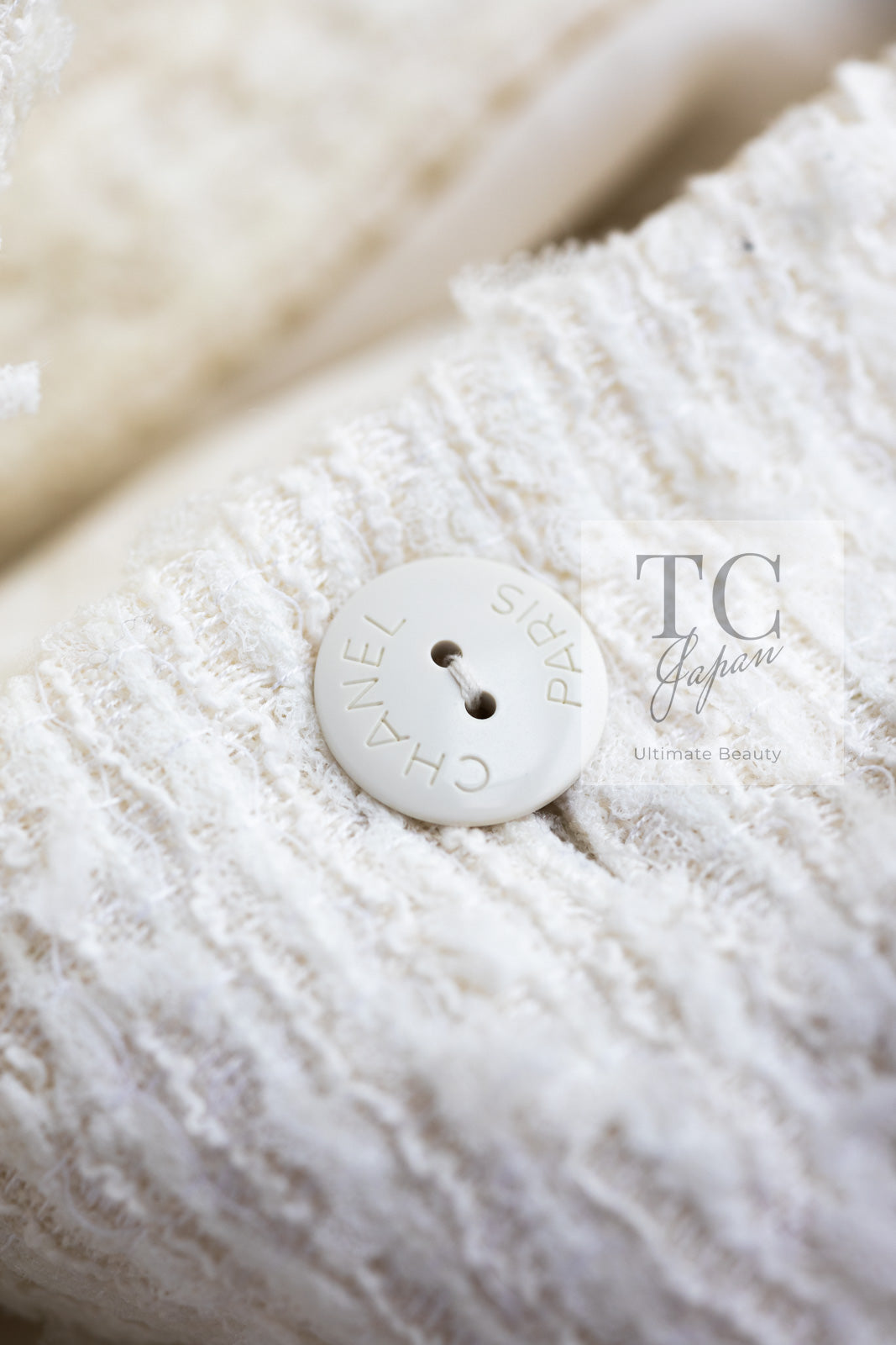 CHANEL 17PS White Ivory Lion CC Button Tweed Double Jacket 42 44 シャネル ホワイト アイボリー ライオン CC ボタン ツイード ダブル ジャケット 即発