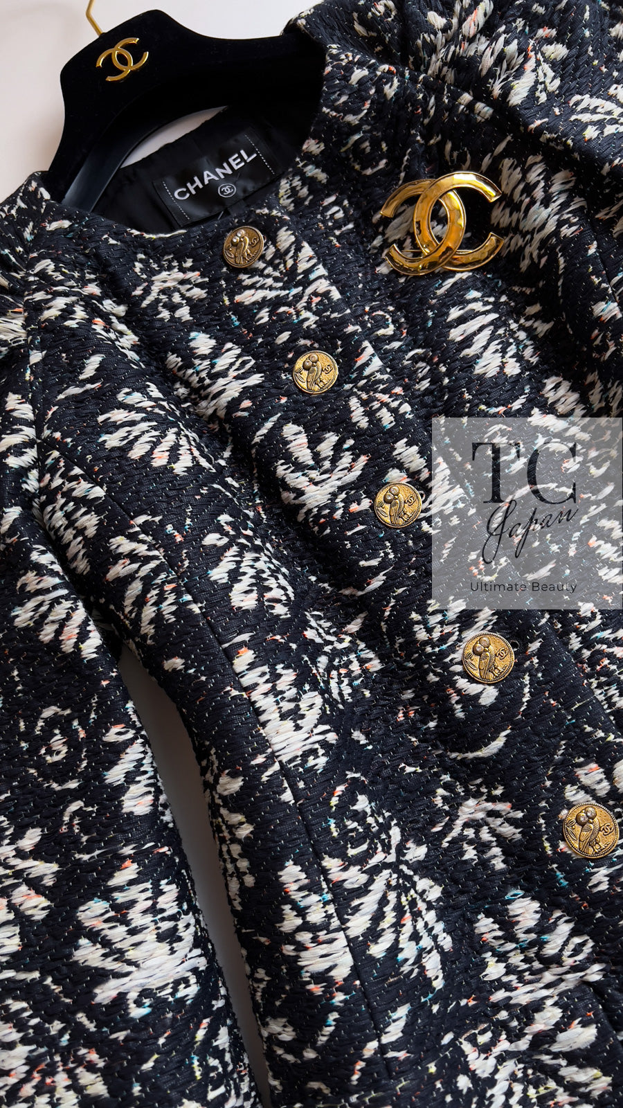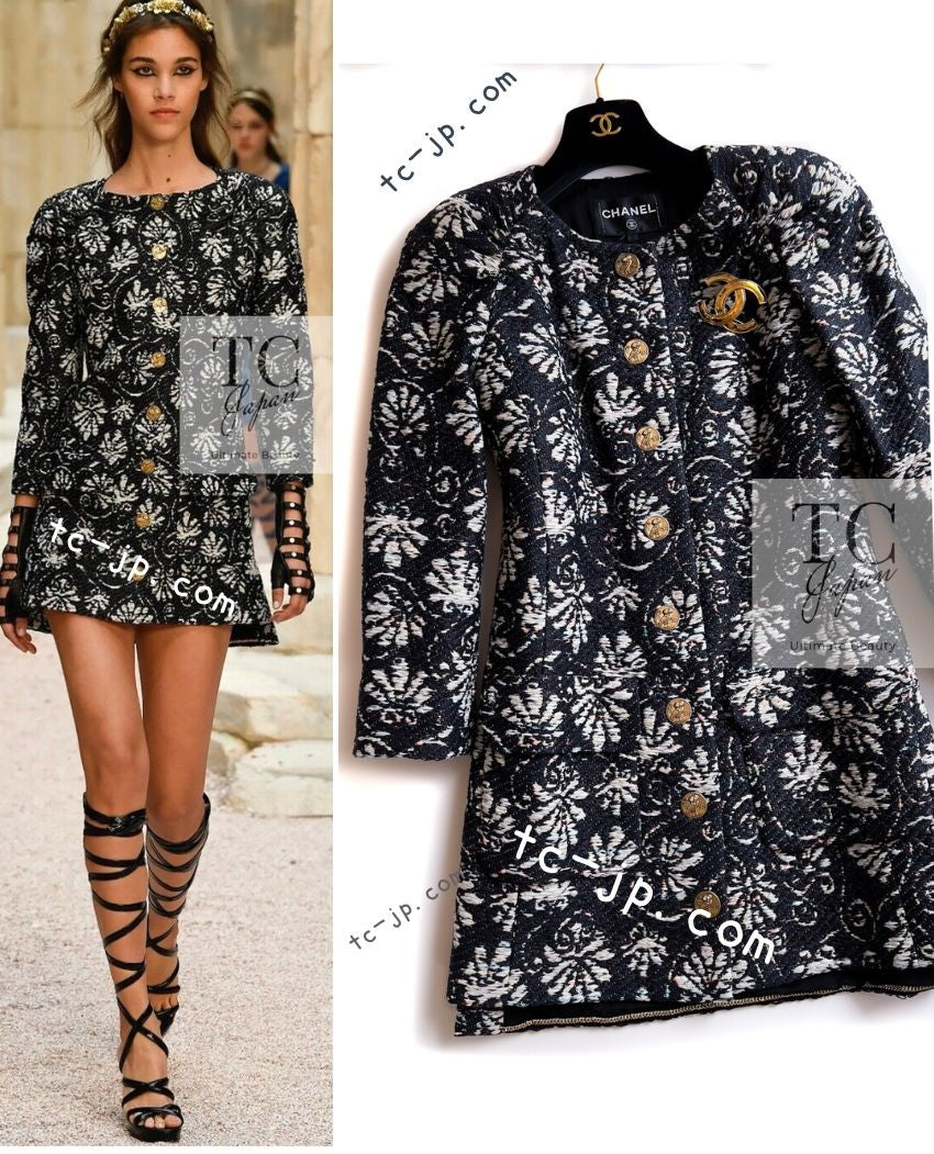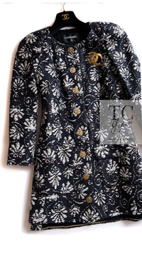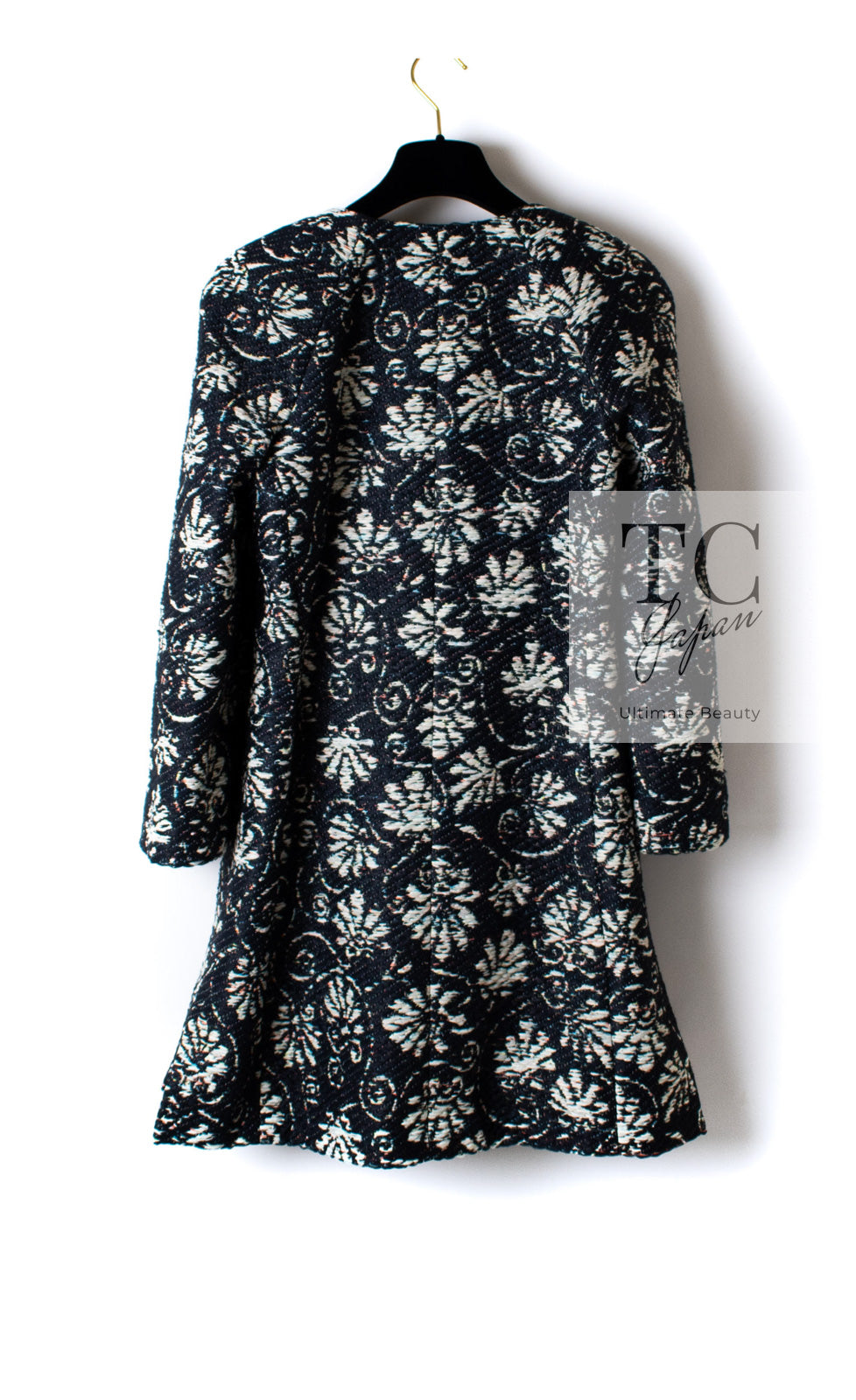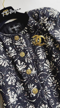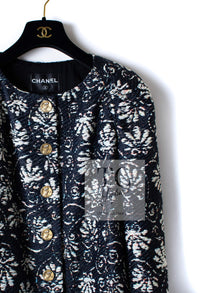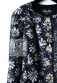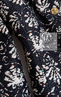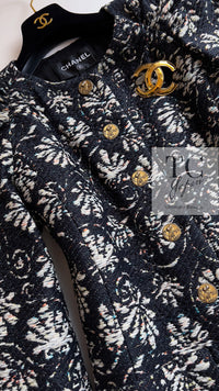 CHANEL 18C Navy Black Multi Camellia Jacquard Jacket Coat 34 36 シャネル ネイビー ブラック カメリア刺繍 ジャガード ジャケット コート