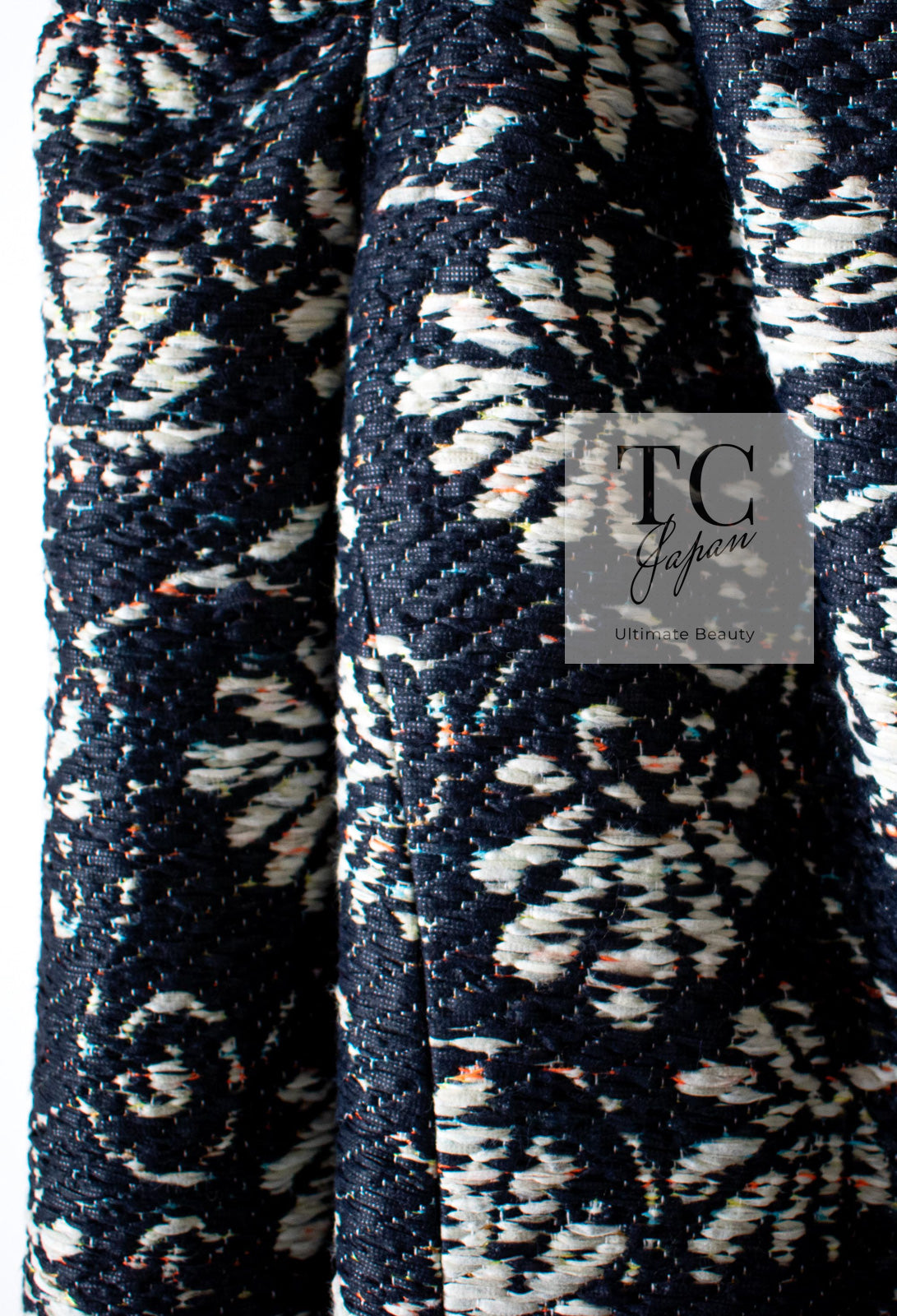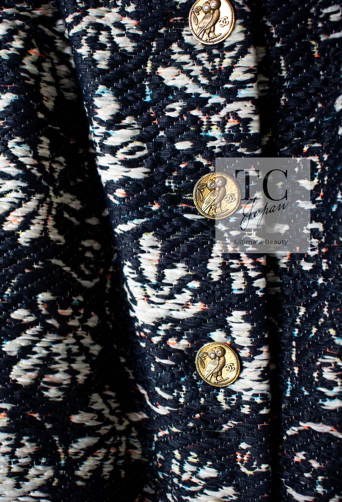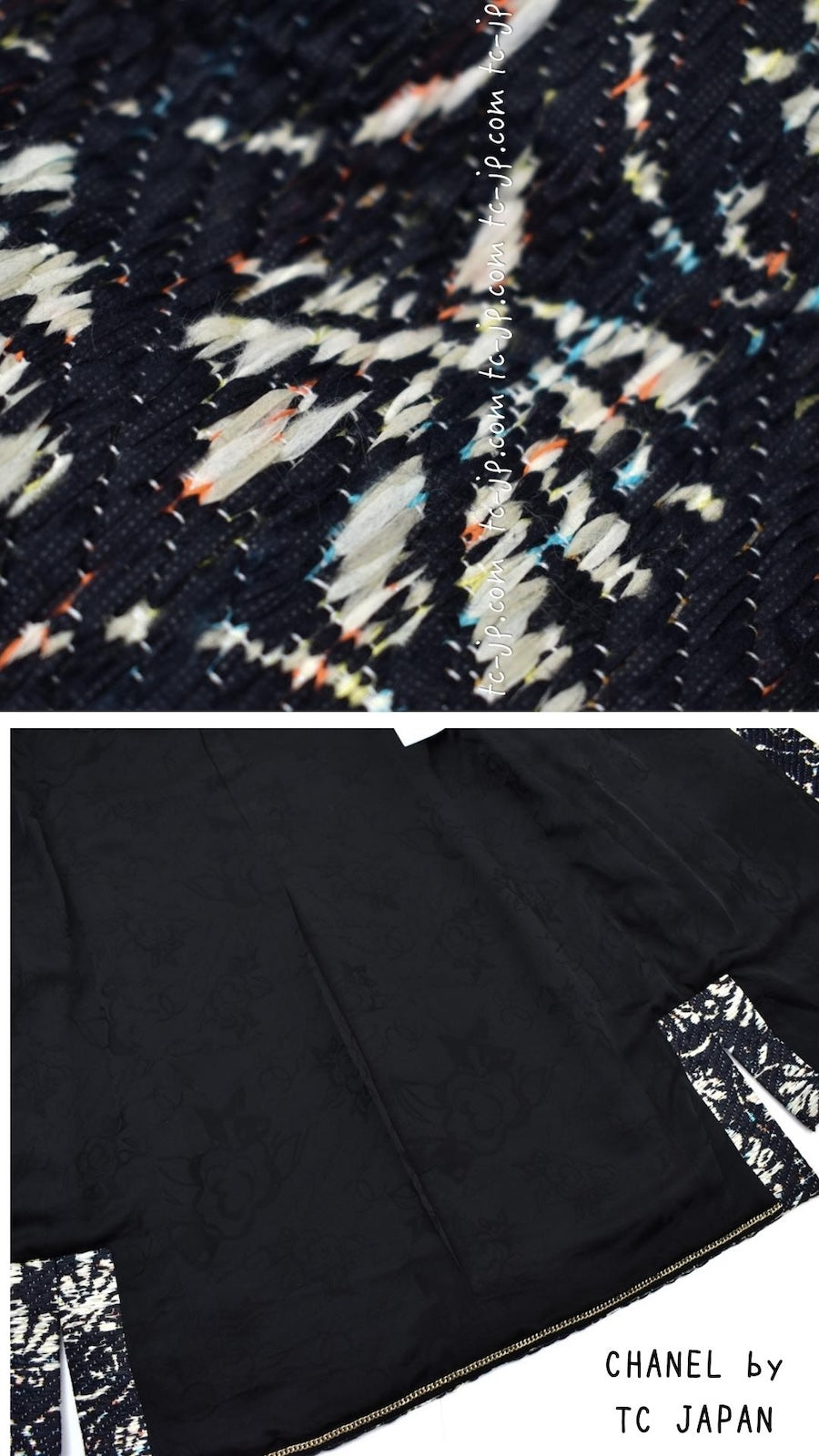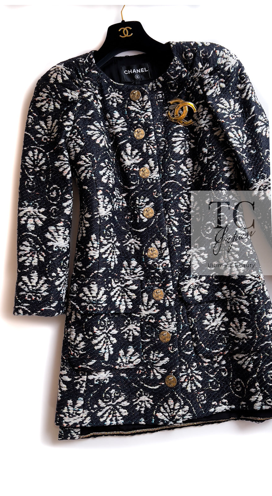 CHANEL 18C Navy Black Multi Camellia Jacquard Jacket Coat 34 36 シャネル ネイビー ブラック カメリア刺繍 ジャガード ジャケット コート