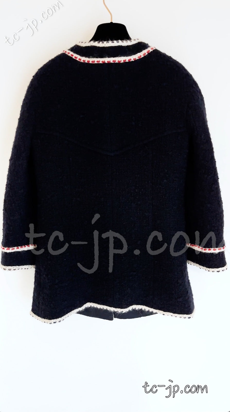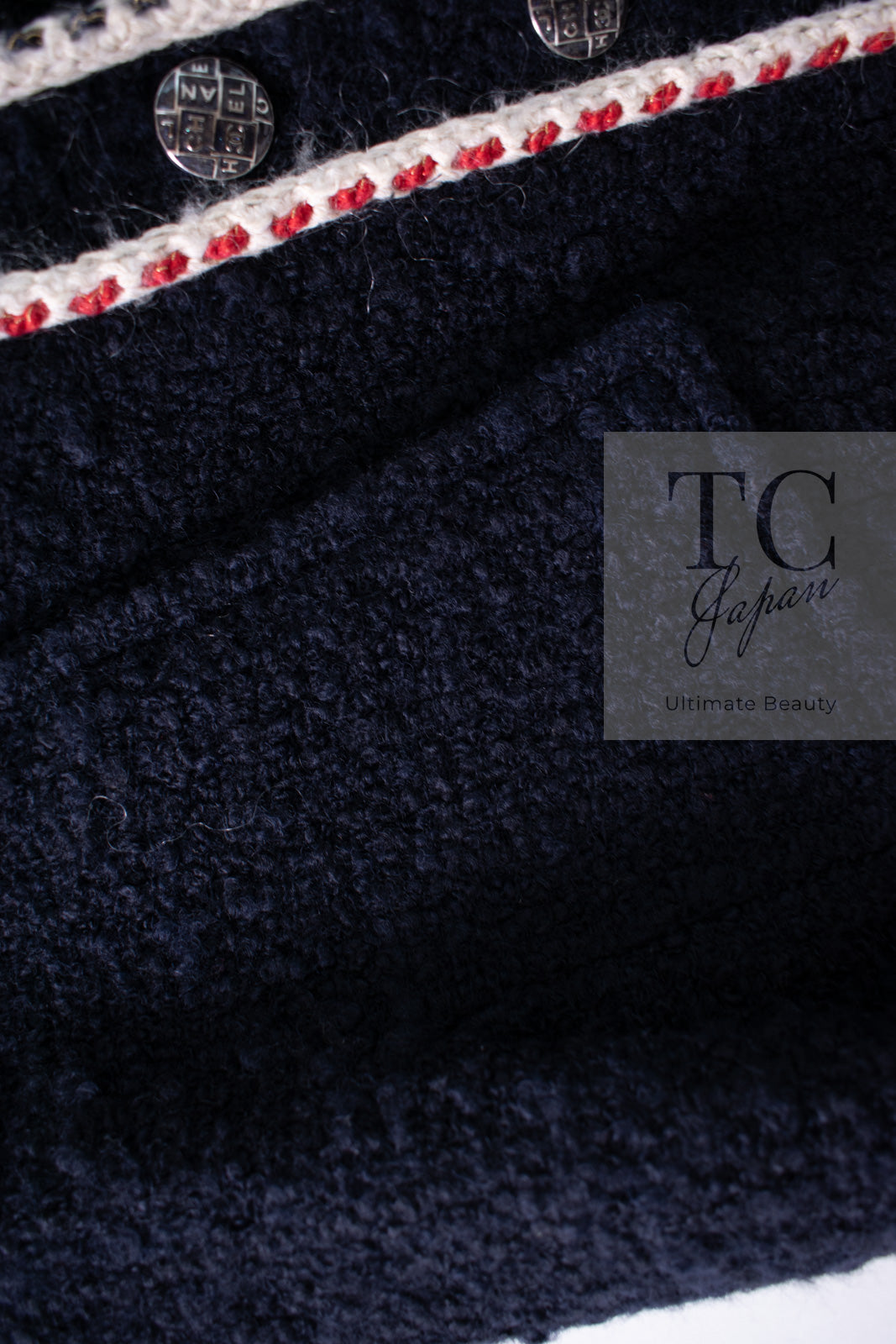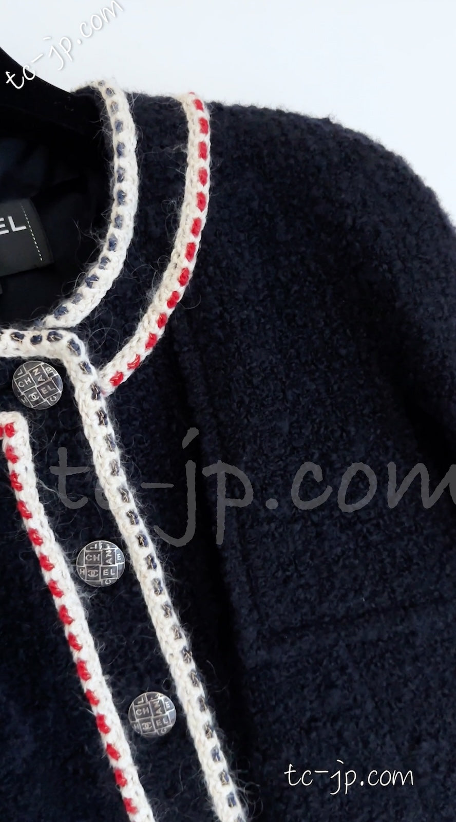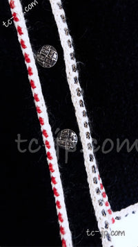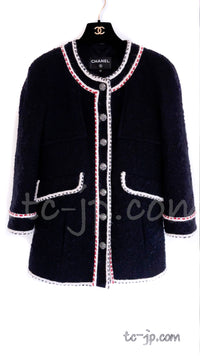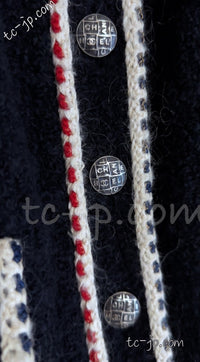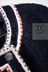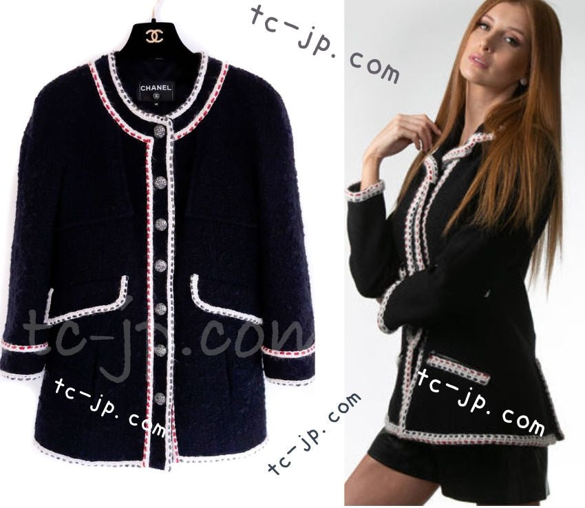 CHANEL 18PA Dark Navy Red Ivory Tricolor Braid Trim Wool Tweed Jacket Coat 36 38 シャネル ダーク ネイビー レッド アイボリー トリコロール ブレード トリム ウール ジャケット コート 即発
