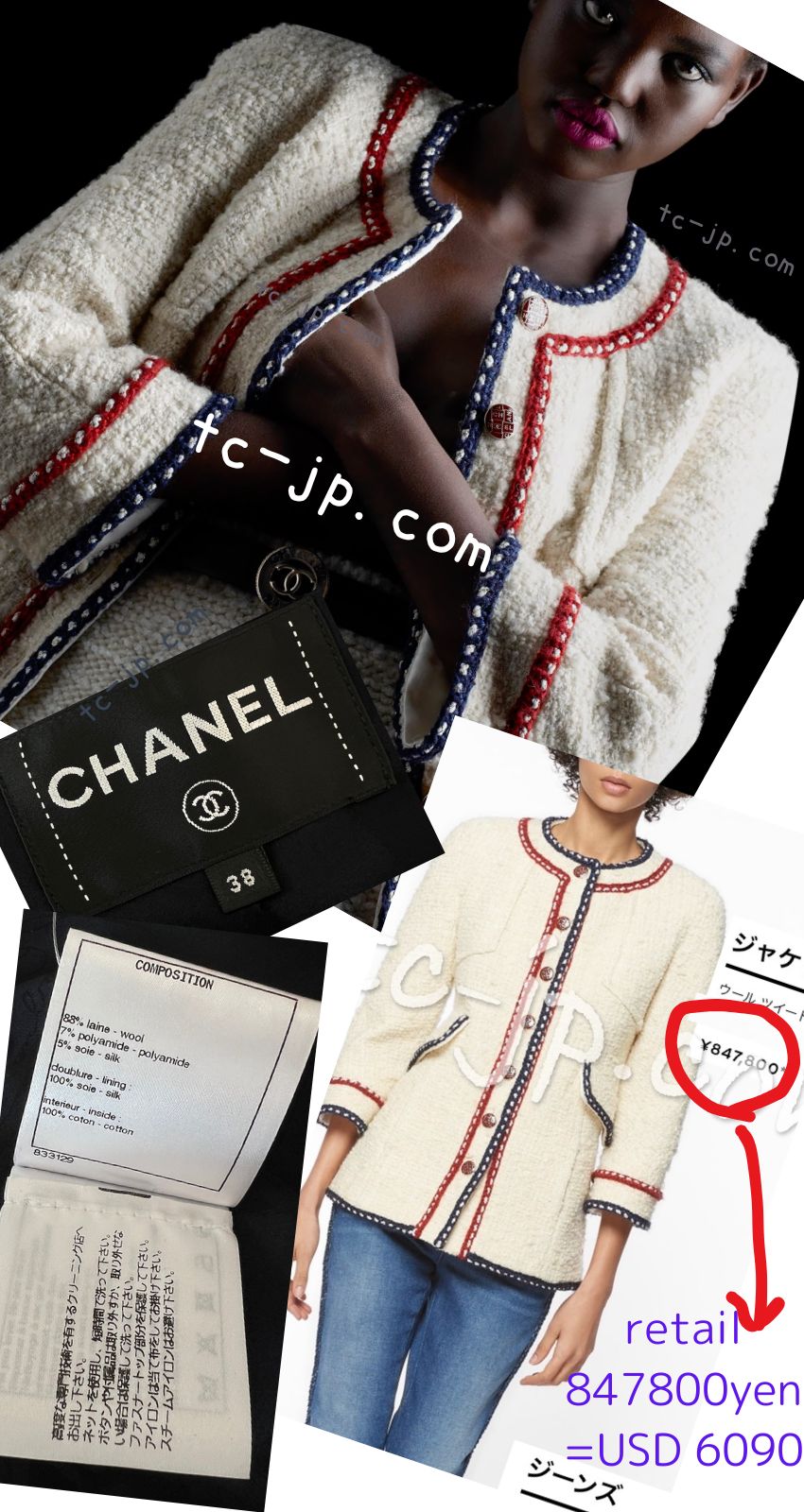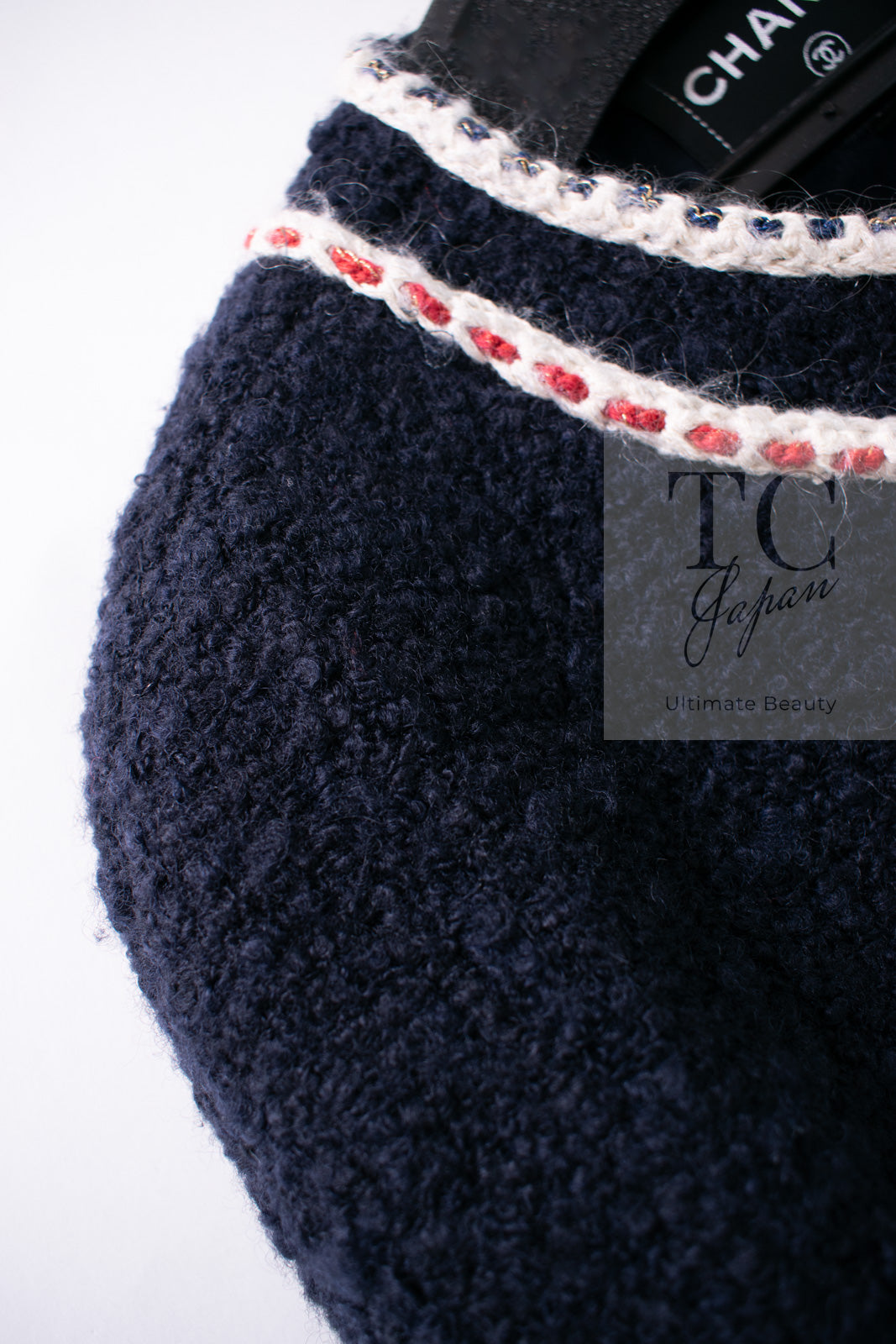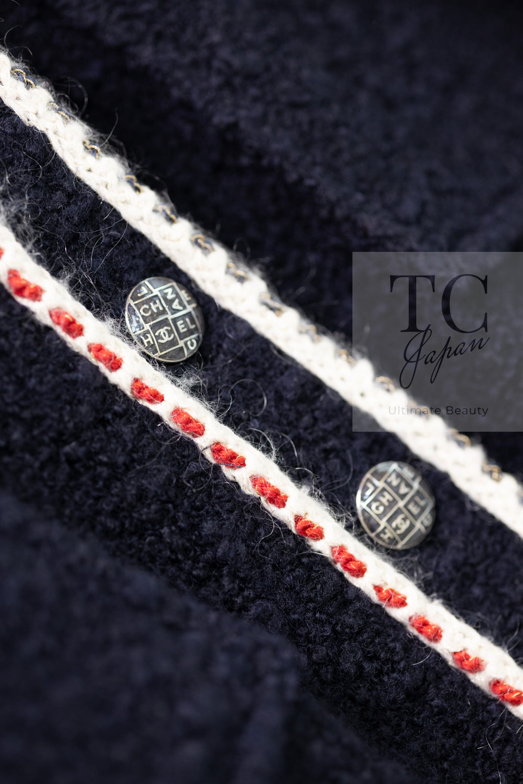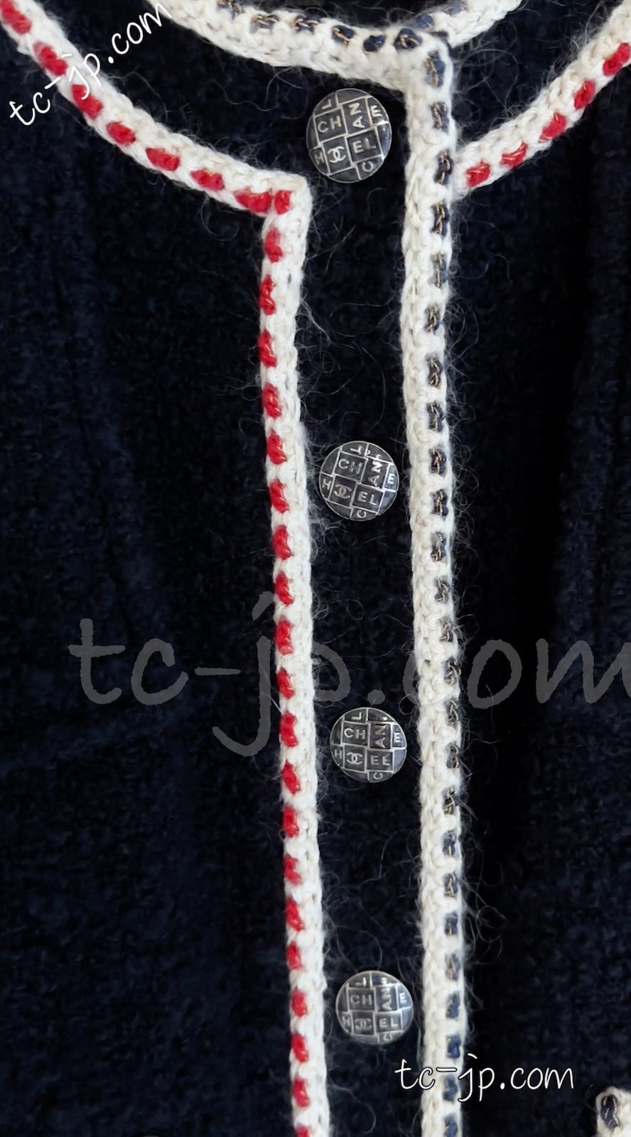 CHANEL 18PA Dark Navy Red Ivory Tricolor Braid Trim Wool Tweed Jacket Coat 36 38 シャネル ダーク ネイビー レッド アイボリー トリコロール ブレード トリム ウール ジャケット コート 即発