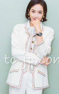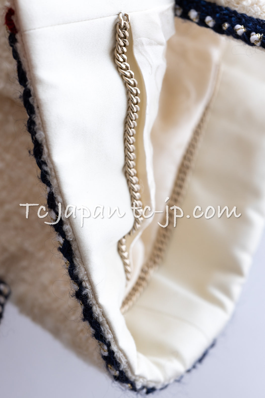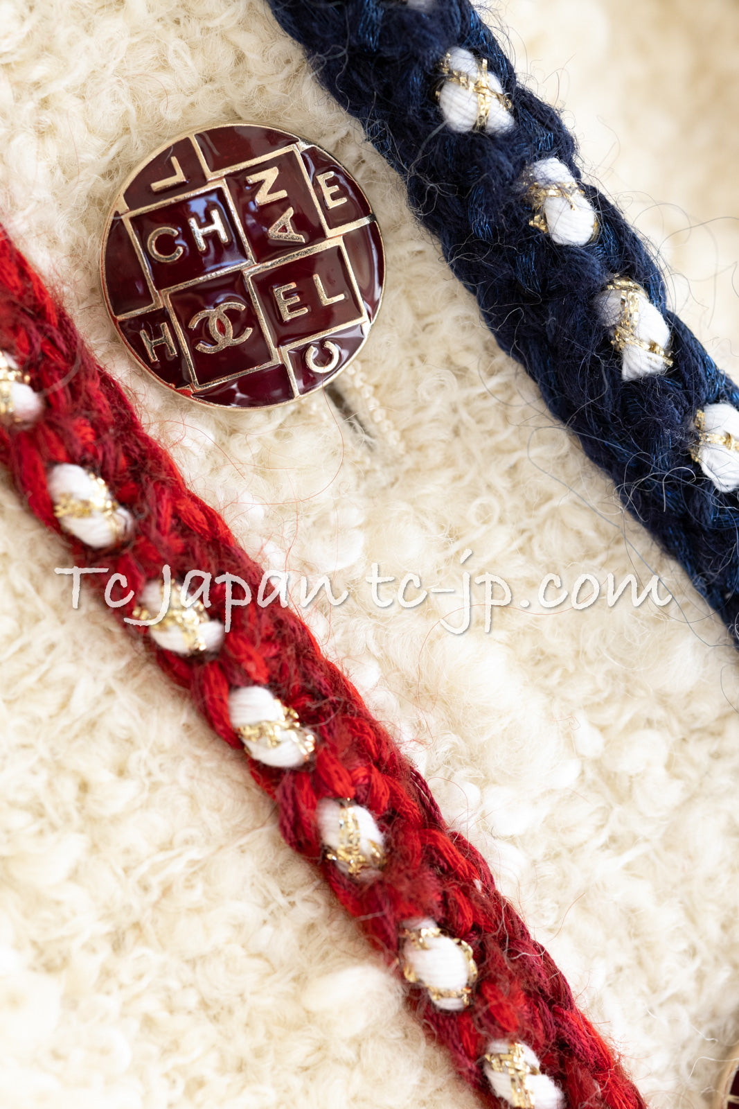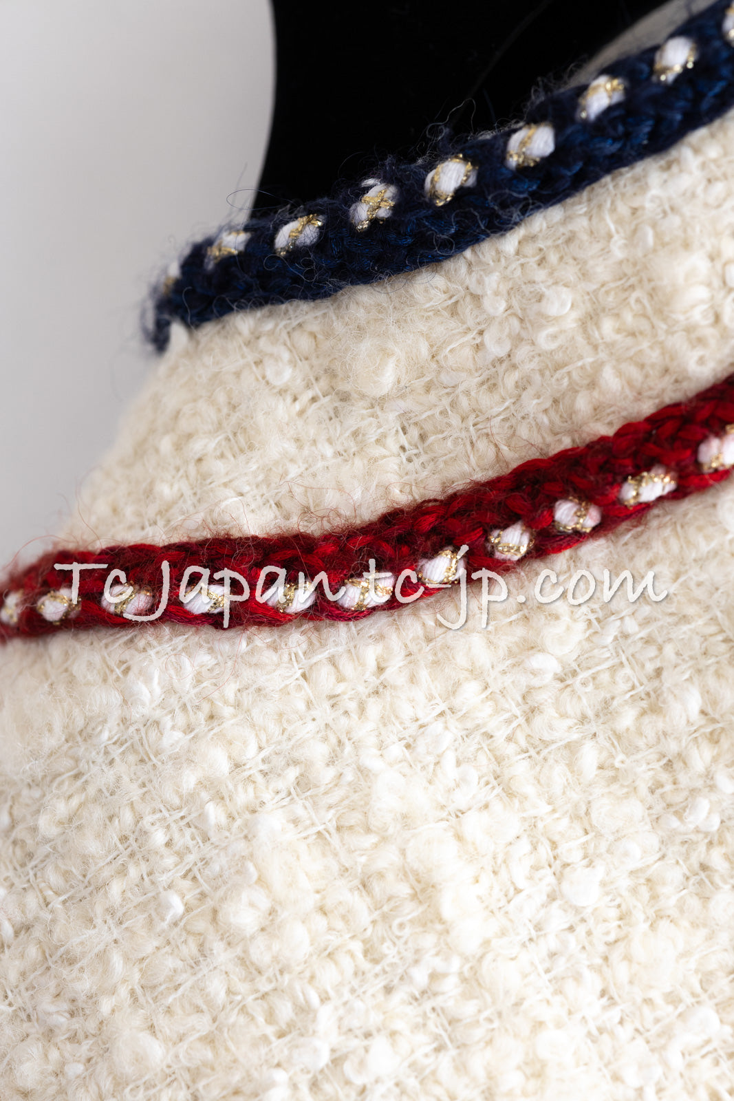 CHANEL 18PA Ivory Navy Red Tricolor Braid Trim Wool Tweed Jacket Coat 36 38 シャネル アイボリー ネイビー レッド トリコロール ブレード トリム ウール ジャケット コート 即発