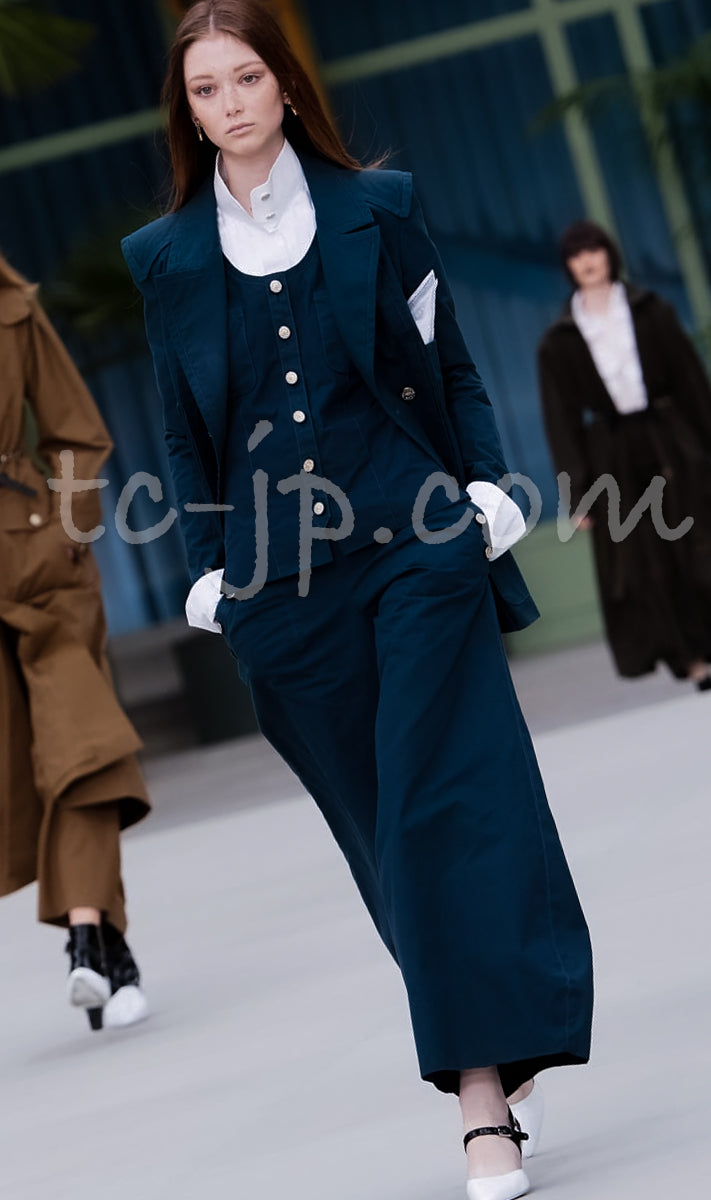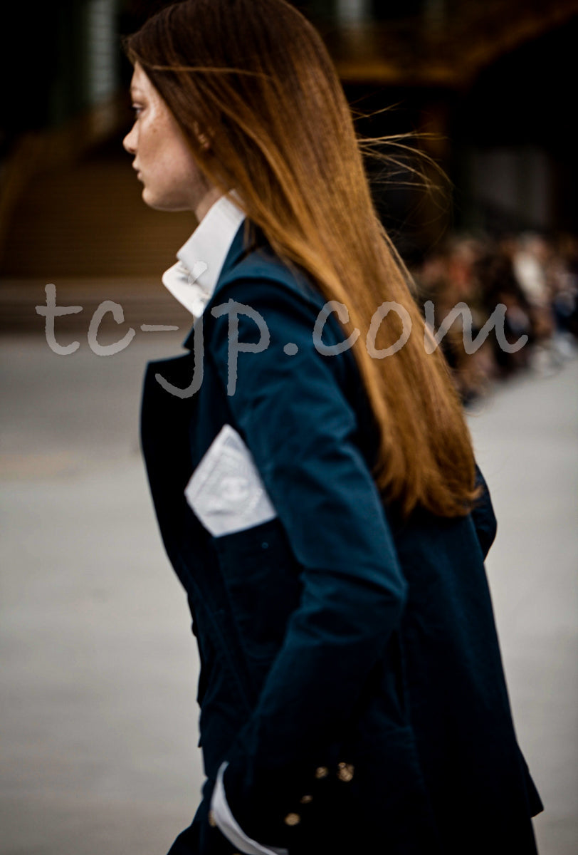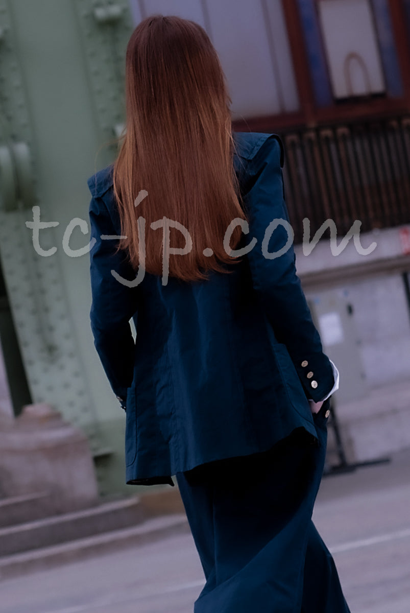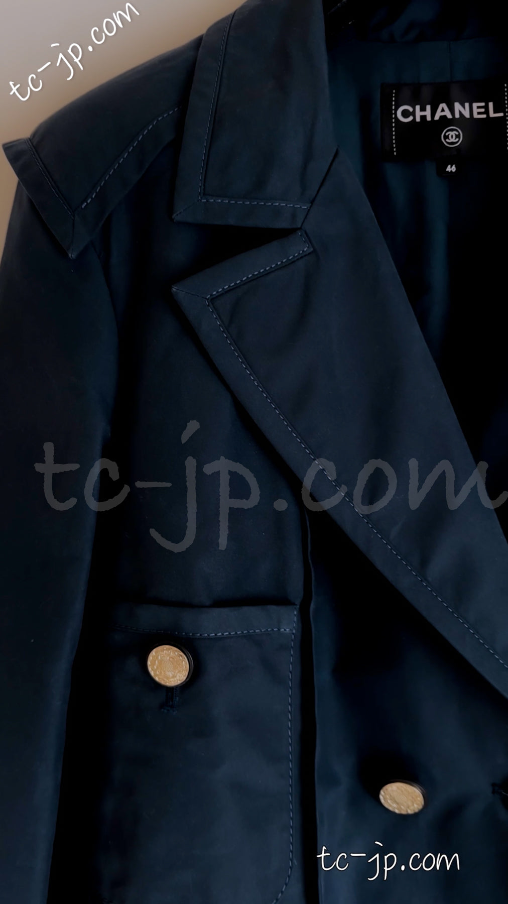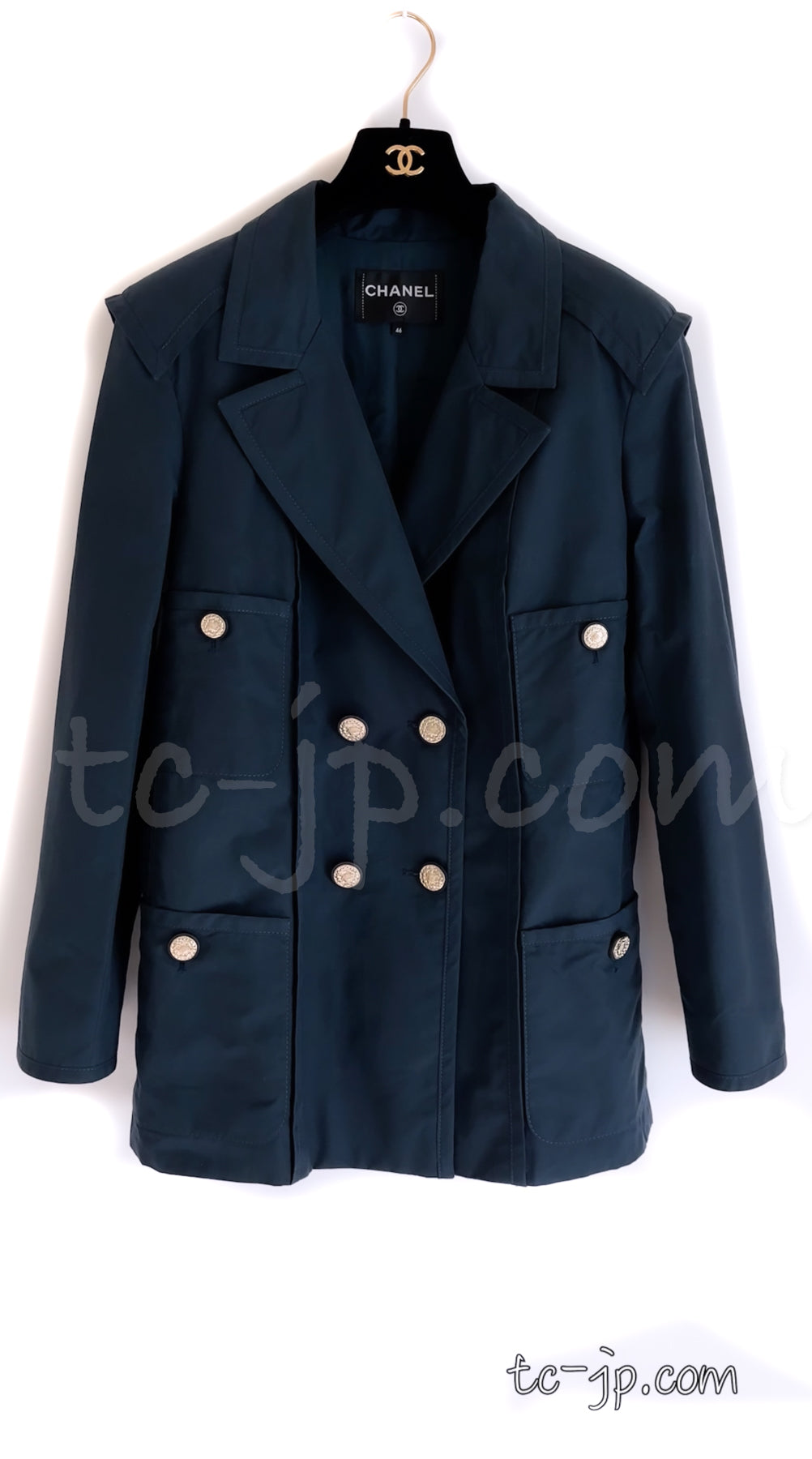 CHANEL 20C Dark Navy Olive Peacoat Cotton Jacket 46 シャネル ダーク ネイビー オリーブ ピーコート コットン ジャケット 即発