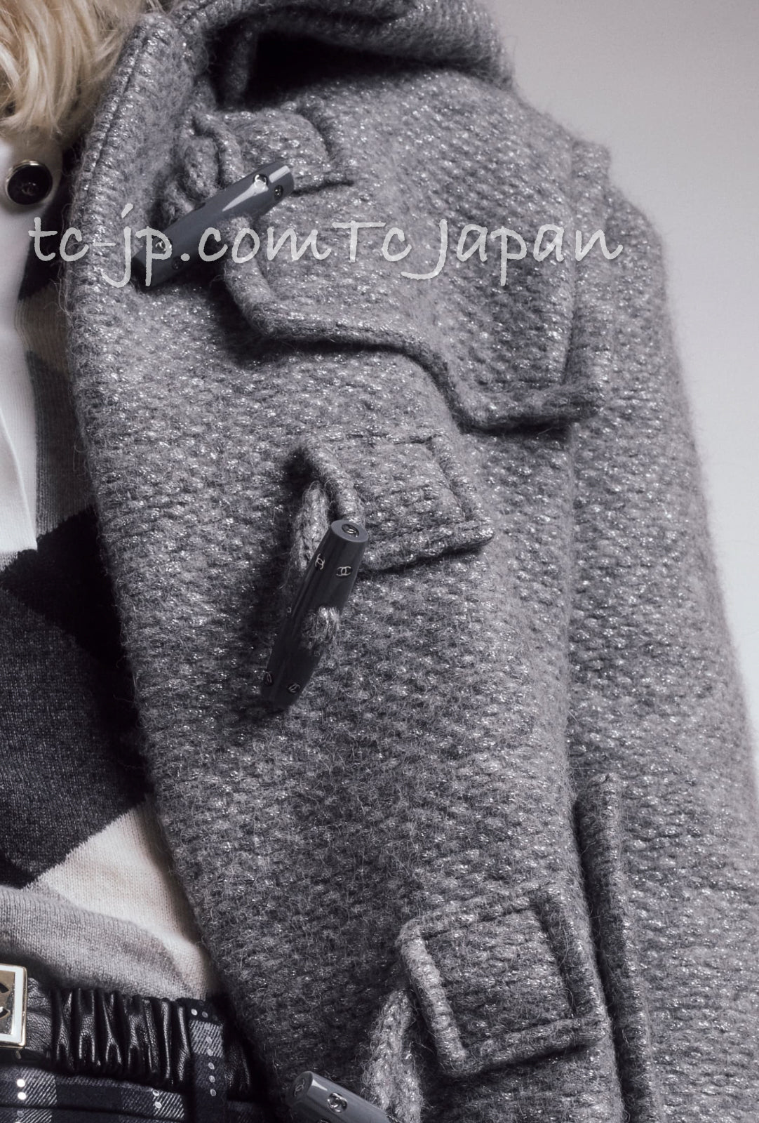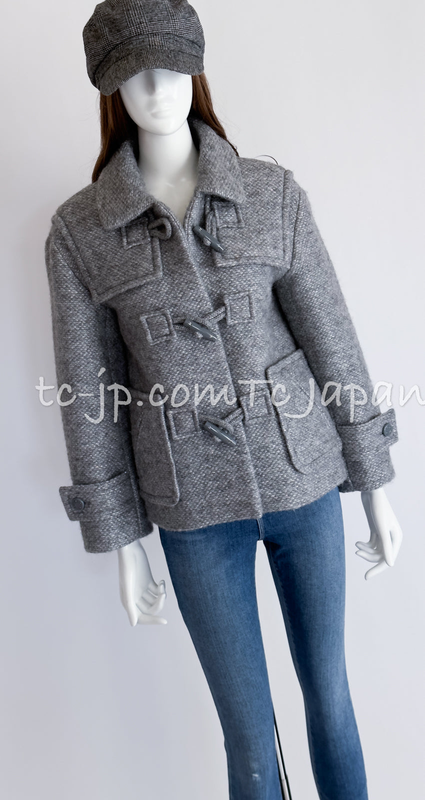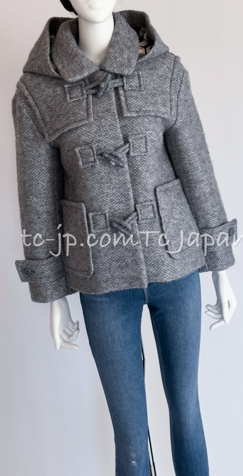 CHANEL 21B Gray Silver Wool Alpaca Blouson Duffel Coat 36 38 42 44 46 シャネル グレー シルバー ウール アルパカ ブルゾン ダッフル コート 即発