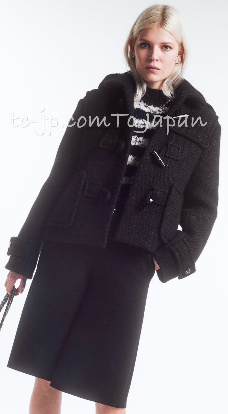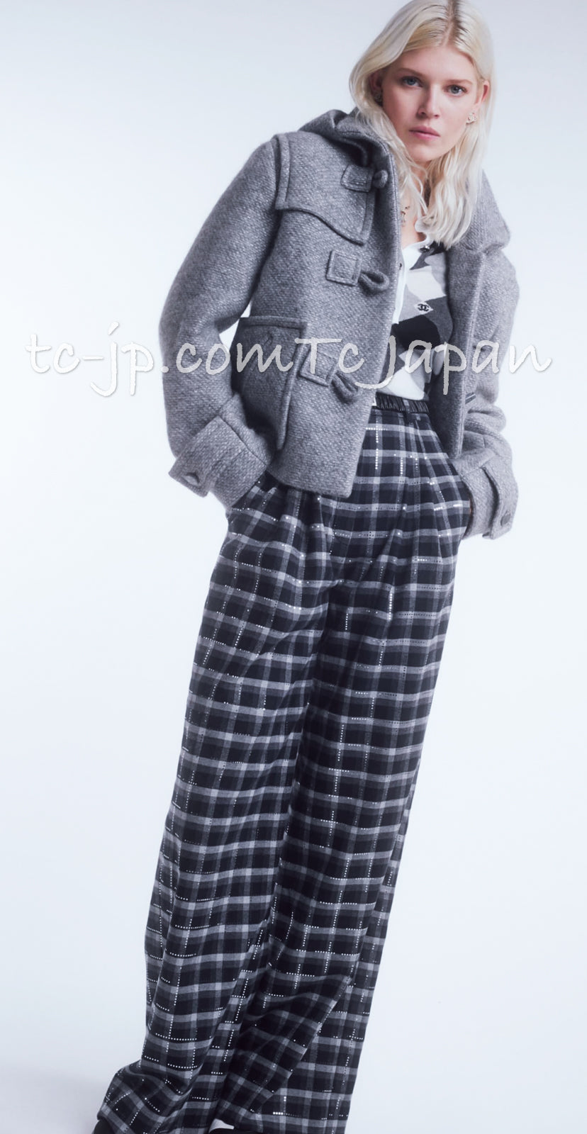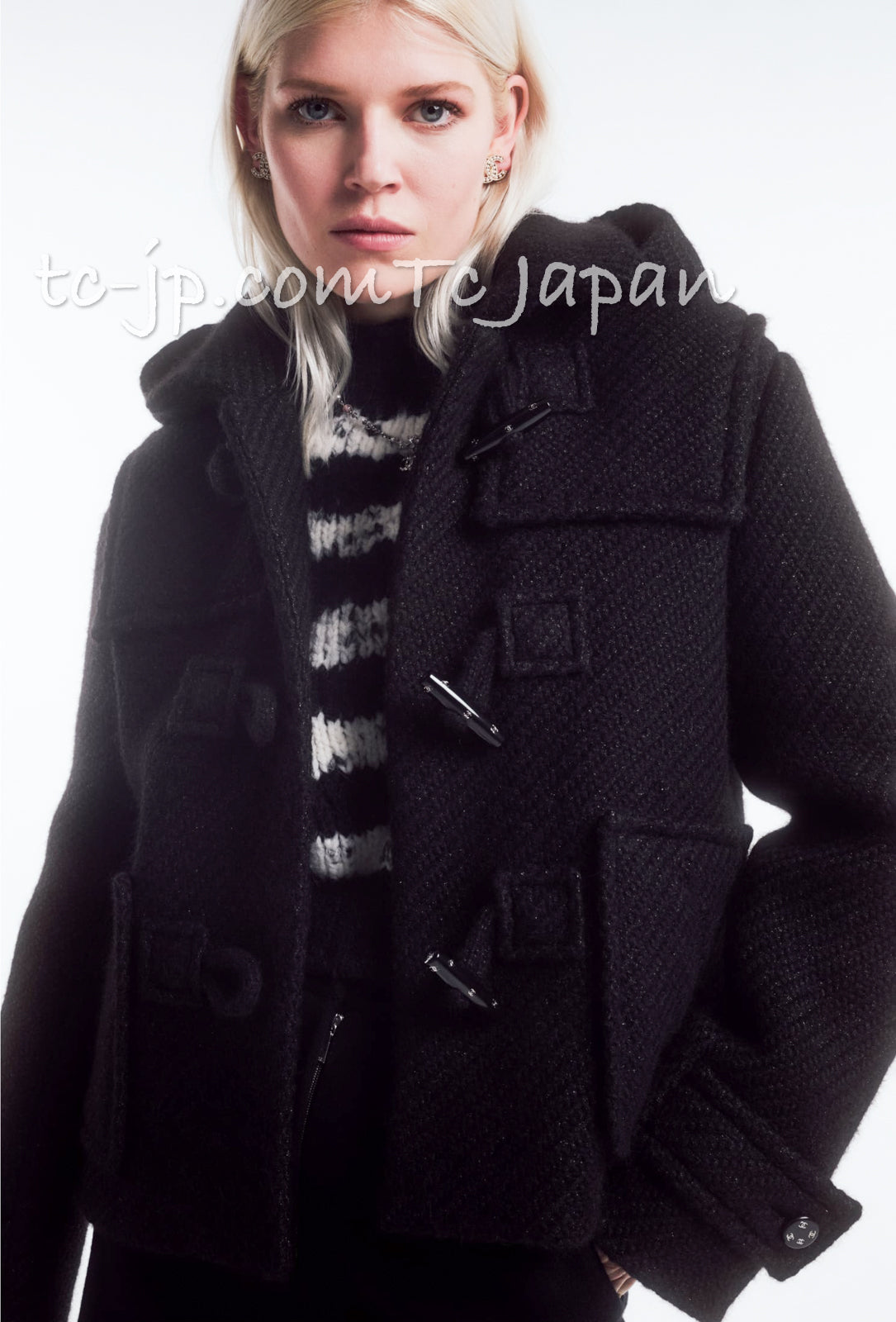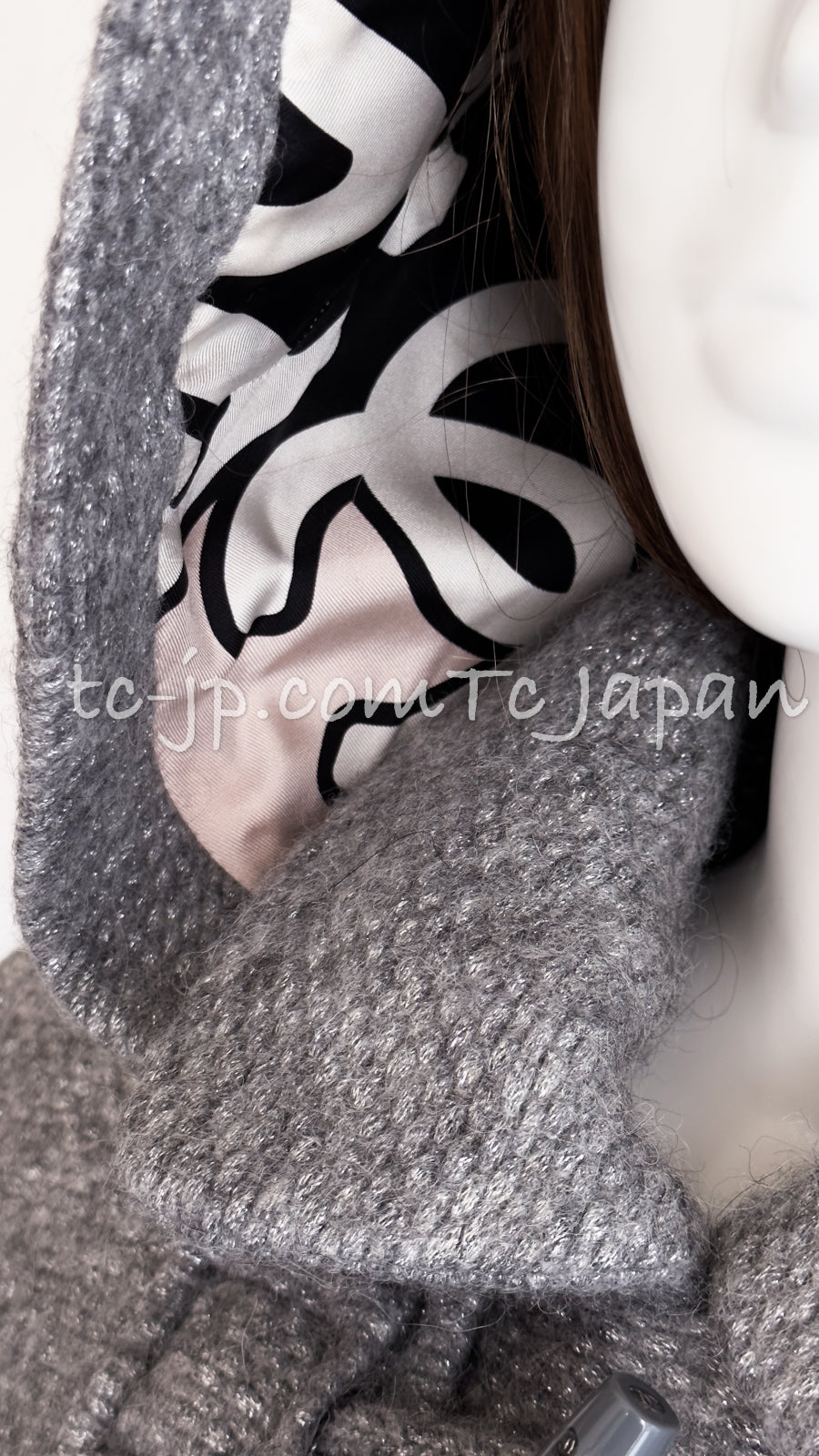 CHANEL 21B Gray Silver Wool Alpaca Blouson Duffel Coat 36 38 42 44 46 シャネル グレー シルバー ウール アルパカ ブルゾン ダッフル コート 即発