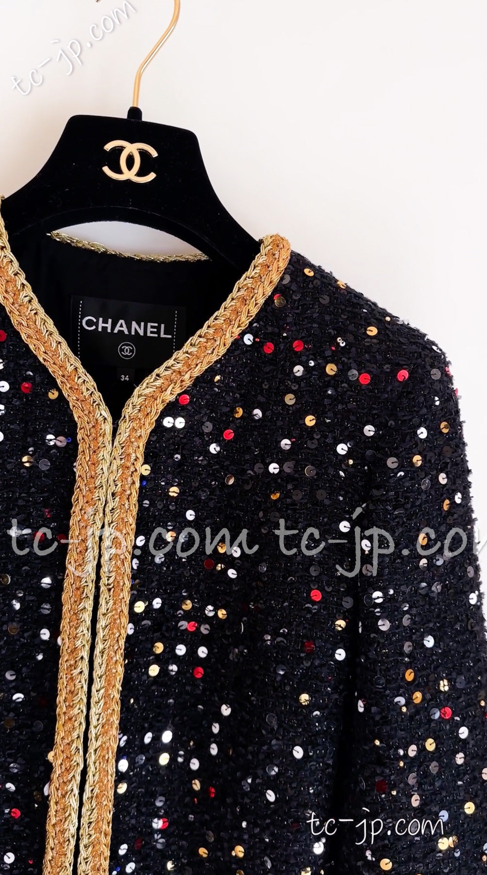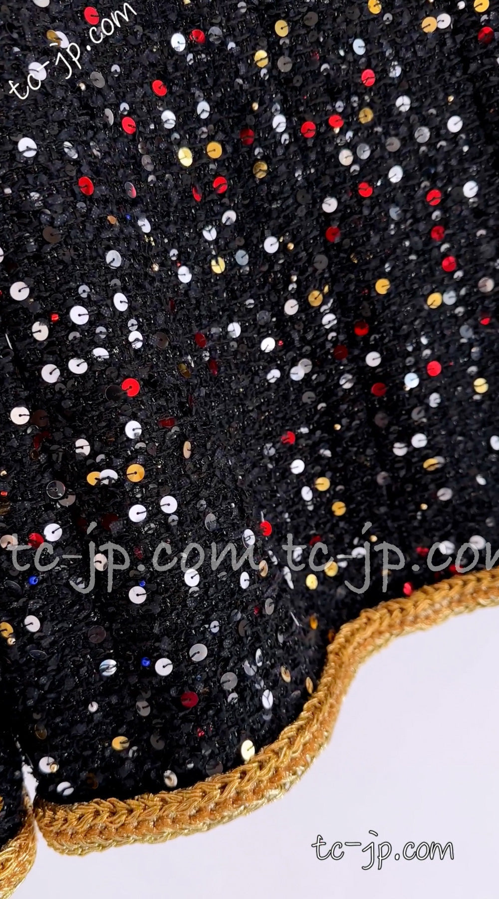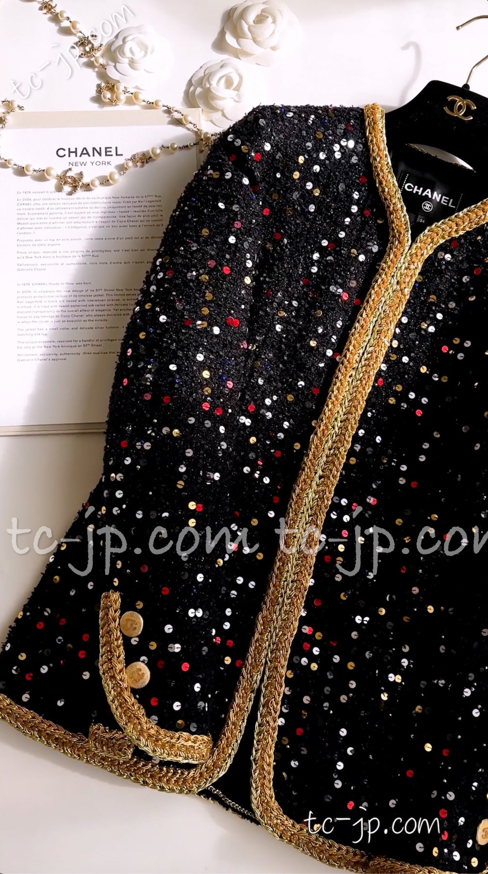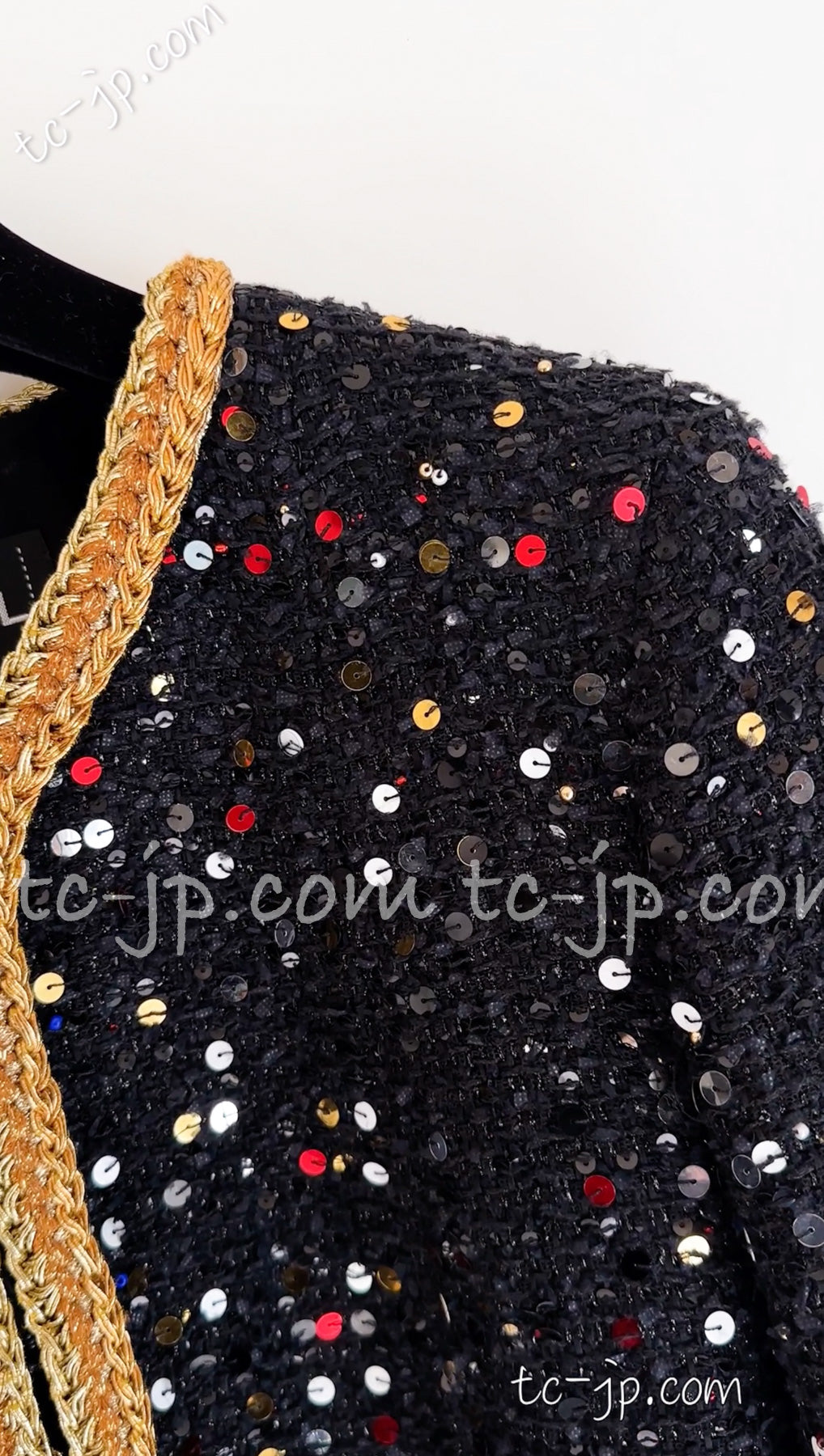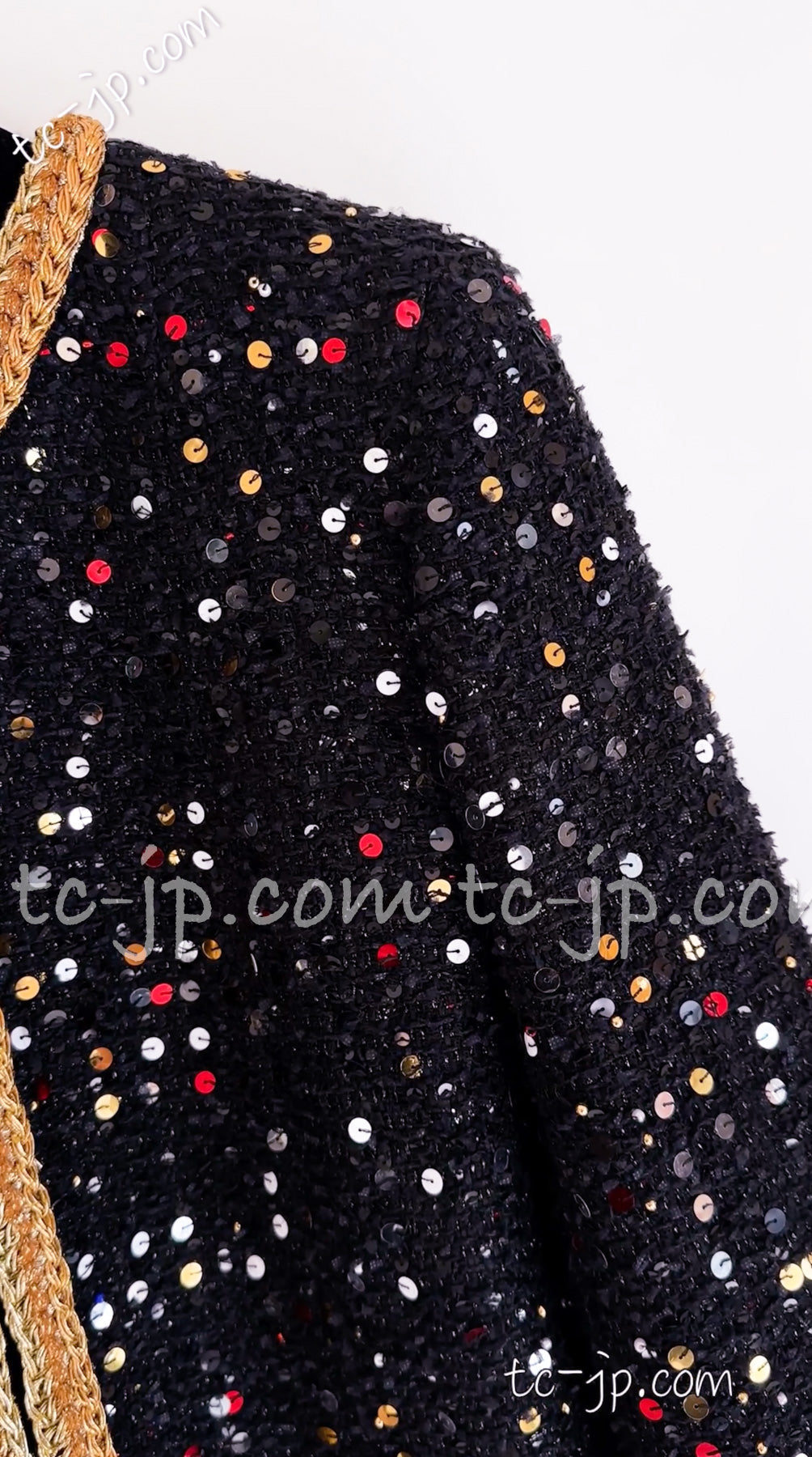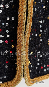 CHANEL 22S Black Sequined Gold Trim Tweed Jacket 36 38 シャネル ブラック スパンコール ゴールド トリム ジャケット 即発