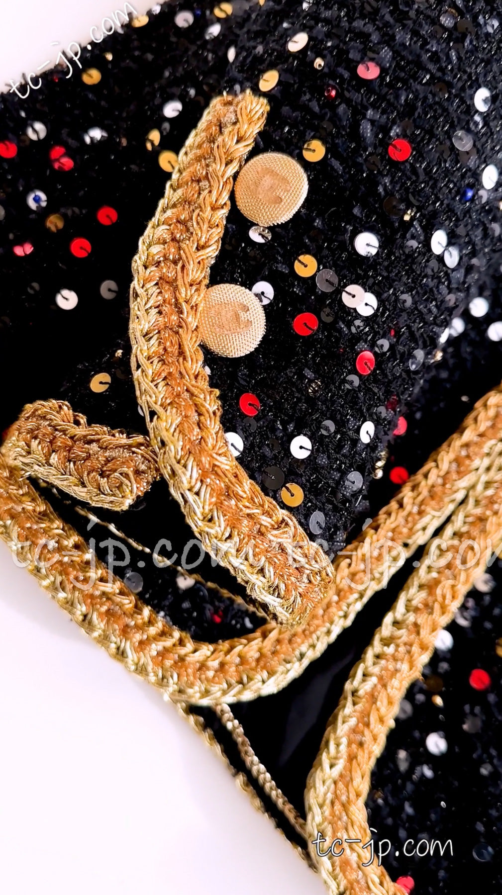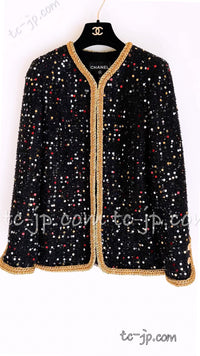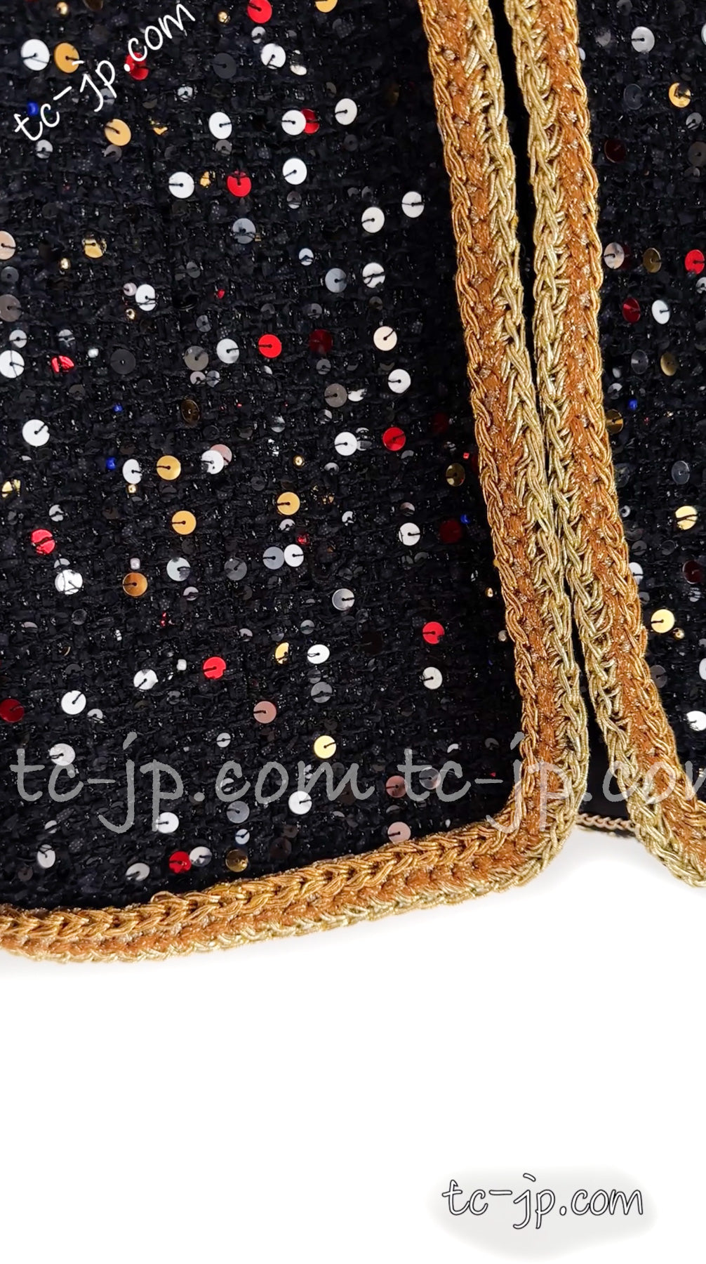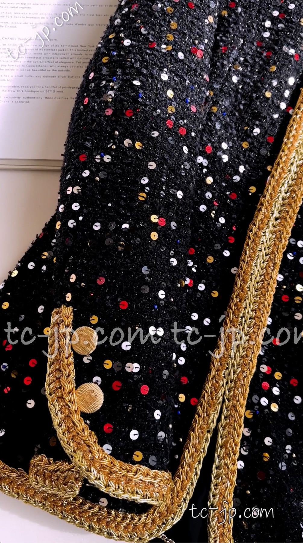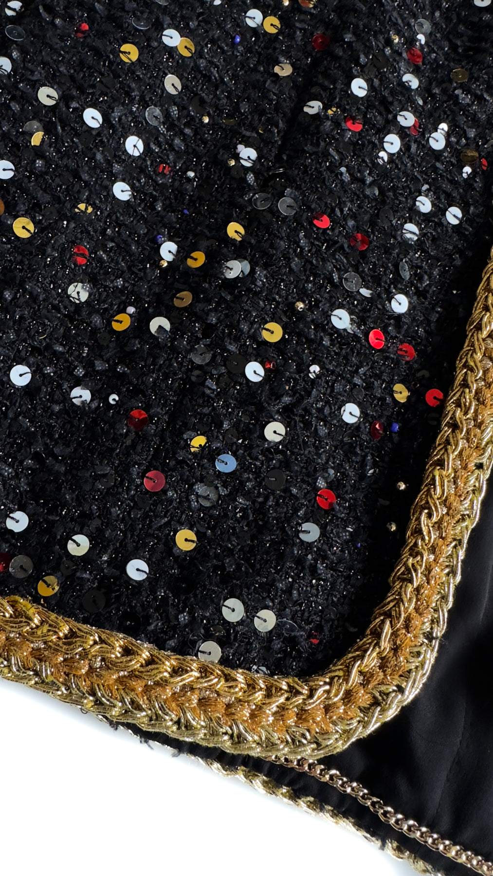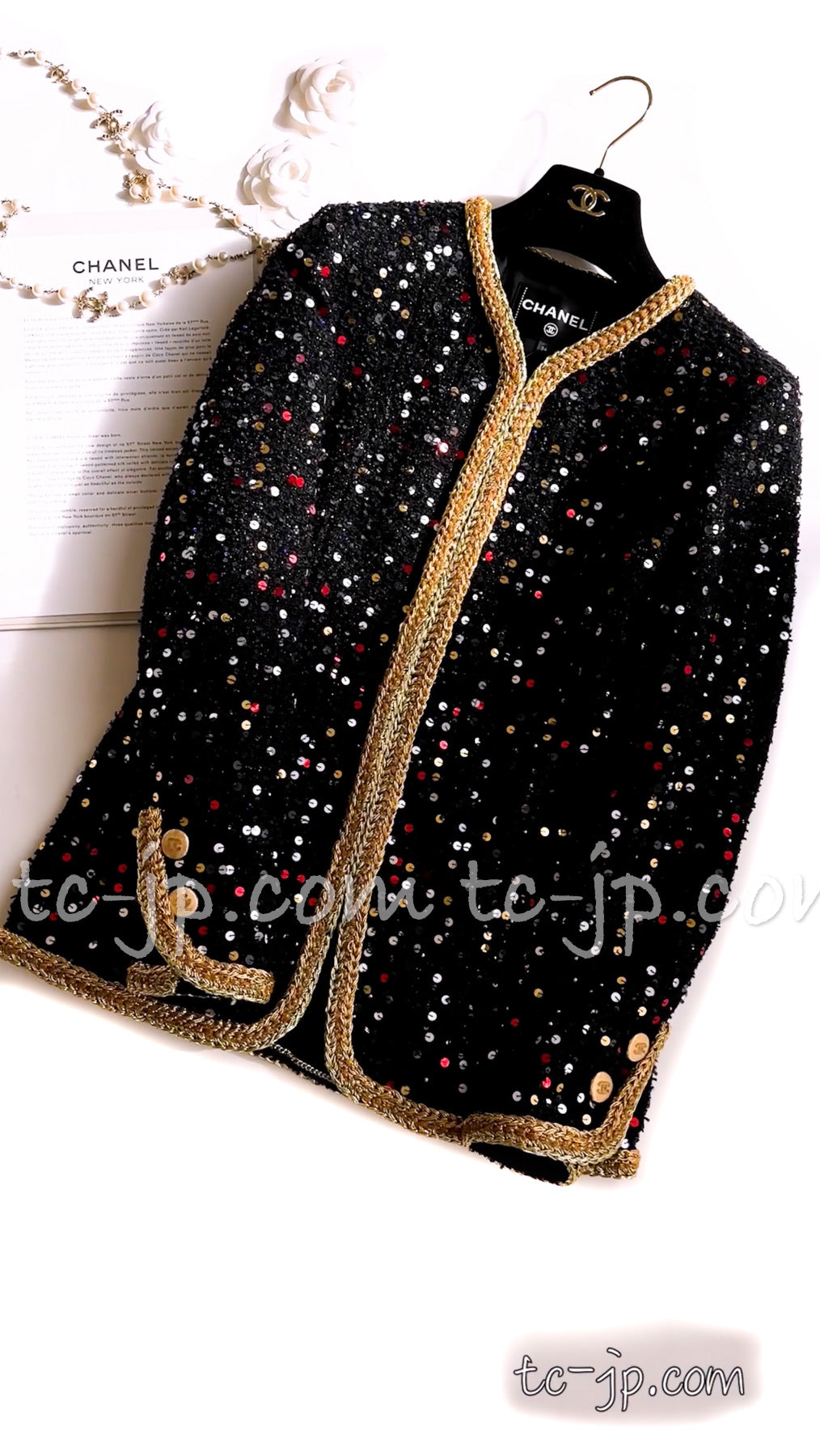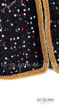 CHANEL 22S Black Sequined Gold Trim Tweed Jacket 36 38 シャネル ブラック スパンコール ゴールド トリム ジャケット 即発