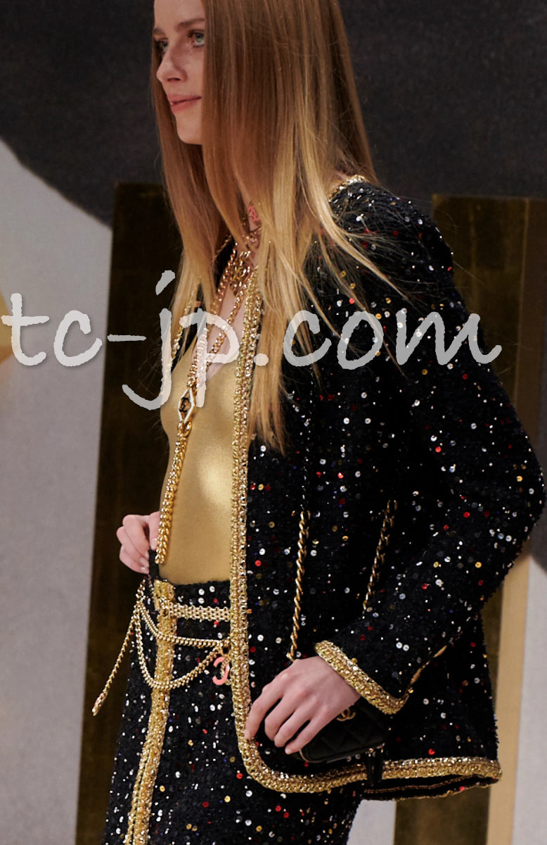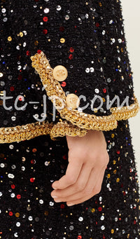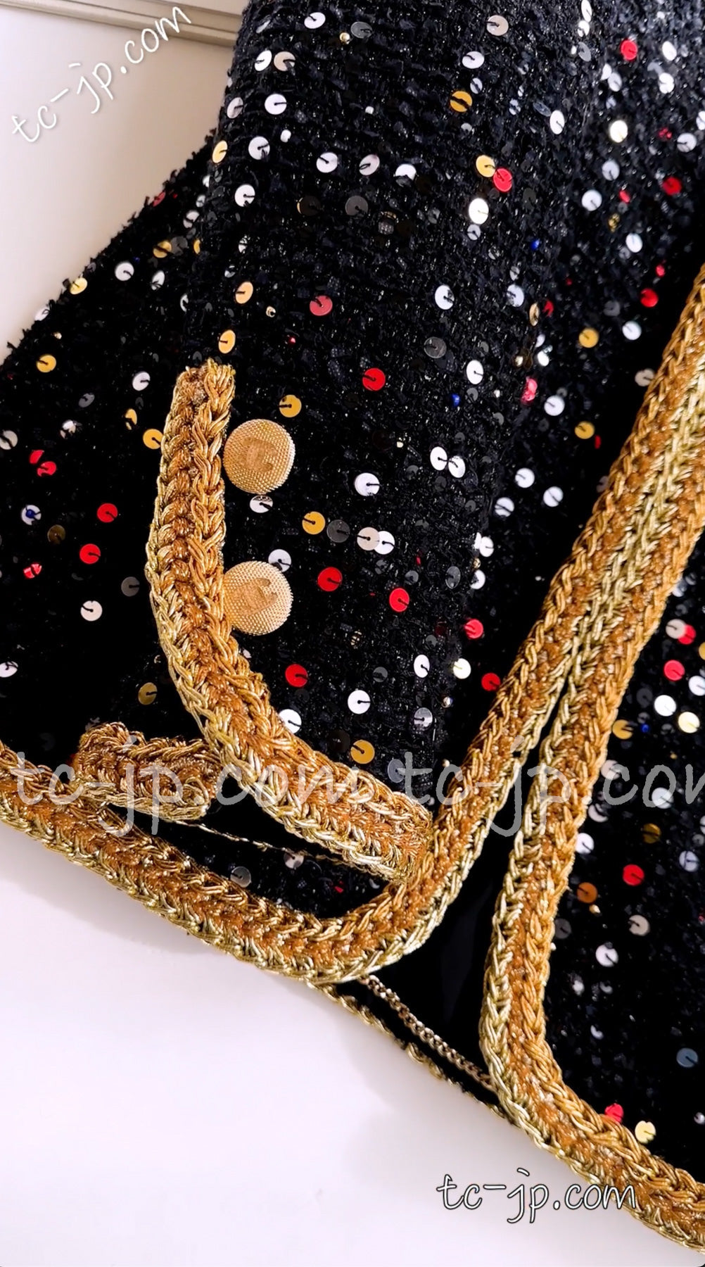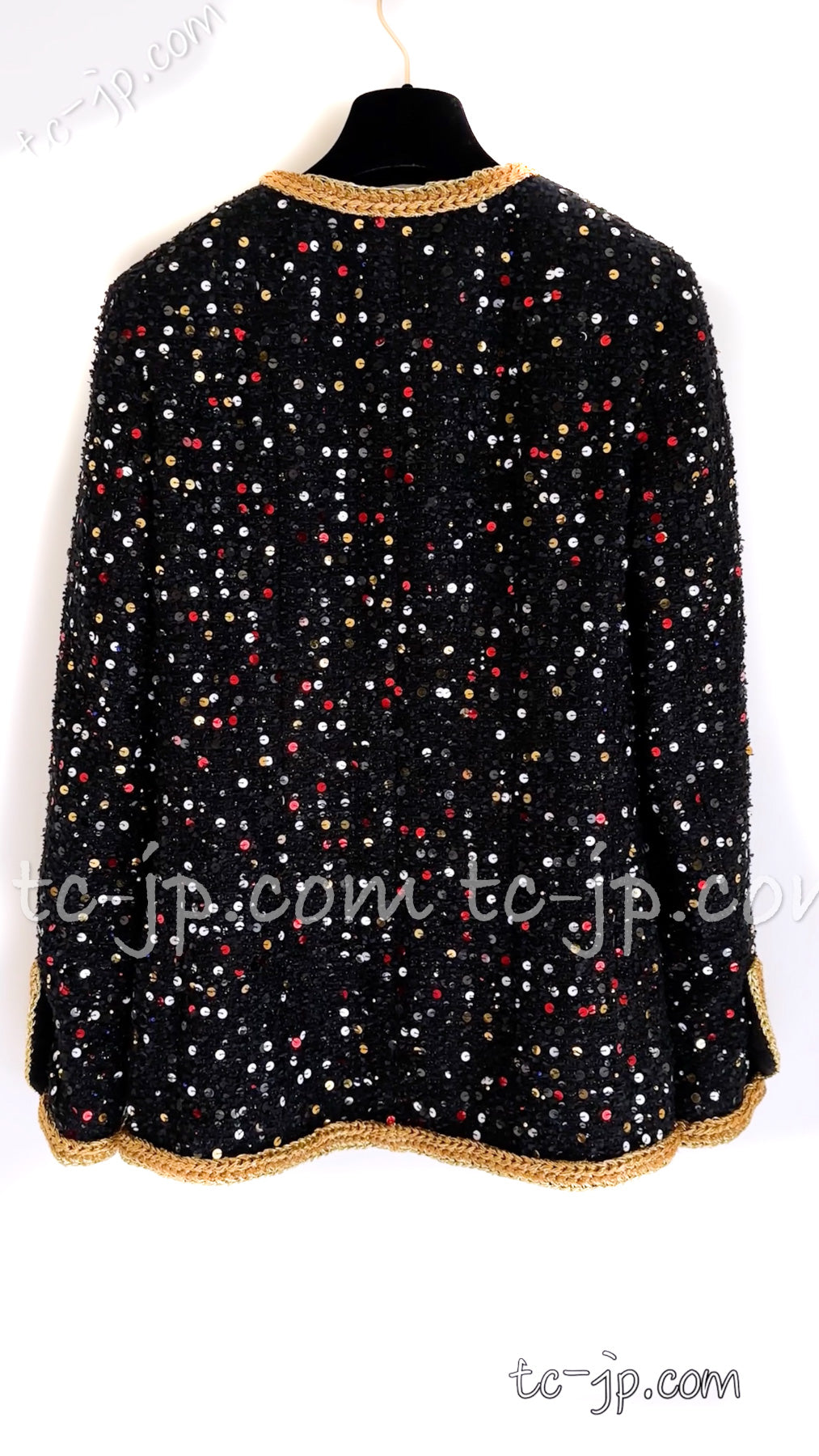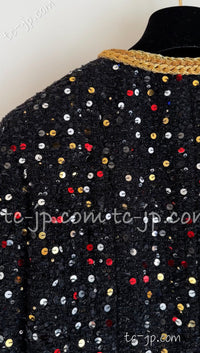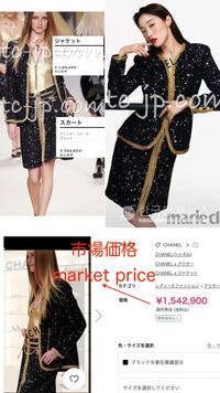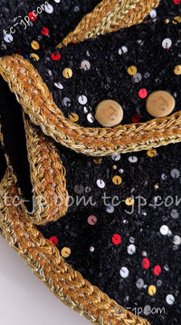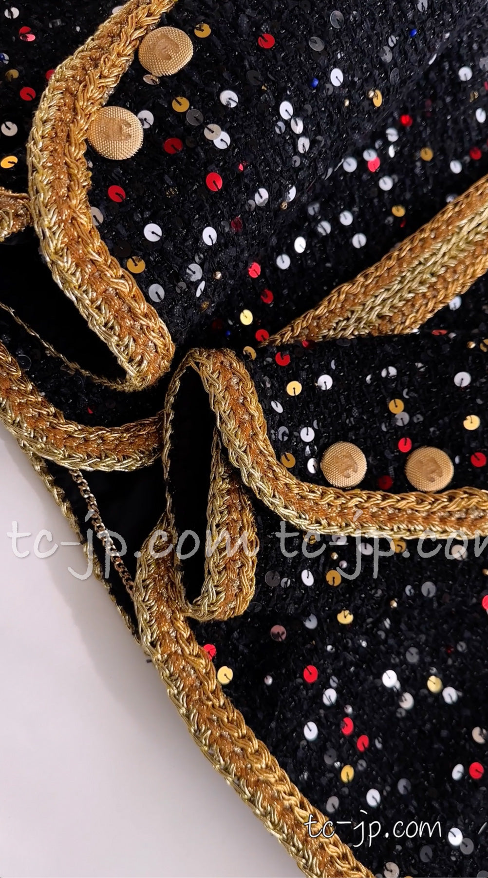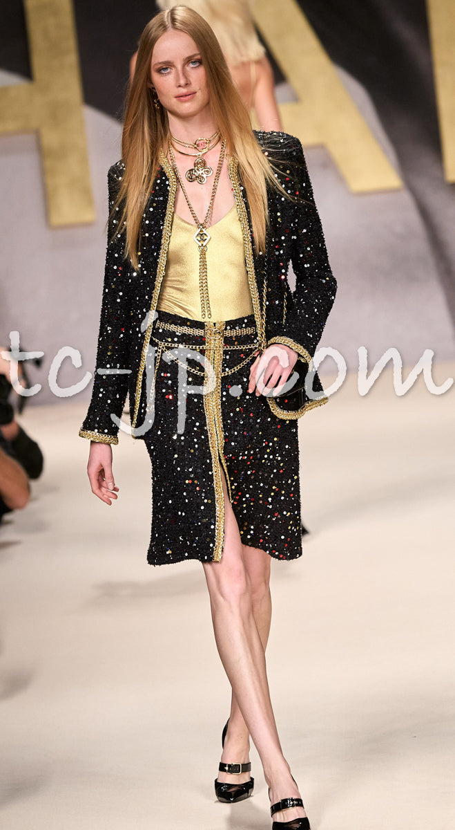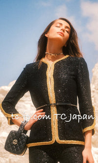 CHANEL 22S Black Sequined Gold Trim Tweed Jacket 36 38 シャネル ブラック スパンコール ゴールド トリム ジャケット 即発