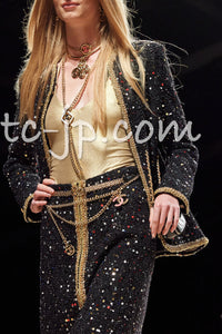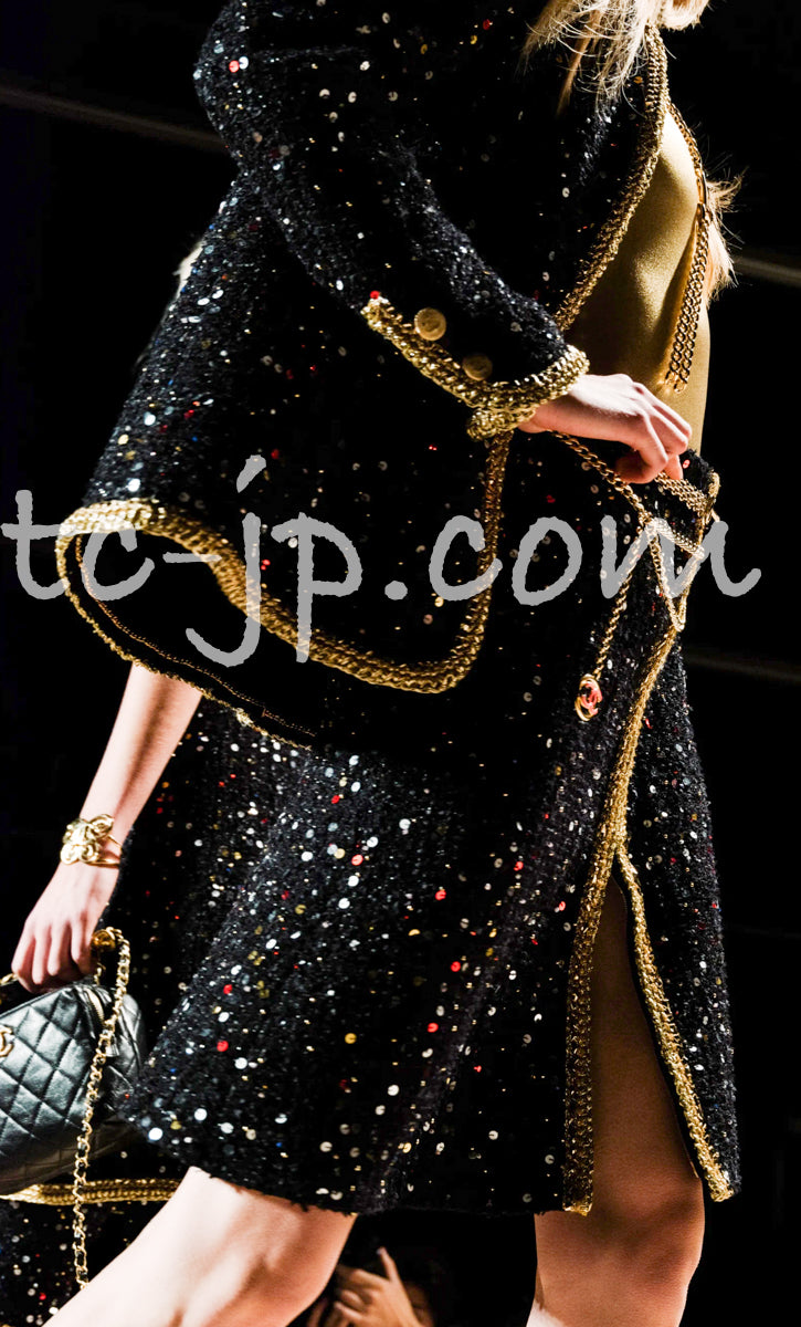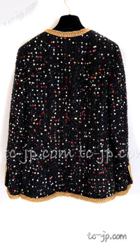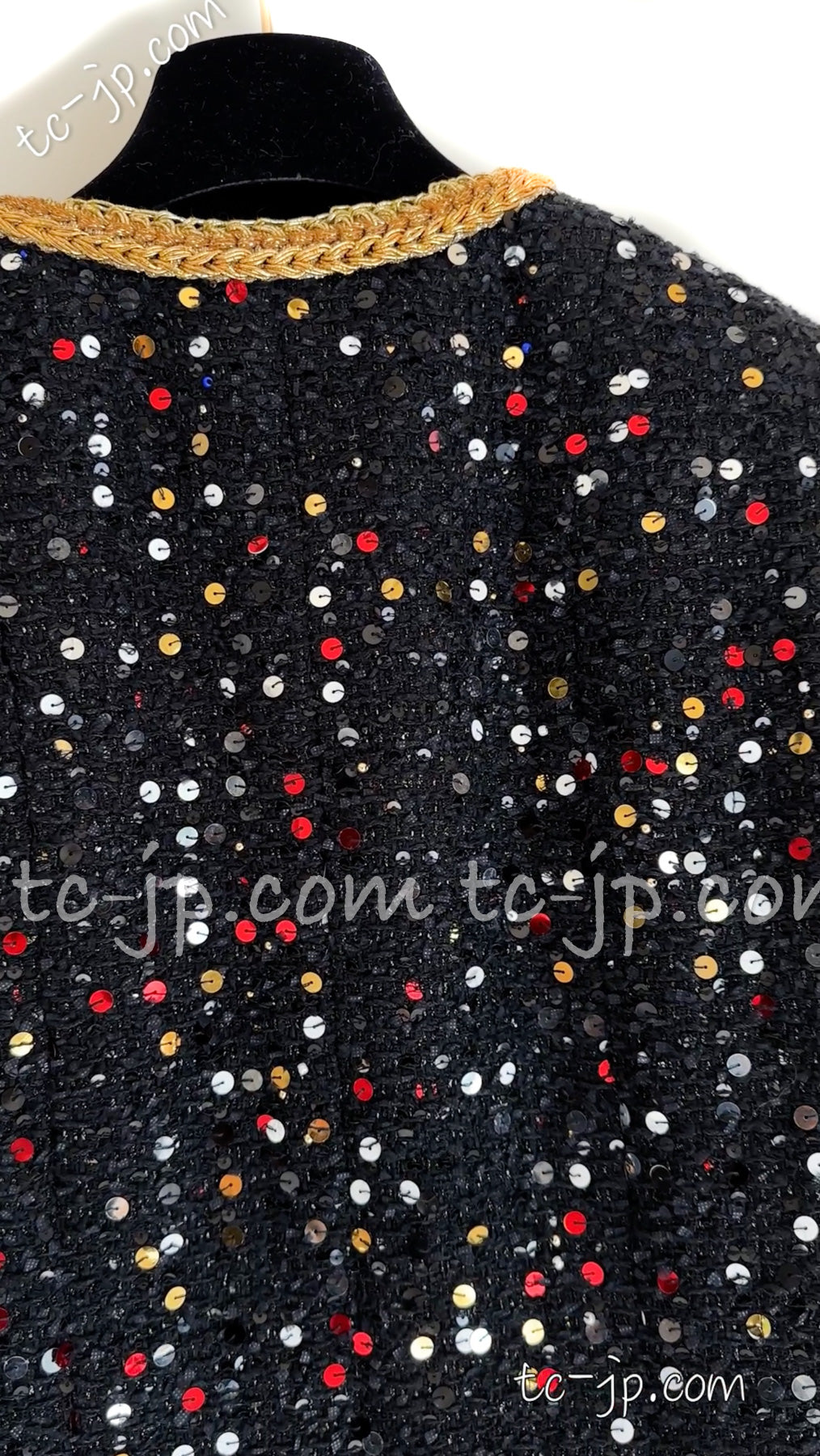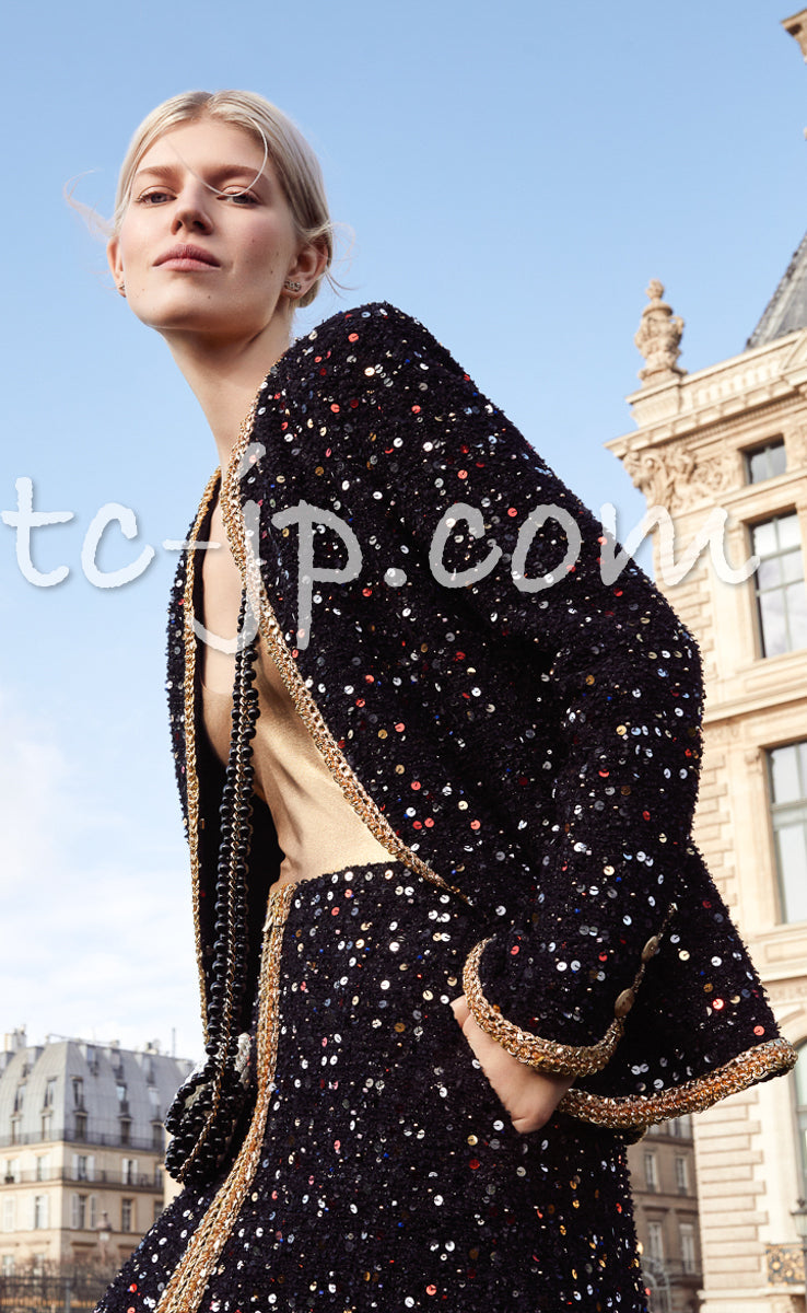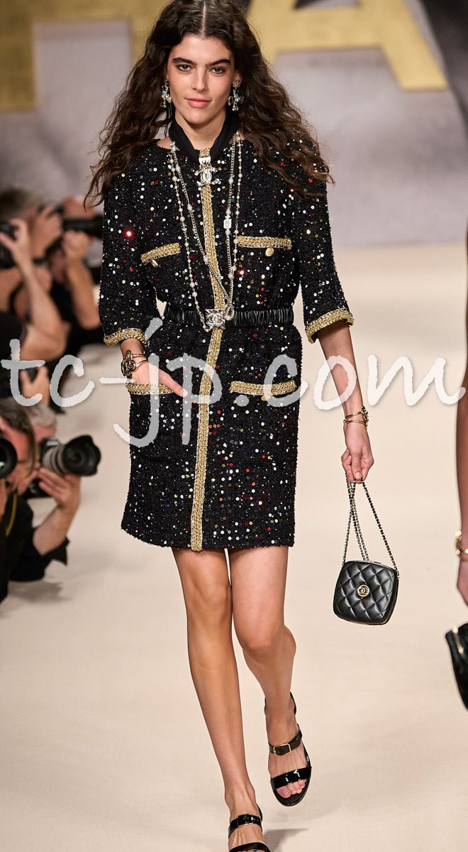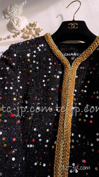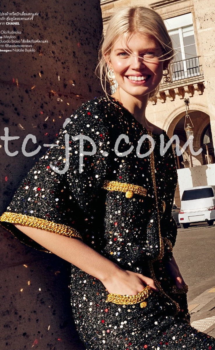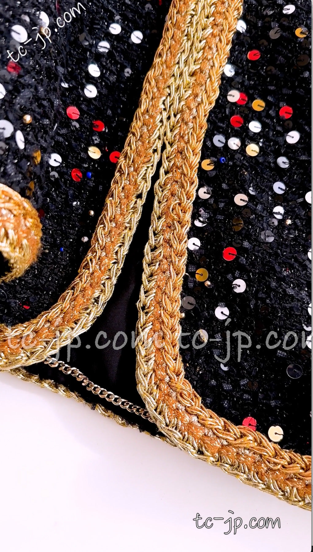 CHANEL 22S Black Sequined Gold Trim Tweed Jacket 36 38 シャネル ブラック スパンコール ゴールド トリム ジャケット 即発