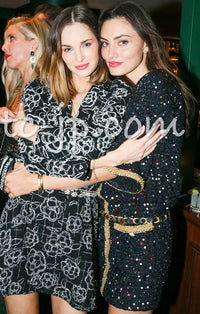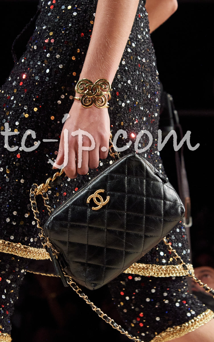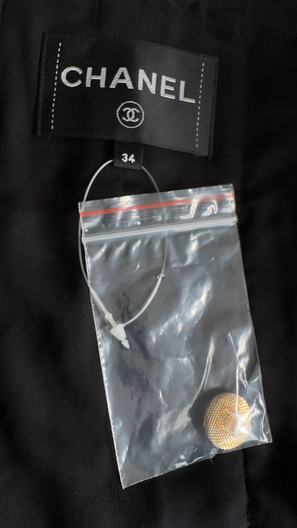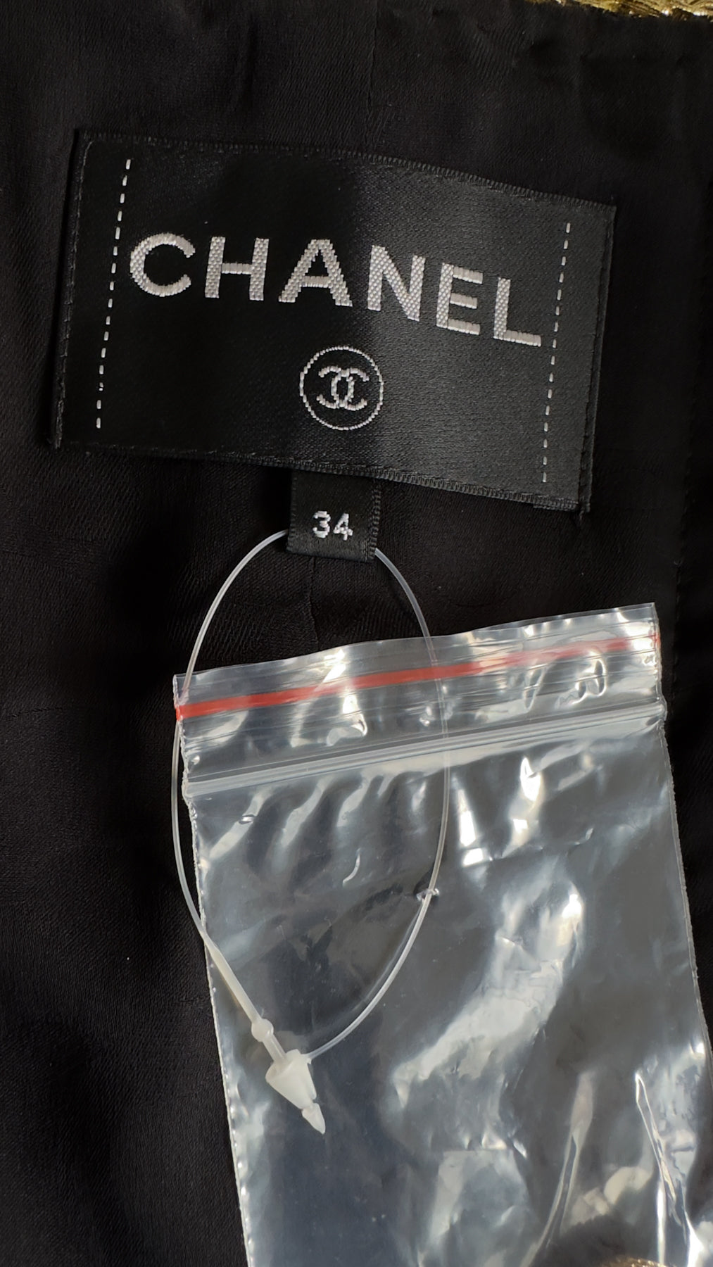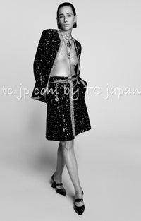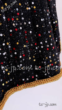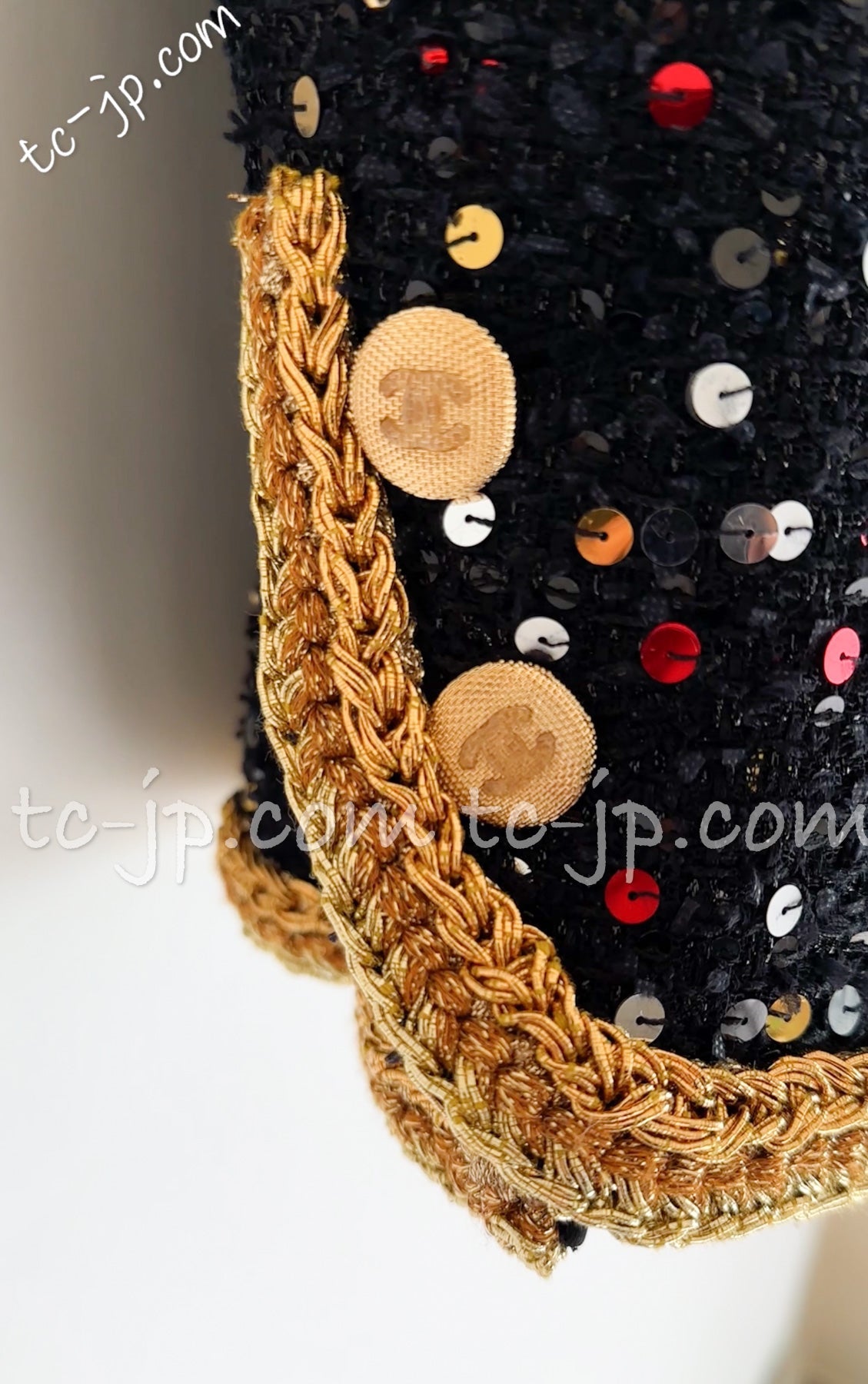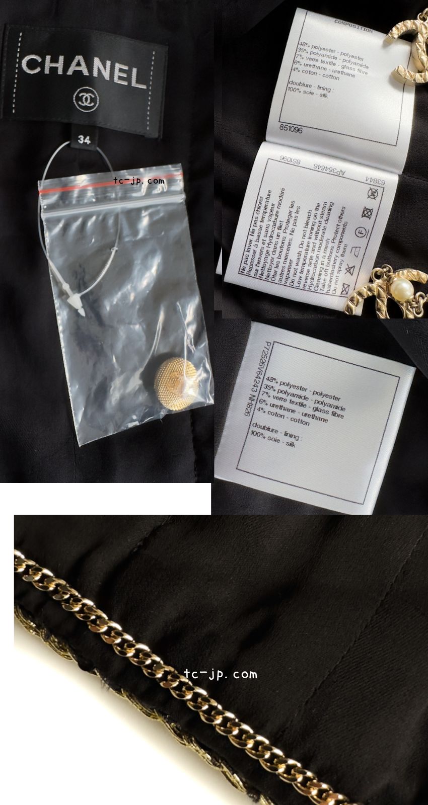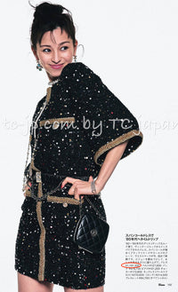 CHANEL 22S Black Sequined Gold Trim Tweed Jacket 36 38 シャネル ブラック スパンコール ゴールド トリム ジャケット 即発