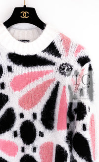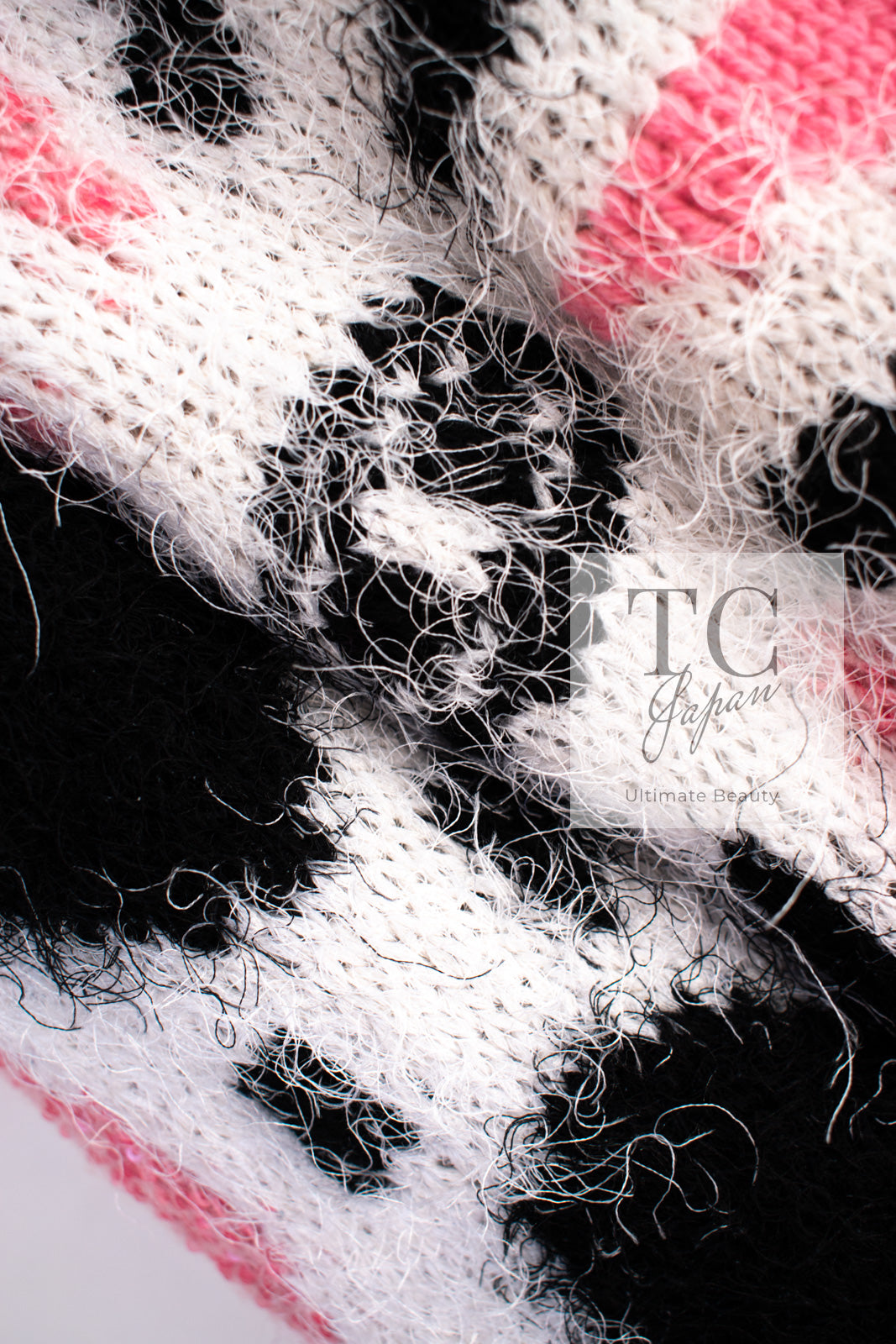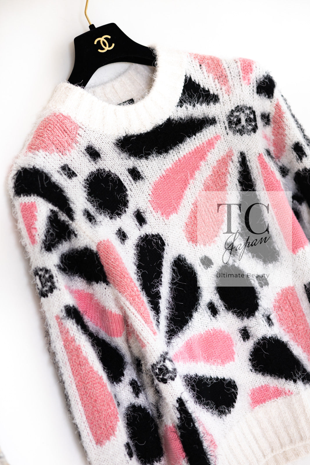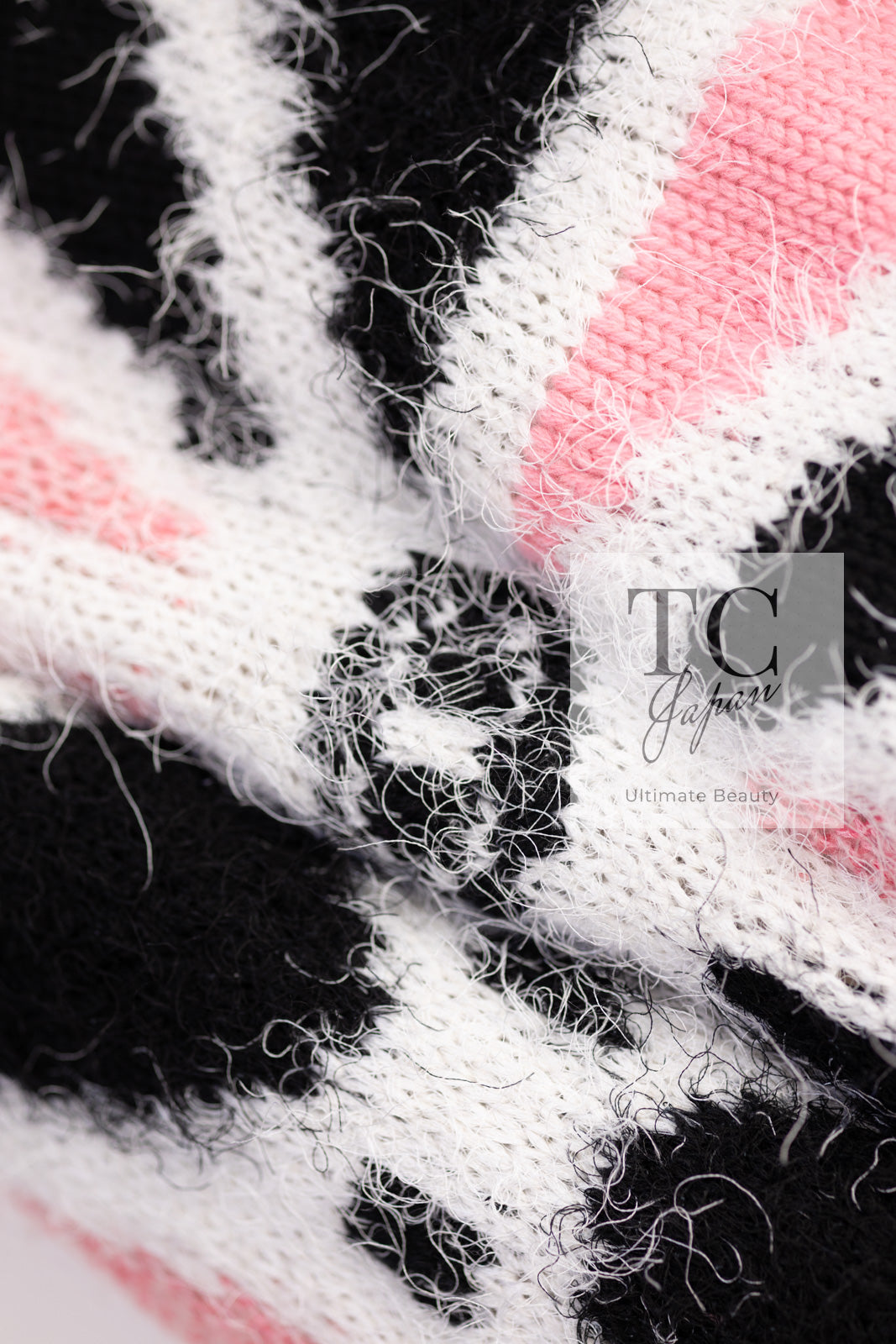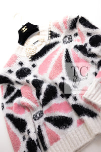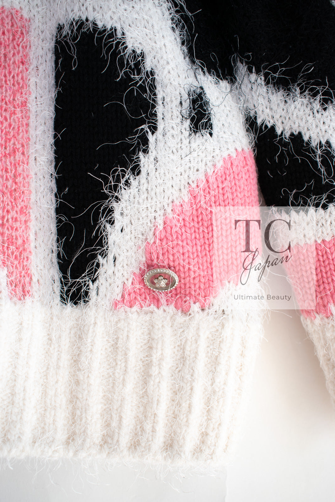 CHANEL 23A White Pink Black CC Logo Cashmere Silk Knit Sweater