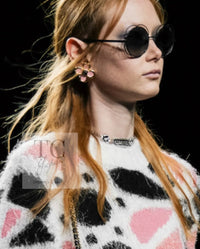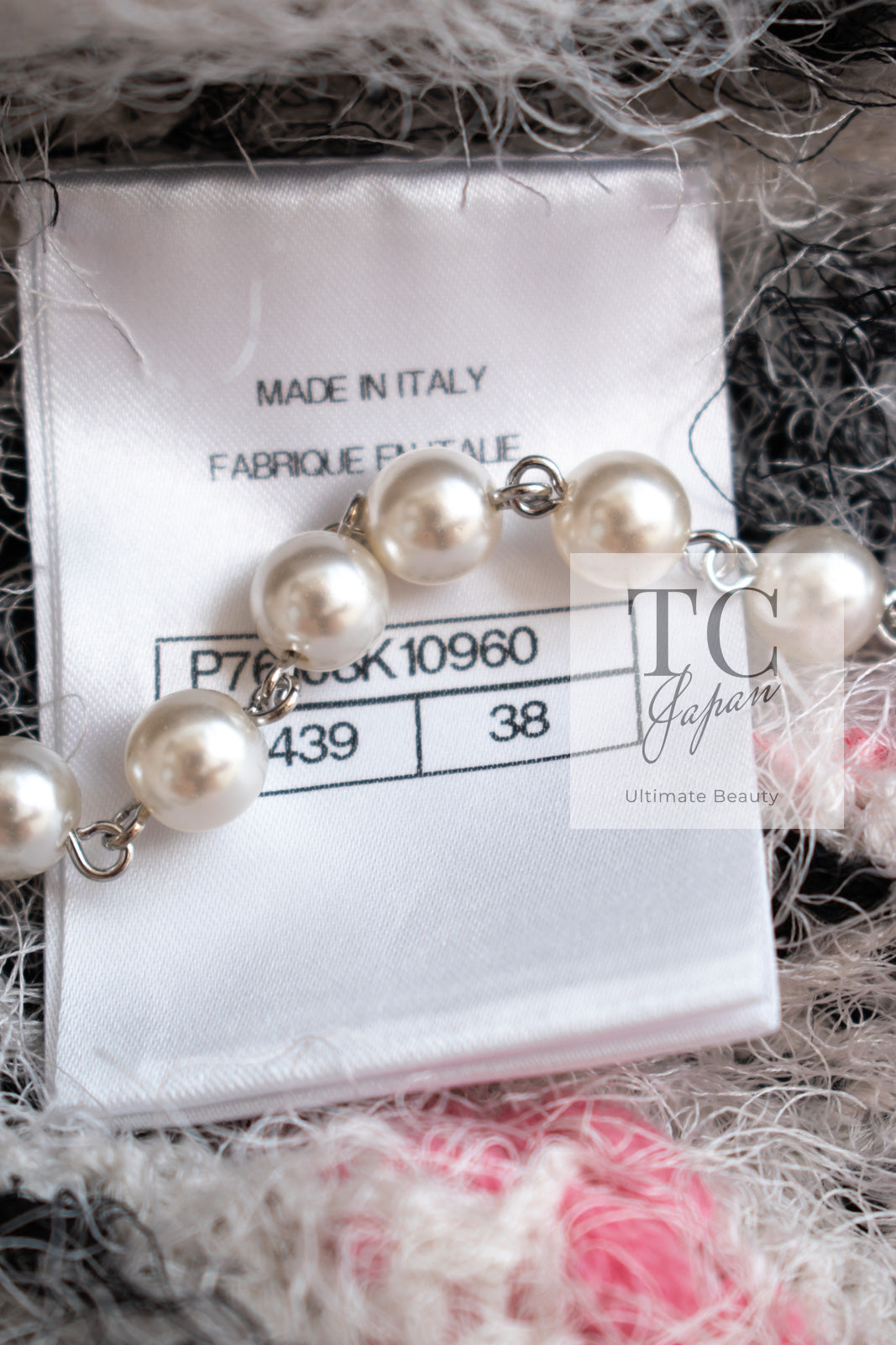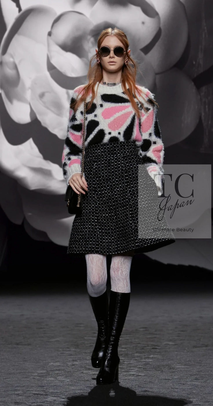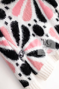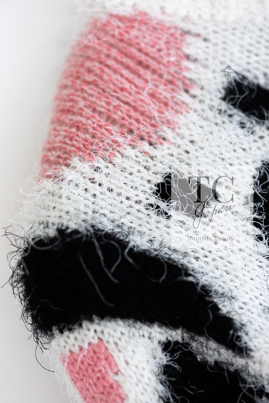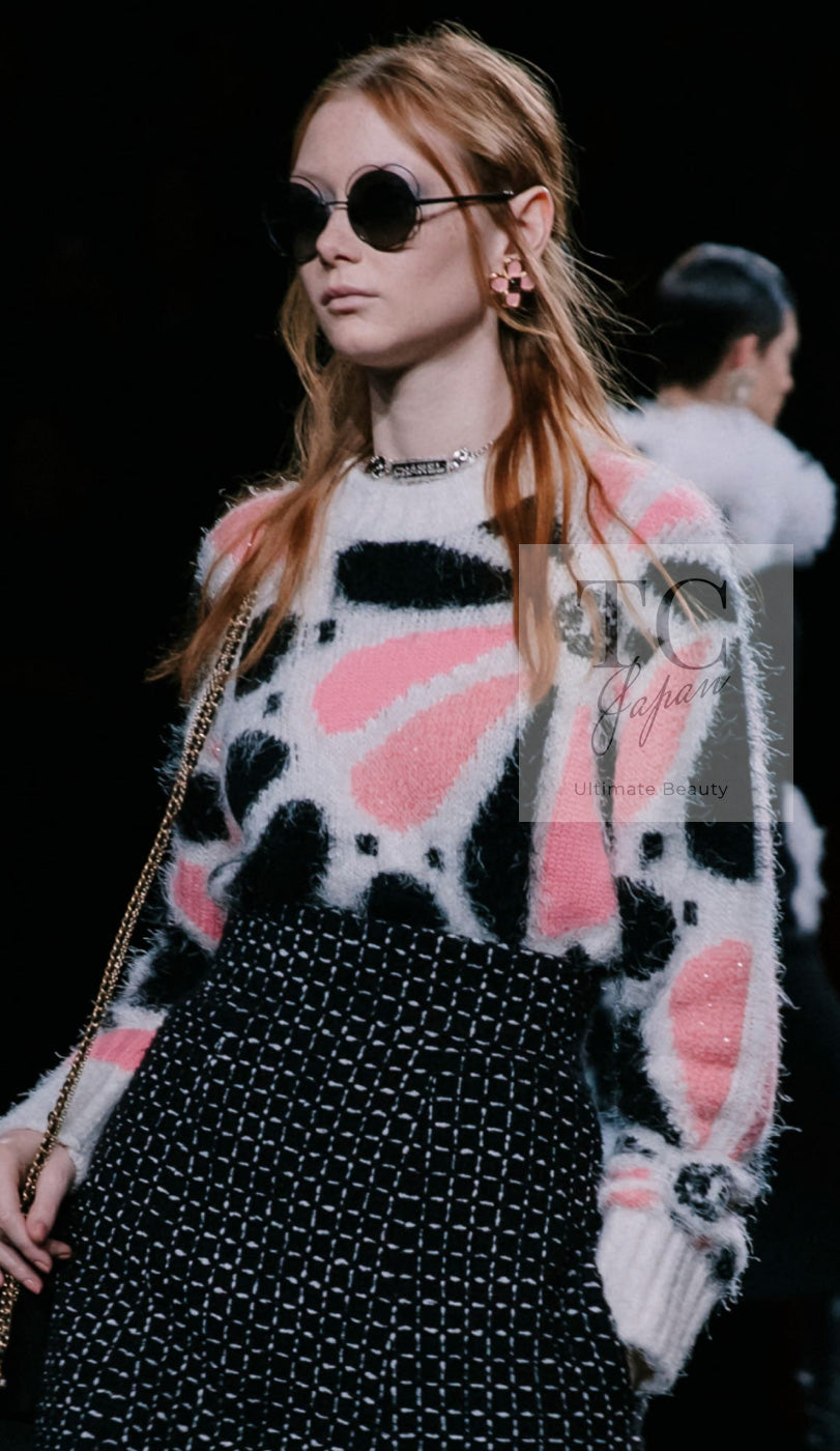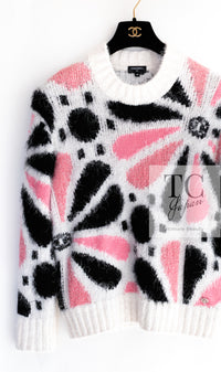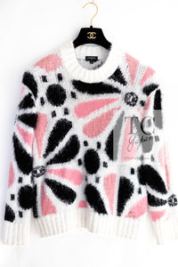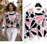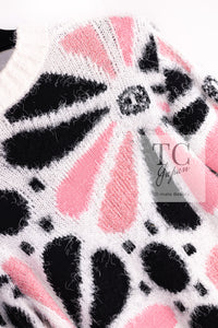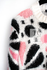 CHANEL 23A White Pink Black CC Logo Cashmere Silk Knit Sweater