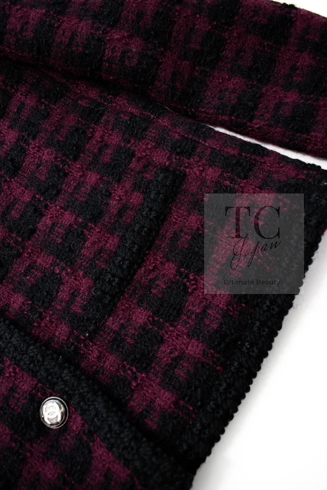 CHANEL 80C Vintage Bordeaux Wine Black Wool Tweed Jacket 36 シャネル ヴィンテージ ボルドー ブラック ブークレ プードル ウール ツイード ジャケット 即発