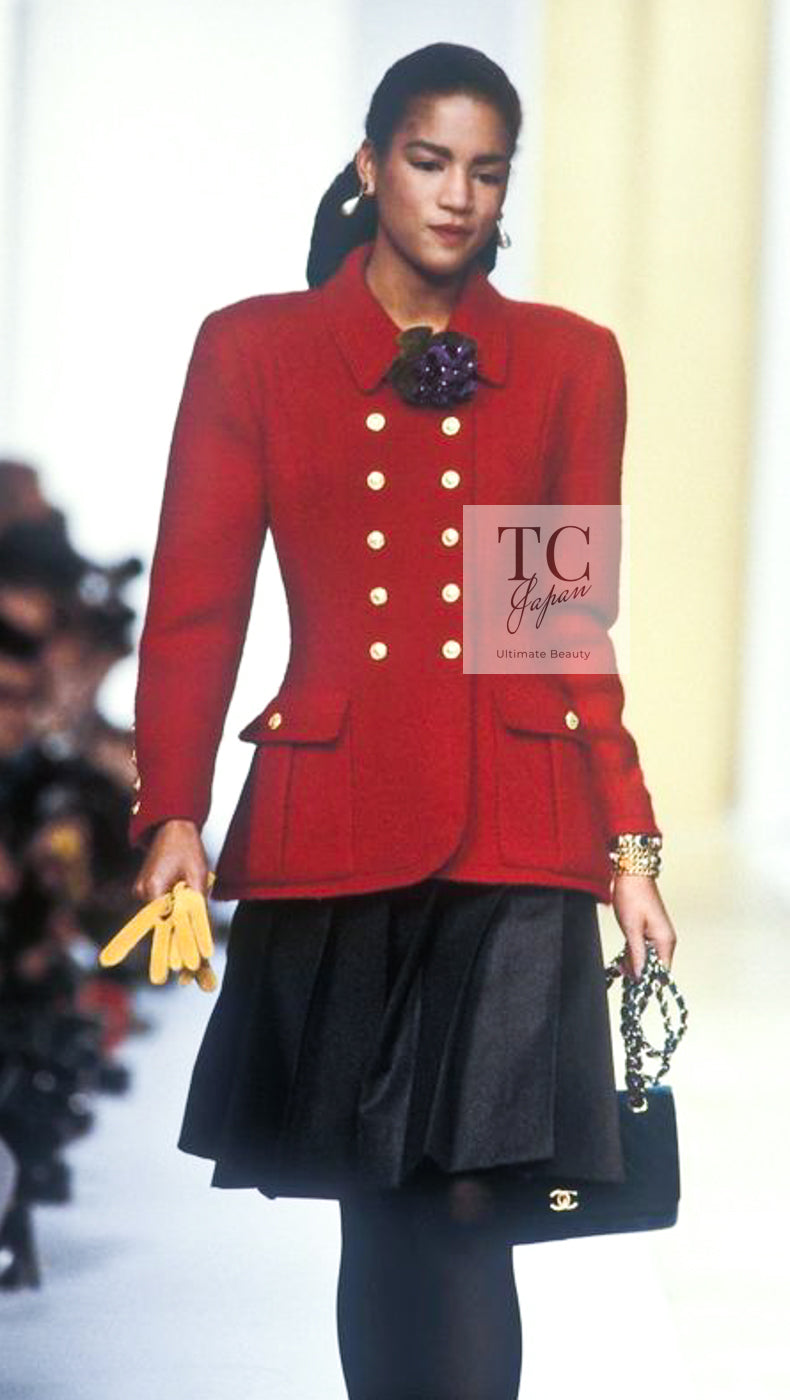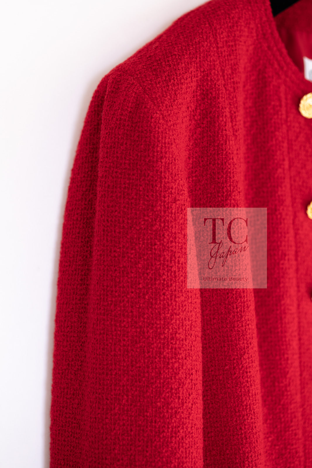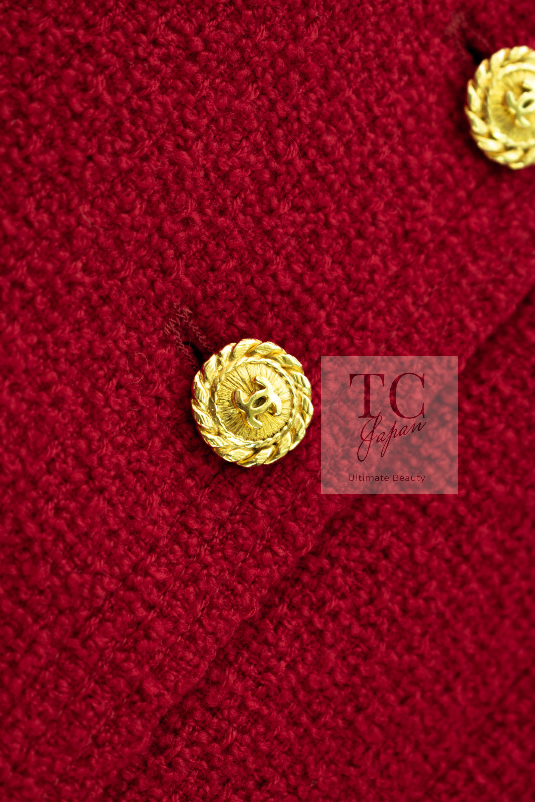 CHANEL 88A Vintage Red CC Gold Button Double Tweed Jacket 38 シャネル ヴィンテージ レッド CC ゴールド ボタン ダブル ツイード ジャケット 即発