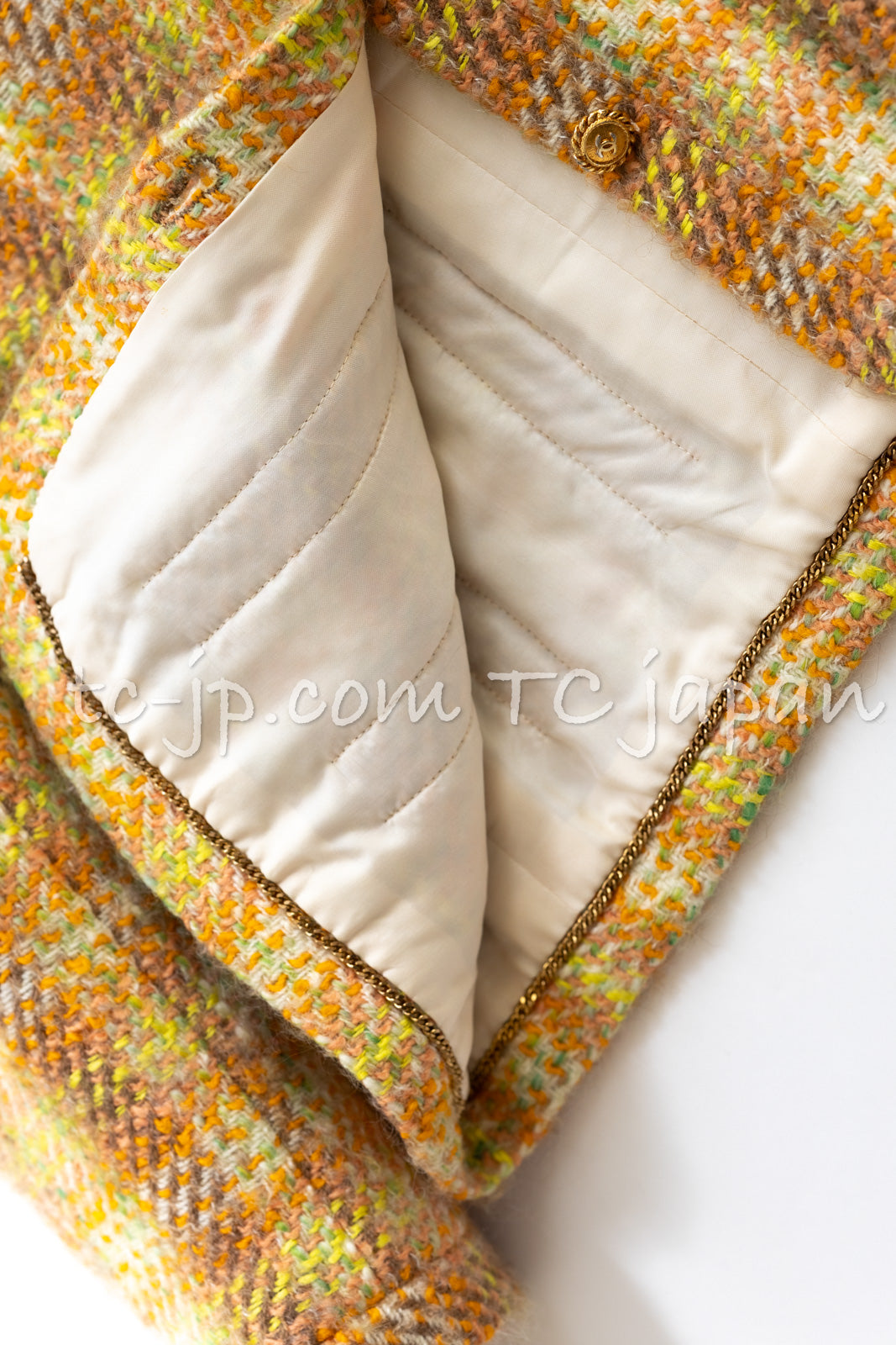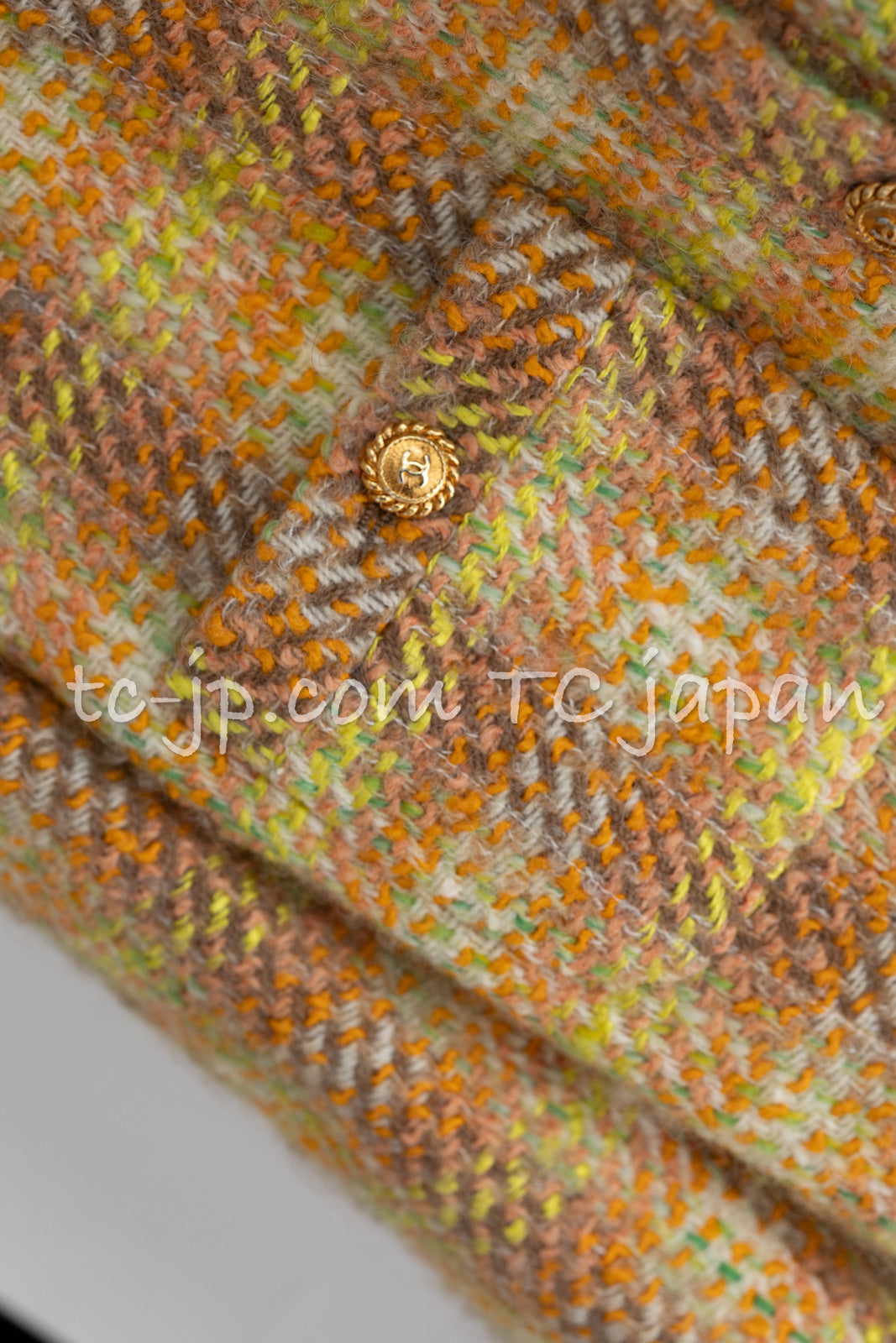 CHANEL 89A Vintage Orange Yellow Wool Tweed Jacket Coat 38 40 42 シャネル ヴィンテージ オレンジ イエロー ウール ツイード ジャケット コート 即発
