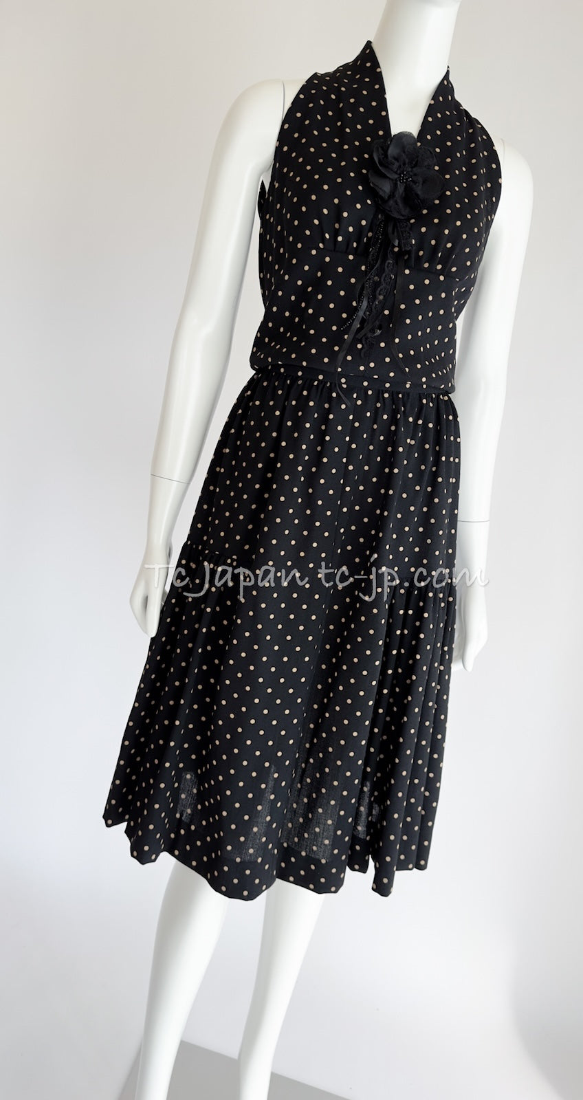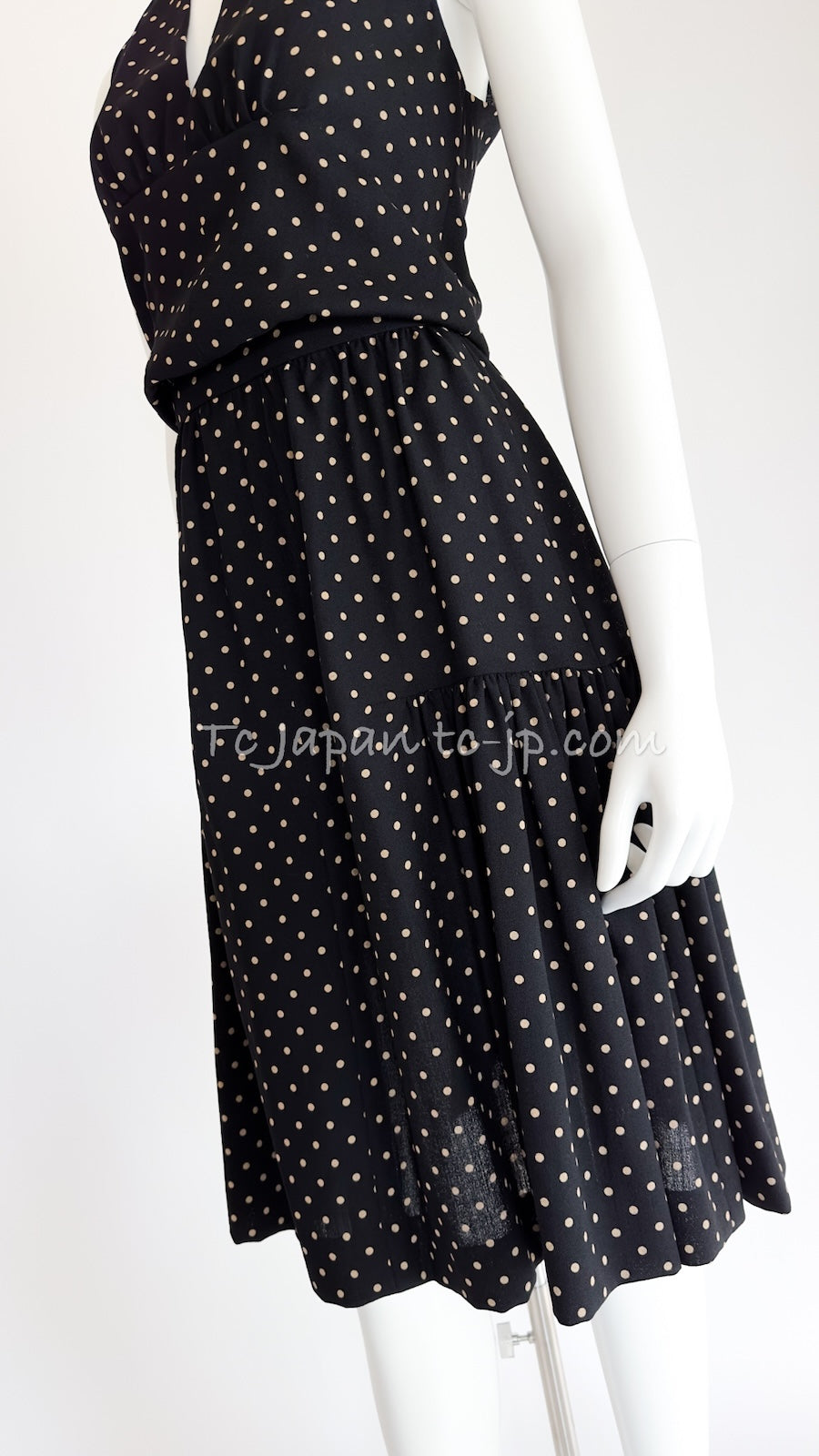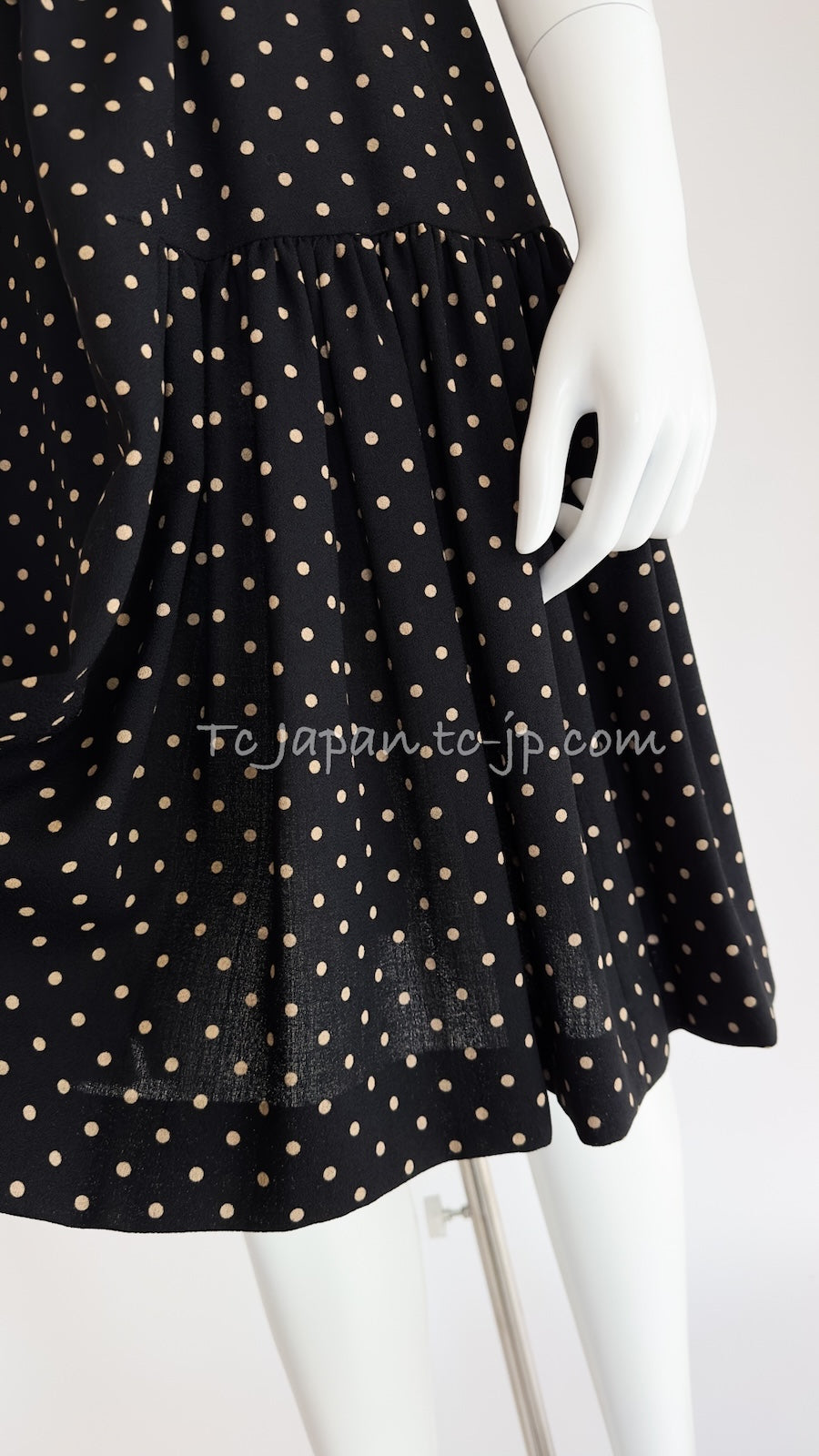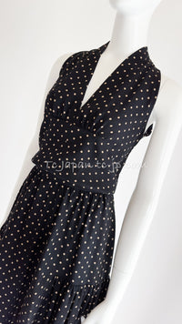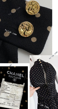 CHANEL 89S Black Beige Wool Dot Print Dress 34 36 シャネル ブラック ベージュ ウール ドット柄 ワンピース 即発