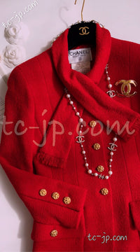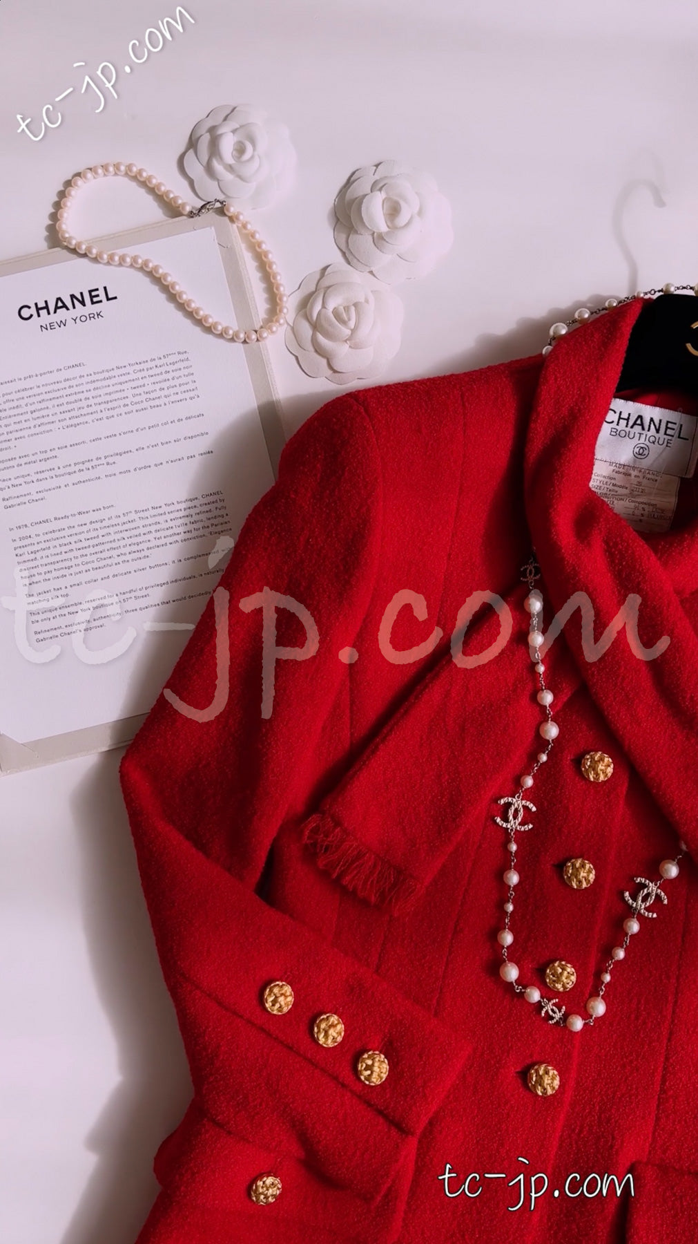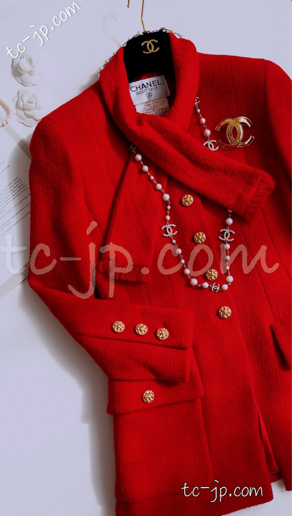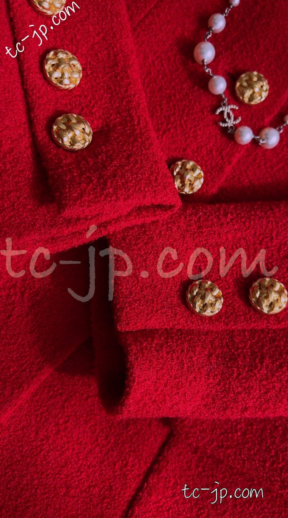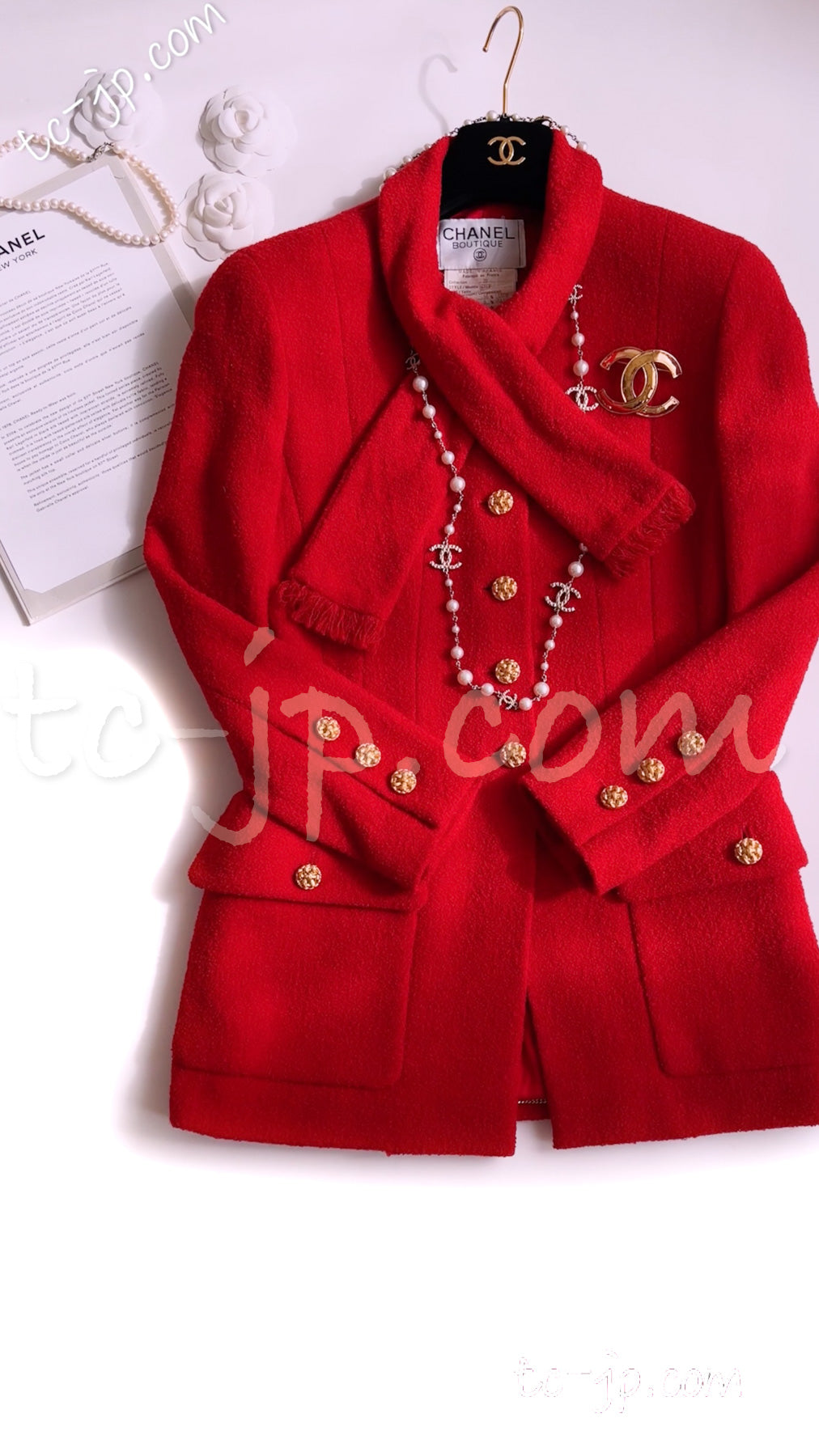 CHANEL 92A Iconic Collectible Scarlet Red Wool Tweed Jacket Basket Gold Button 36 38 シャネル スカーレット レッド コレクター限定品 ウール ツイード ジャケット バスケットボタン 即発