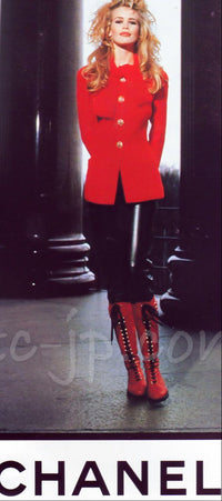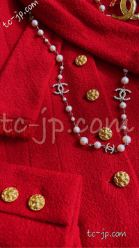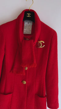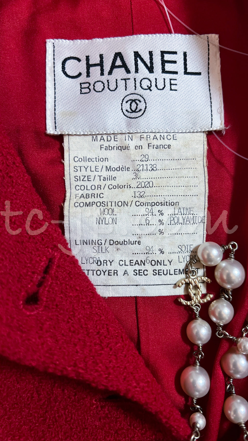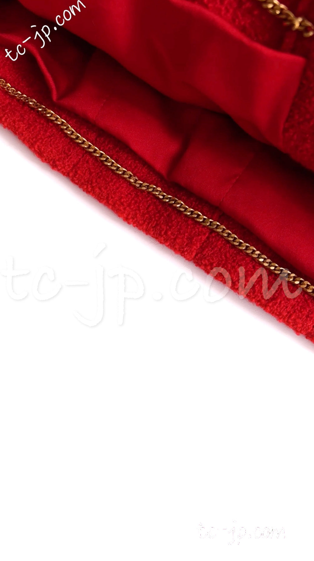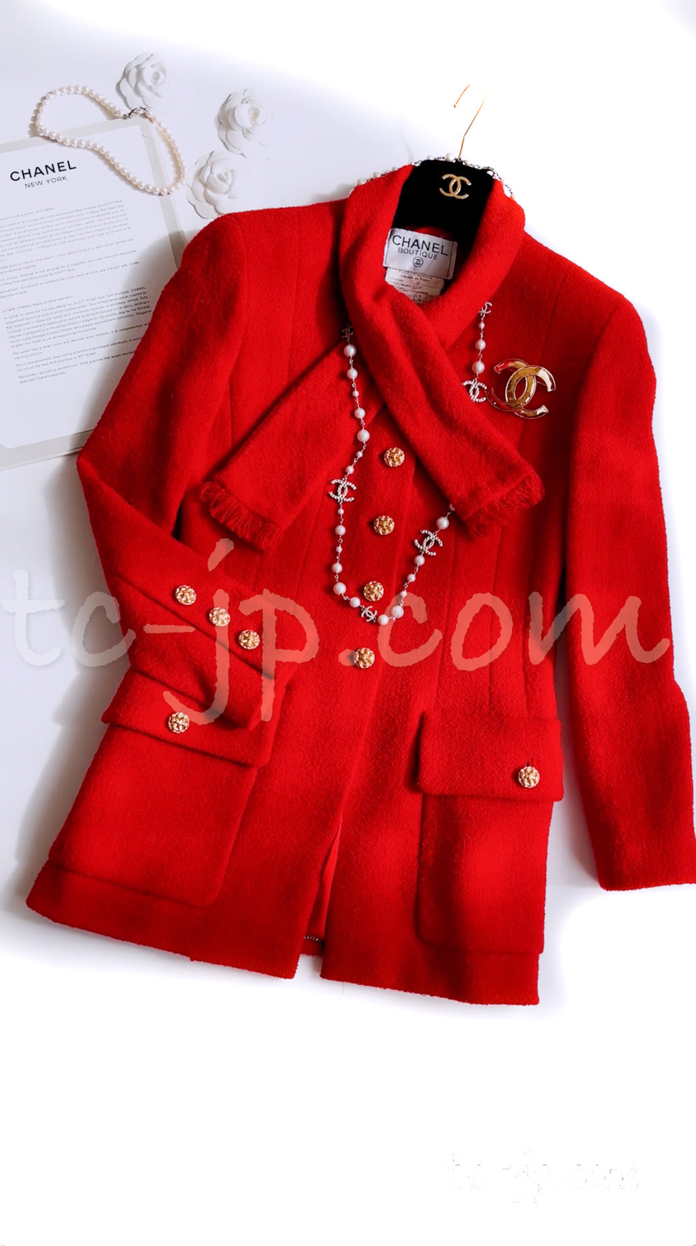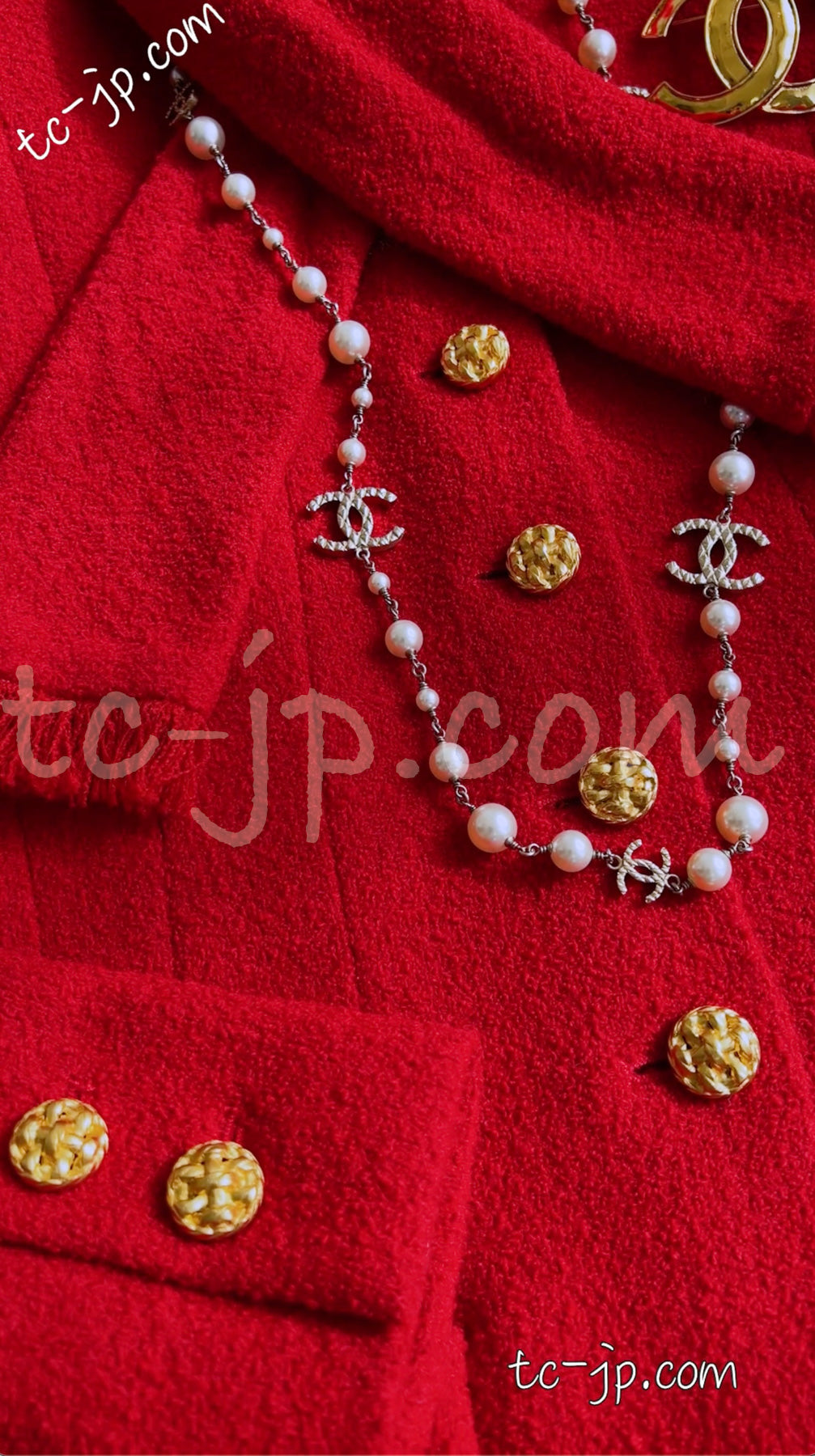 CHANEL 92A Iconic Collectible Scarlet Red Wool Tweed Jacket Basket Gold Button 36 38 シャネル スカーレット レッド コレクター限定品 ウール ツイード ジャケット バスケットボタン 即発