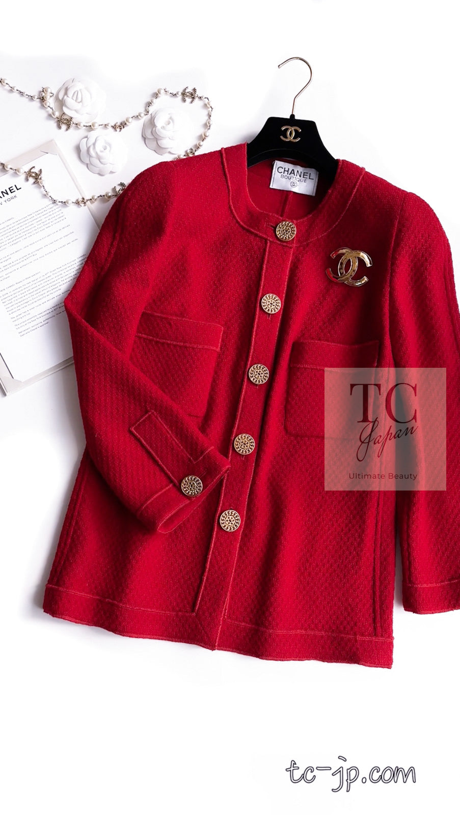 CHANEL 92A Vintage Red Gold Buttons Cotton Tweed Jacket 42 シャネル ヴィンテージ レッド ゴールド ボタン コットン ツイード ジャケット 即発