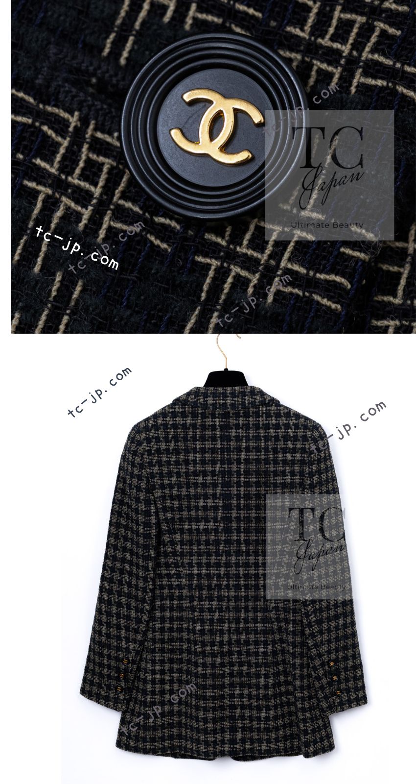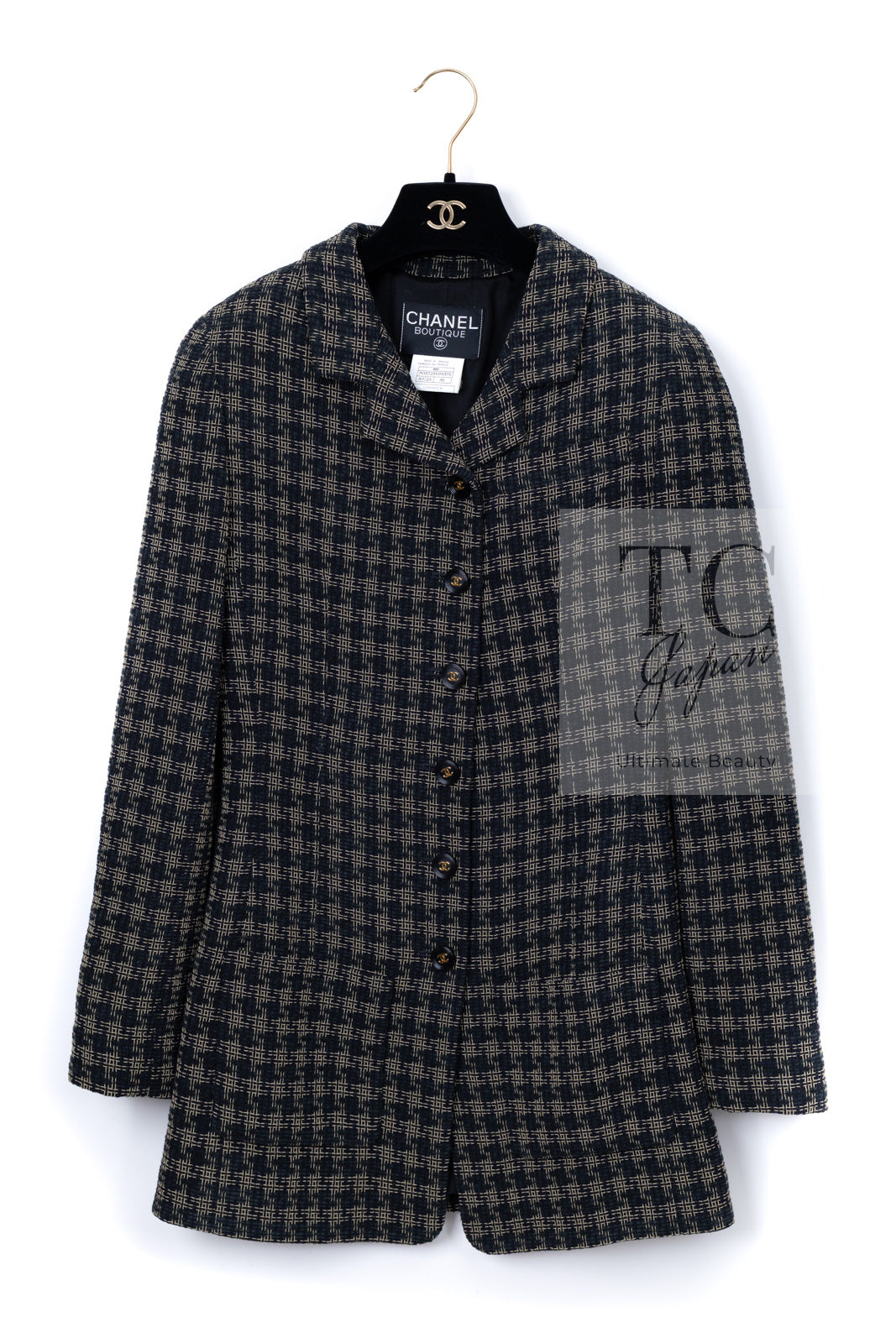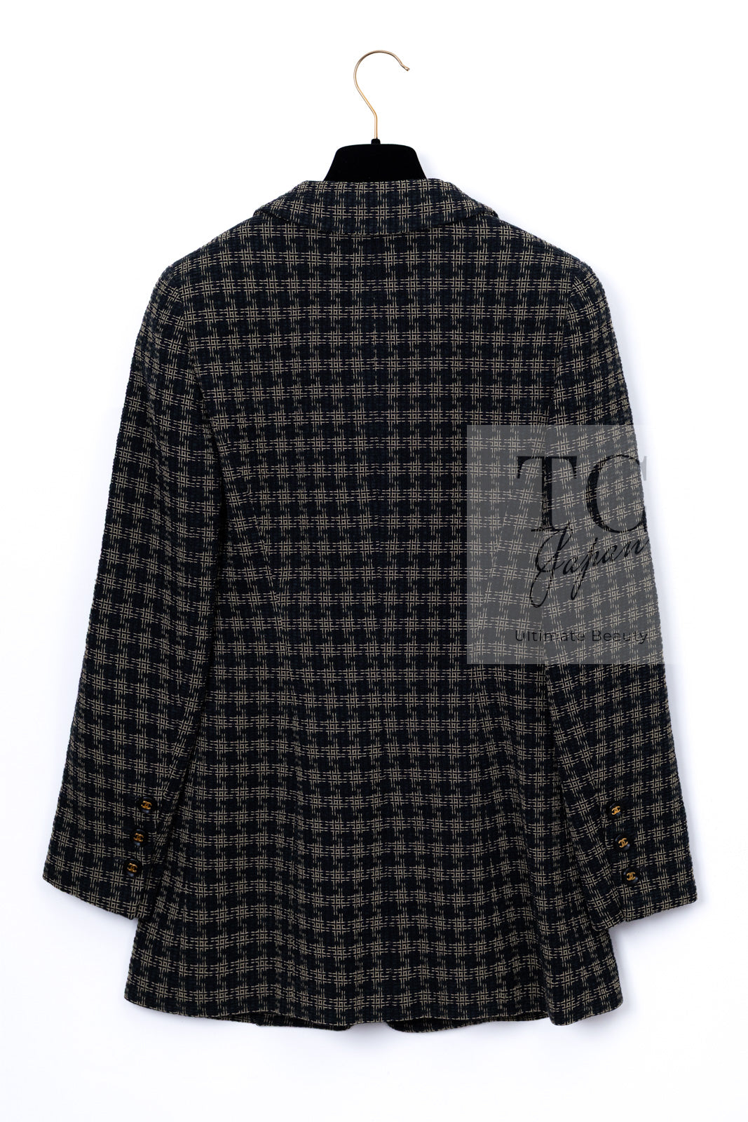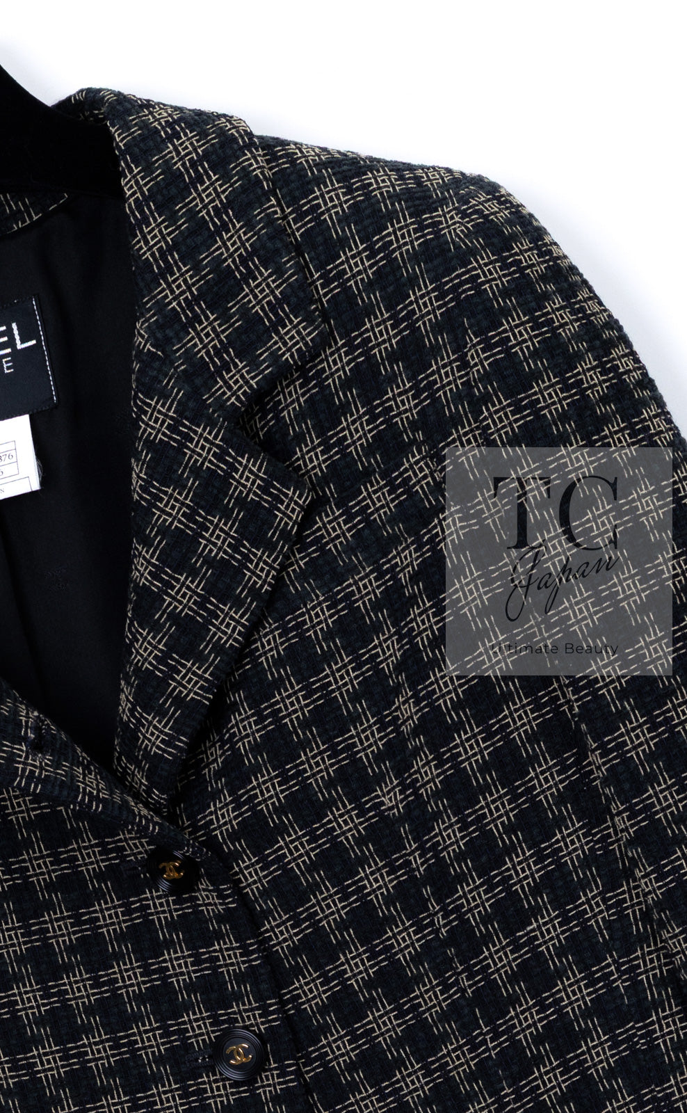 CHANEL 95A Vintage Black Beige Check Wool Tape Ribbon Tweed Jacket CC Button 36 38 シャネル ヴィンテージ ブラック ベージュ チェック 千鳥格子 柄 ウール テープ リボン ツイード ジャケット CCボタン 即発