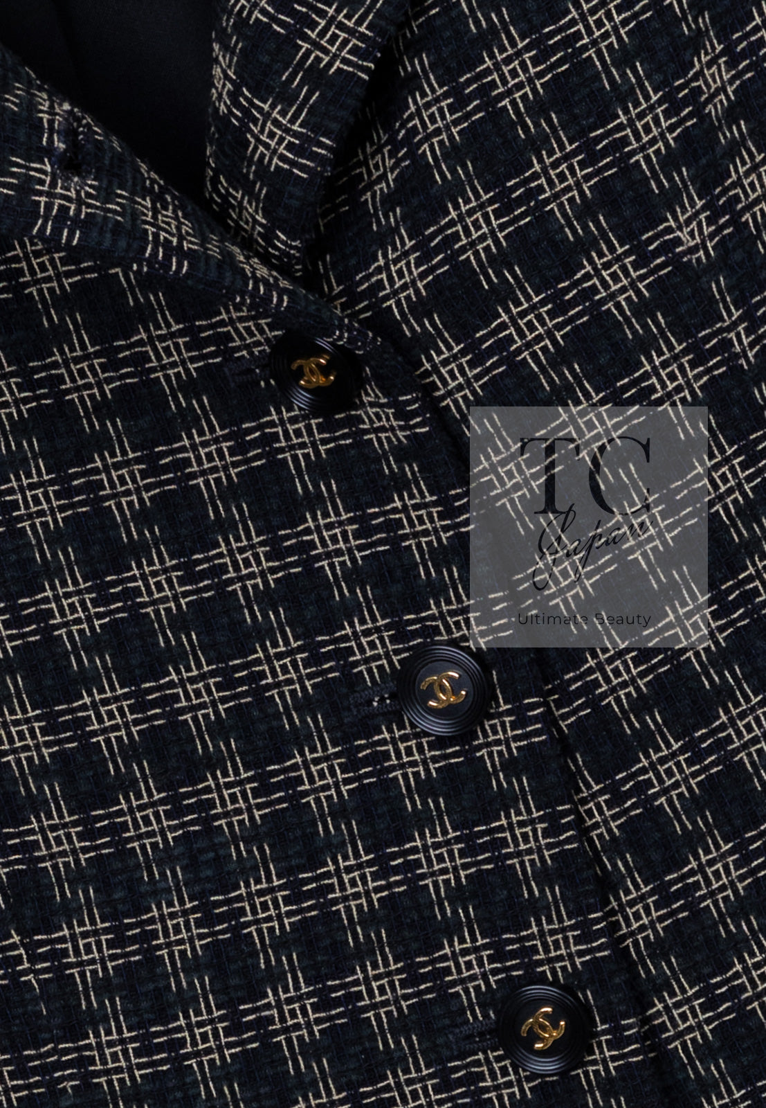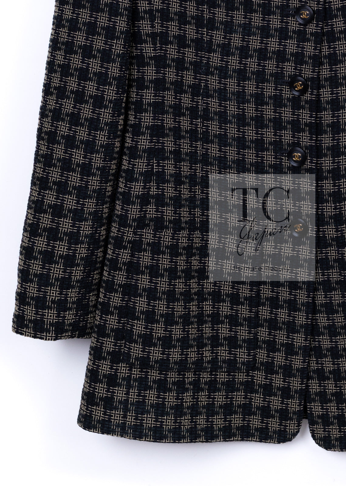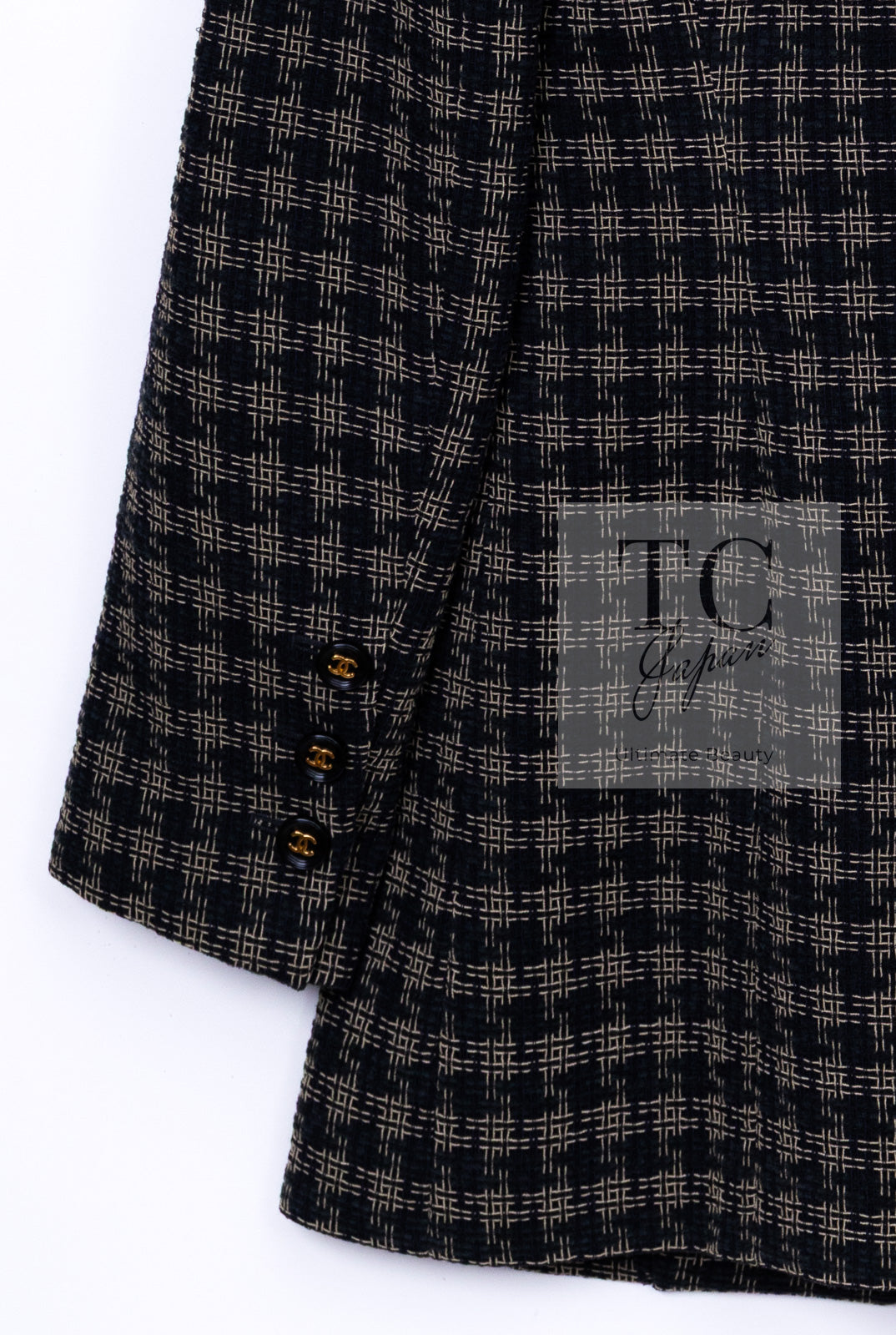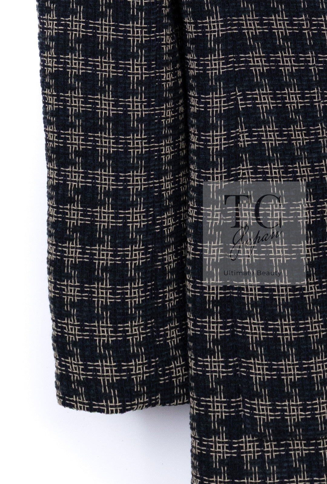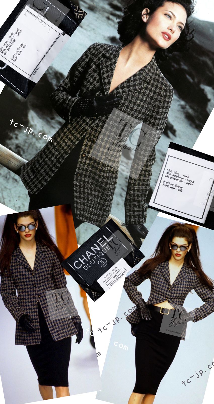 CHANEL 95A Vintage Black Beige Check Wool Tape Ribbon Tweed Jacket CC Button 36 38 シャネル ヴィンテージ ブラック ベージュ チェック 千鳥格子 柄 ウール テープ リボン ツイード ジャケット CCボタン 即発
