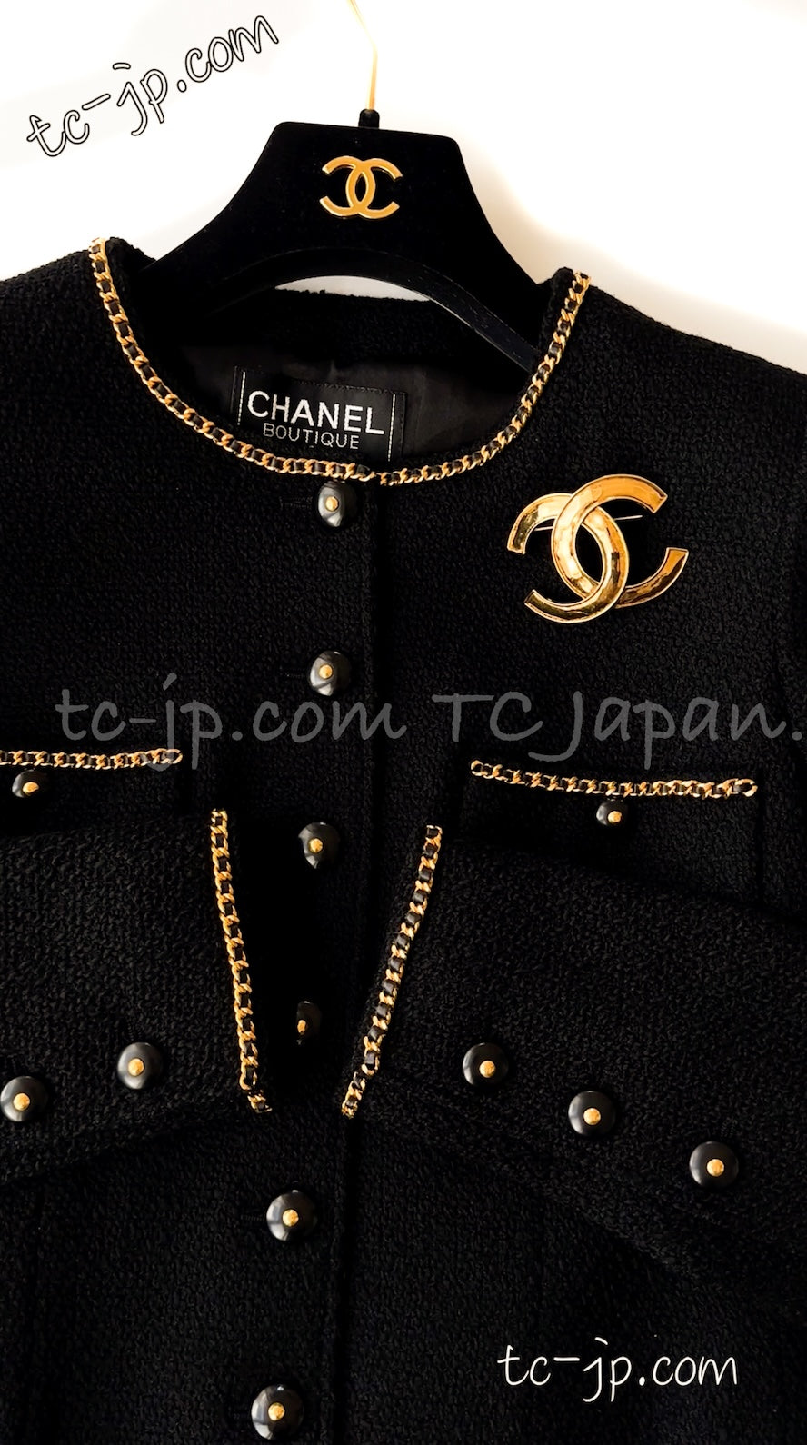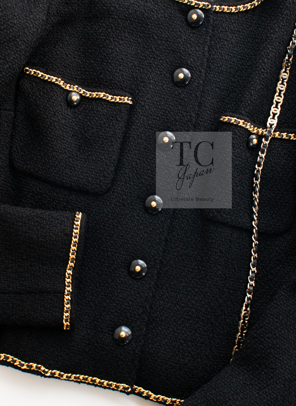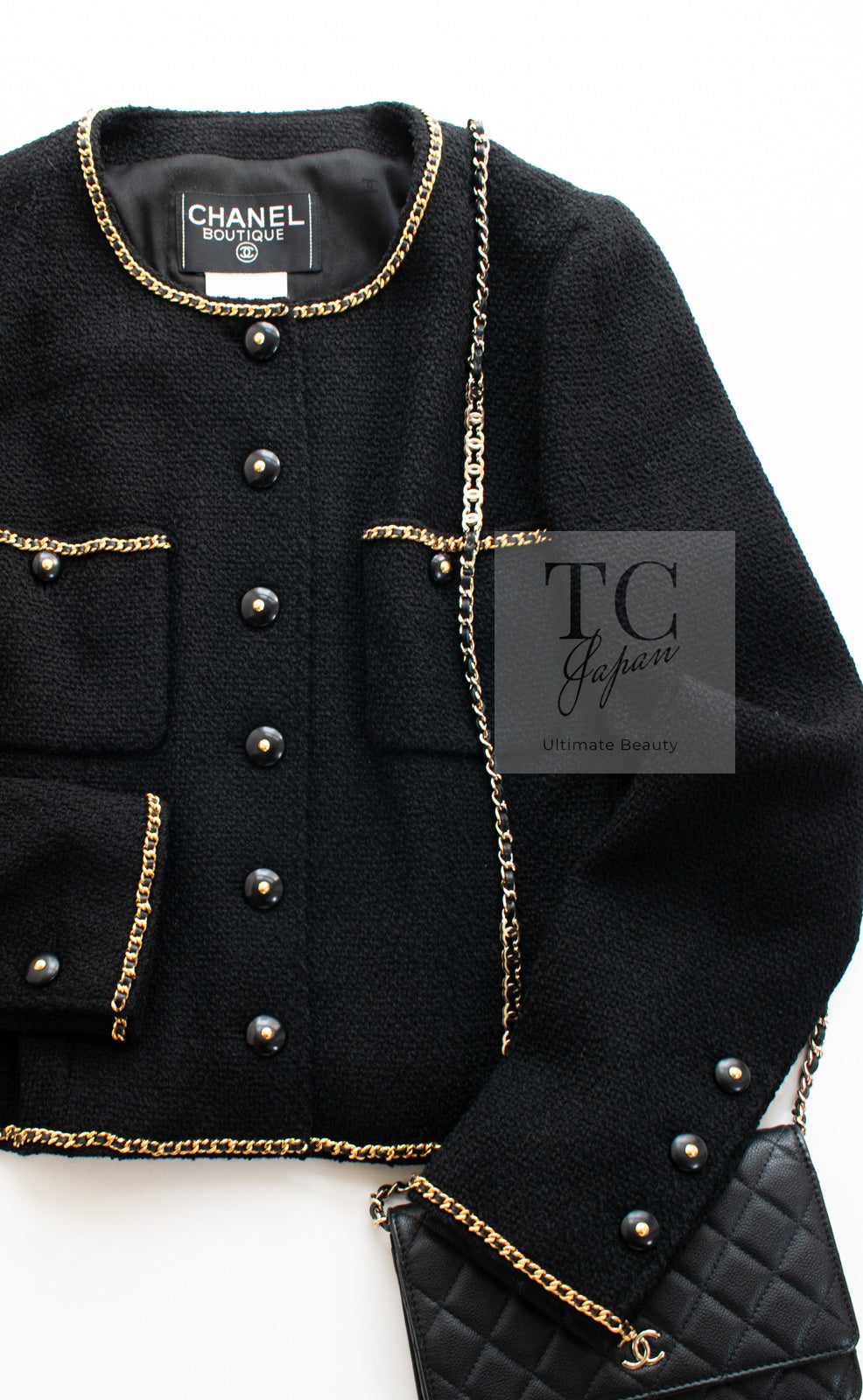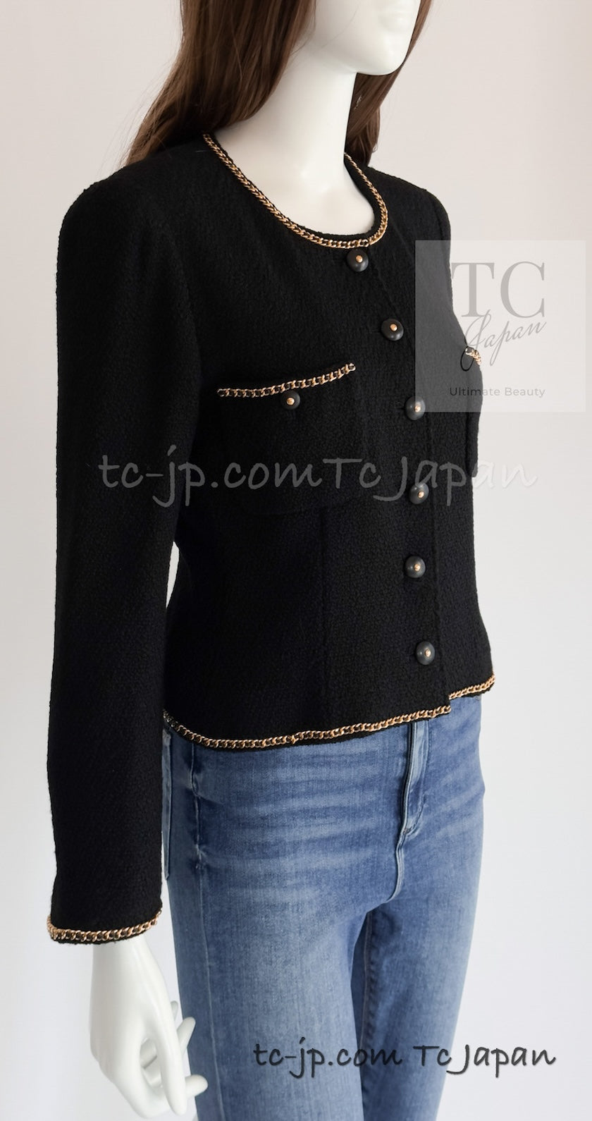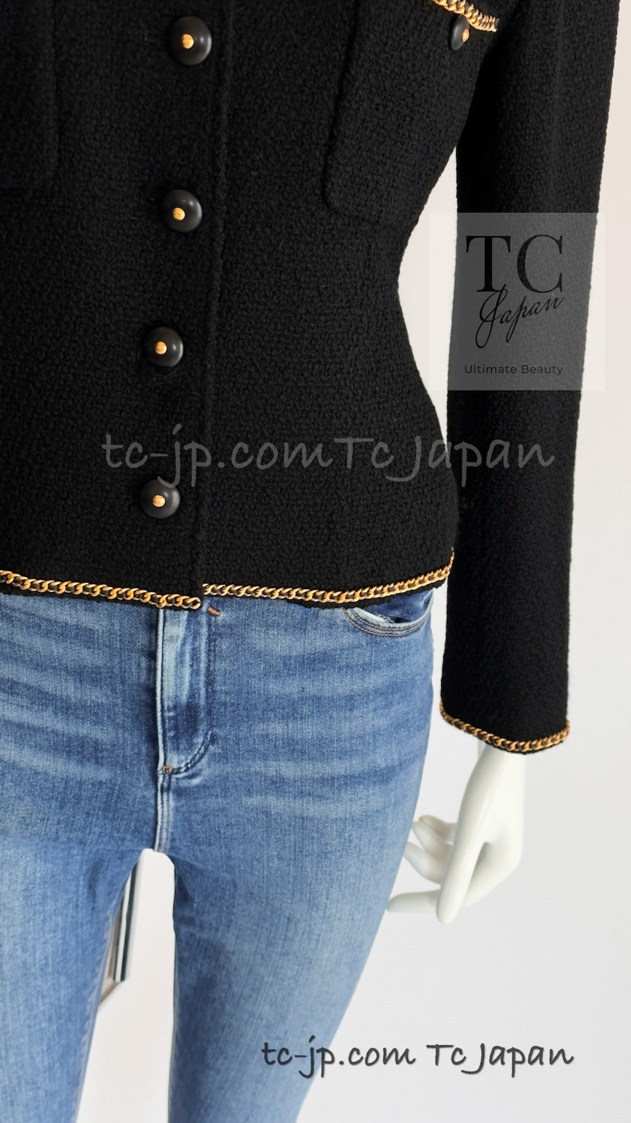 CHANEL 95A Vintage Black Gold Chain Trim Tweed Jacket 38 シャネル ヴィンテージ ブラック ゴールドチェーン トリミング ツイード ジャケット 即発