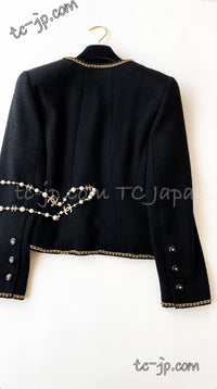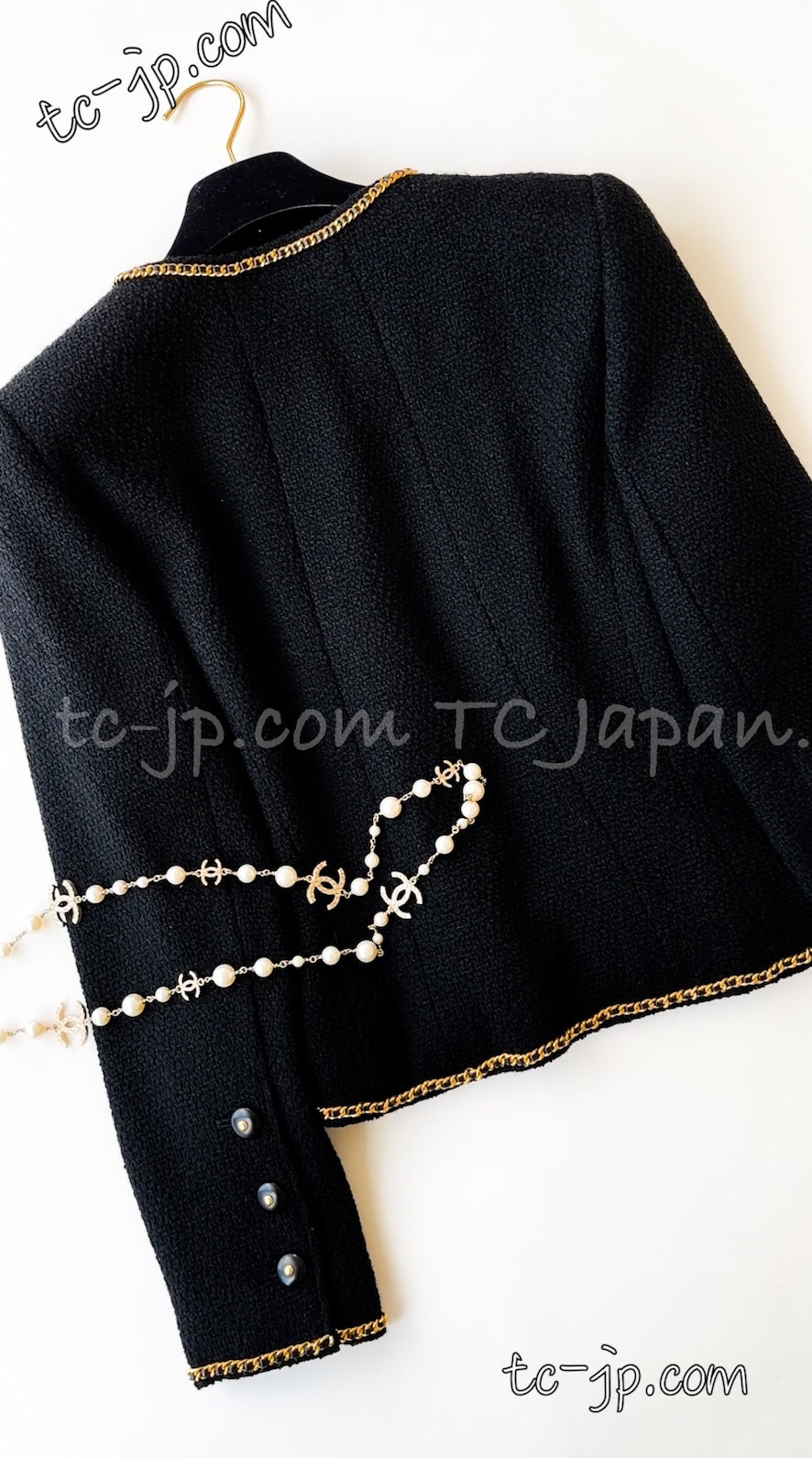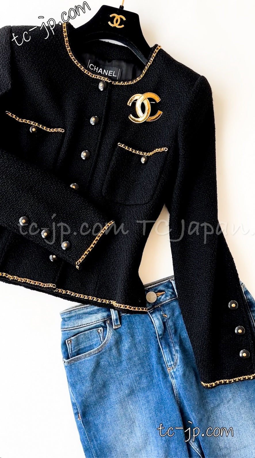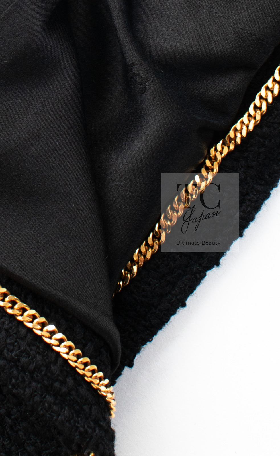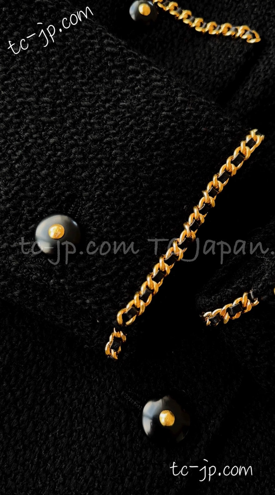 CHANEL 95A Vintage Black Gold Chain Trim Tweed Jacket 38 シャネル ヴィンテージ ブラック ゴールドチェーン トリミング ツイード ジャケット 即発