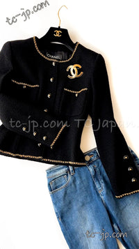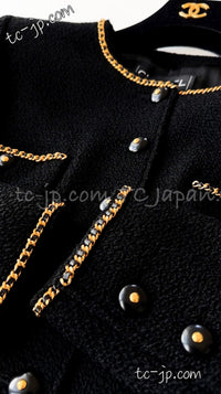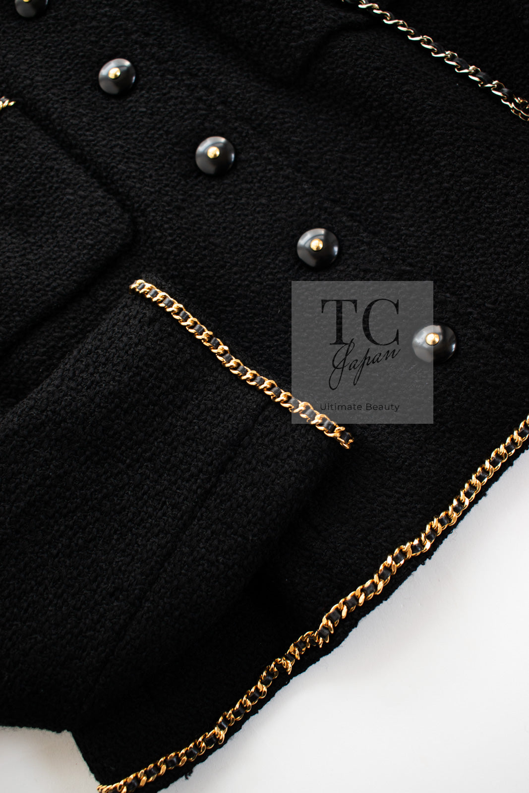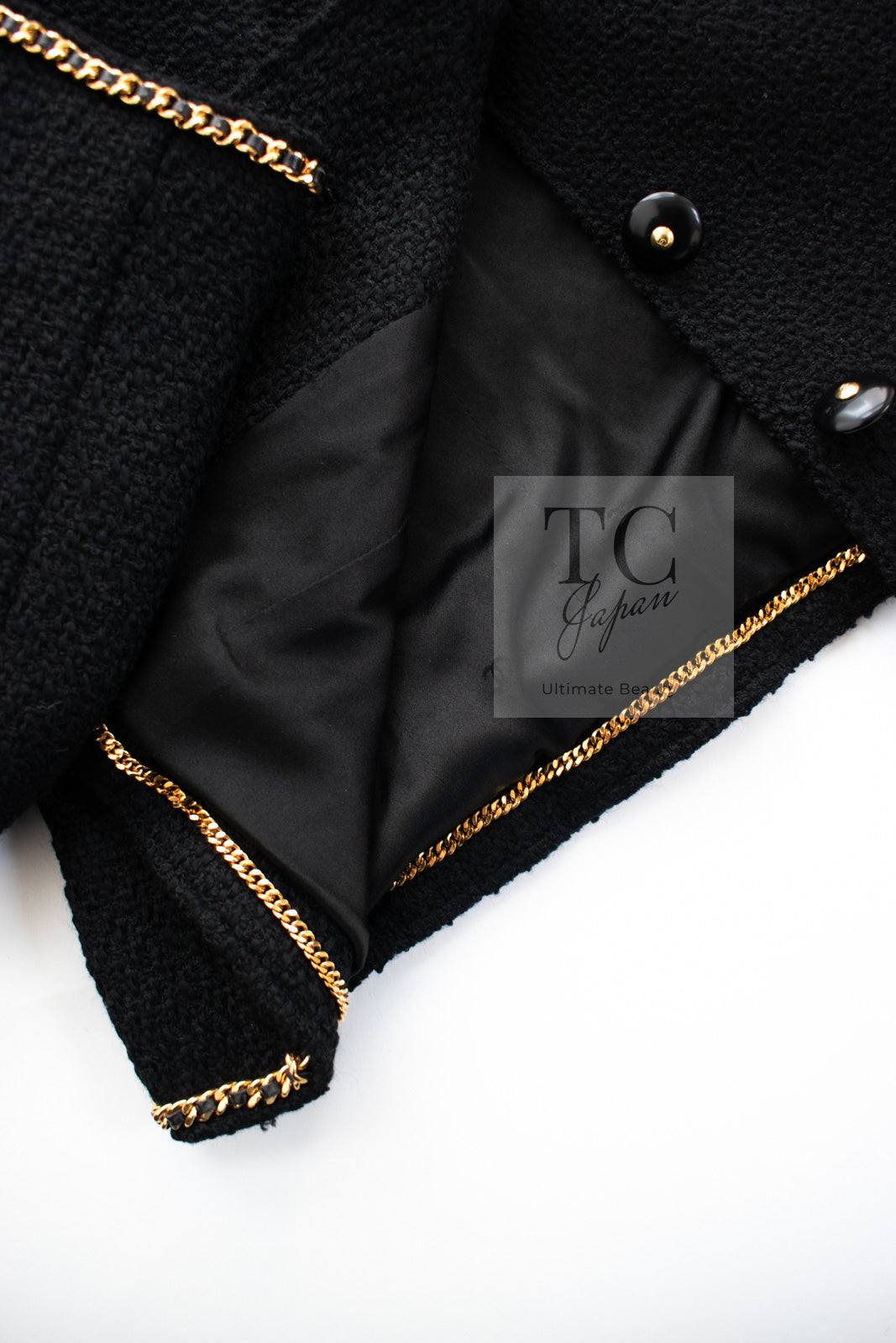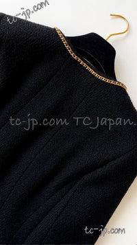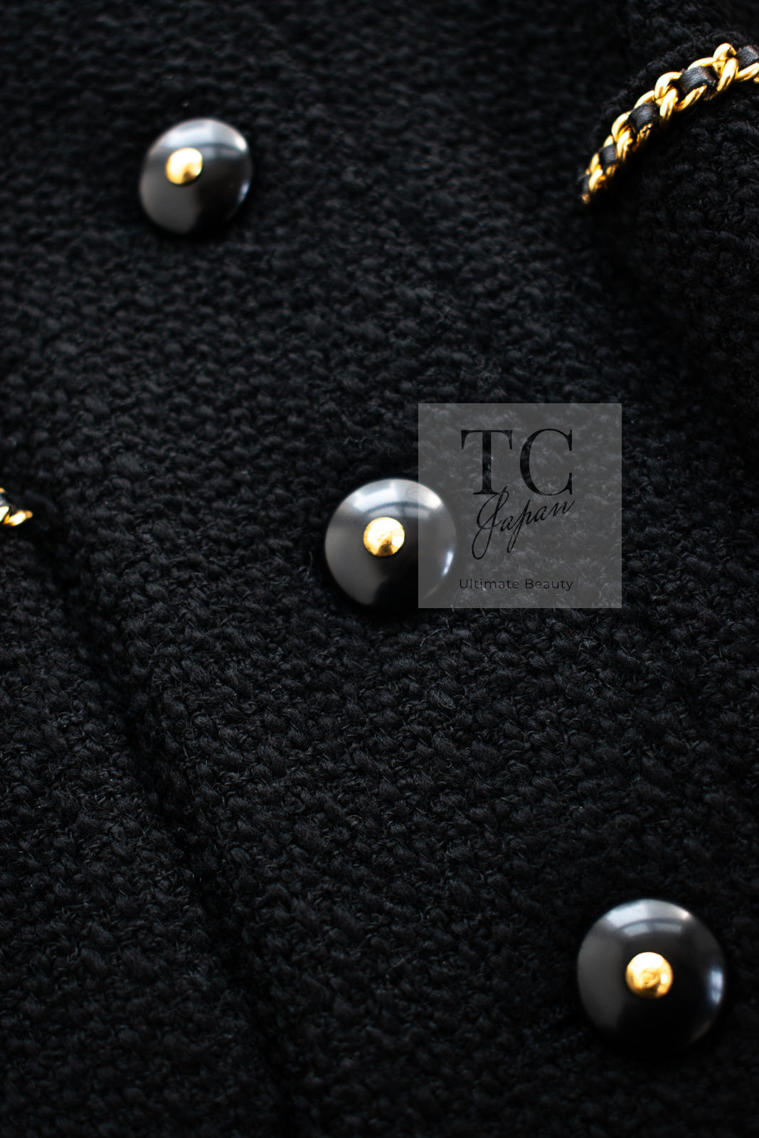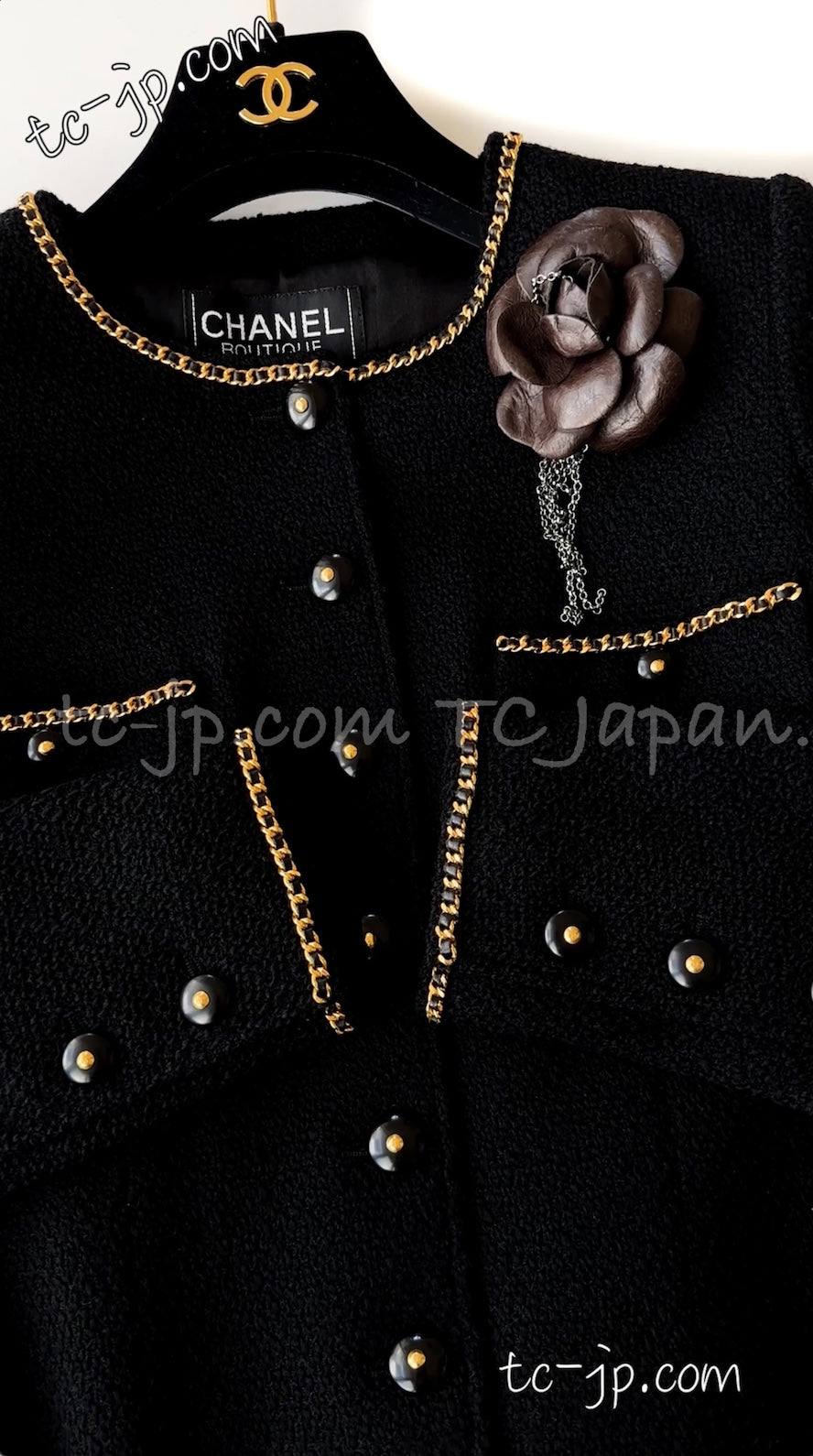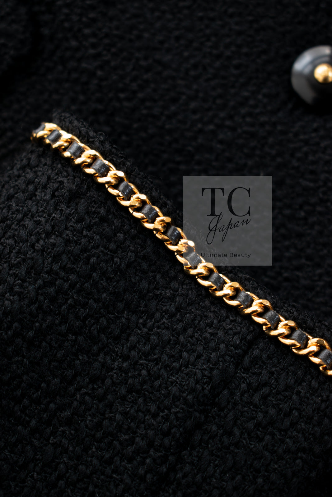 CHANEL 95A Vintage Black Gold Chain Trim Tweed Jacket 38 シャネル ヴィンテージ ブラック ゴールドチェーン トリミング ツイード ジャケット 即発
